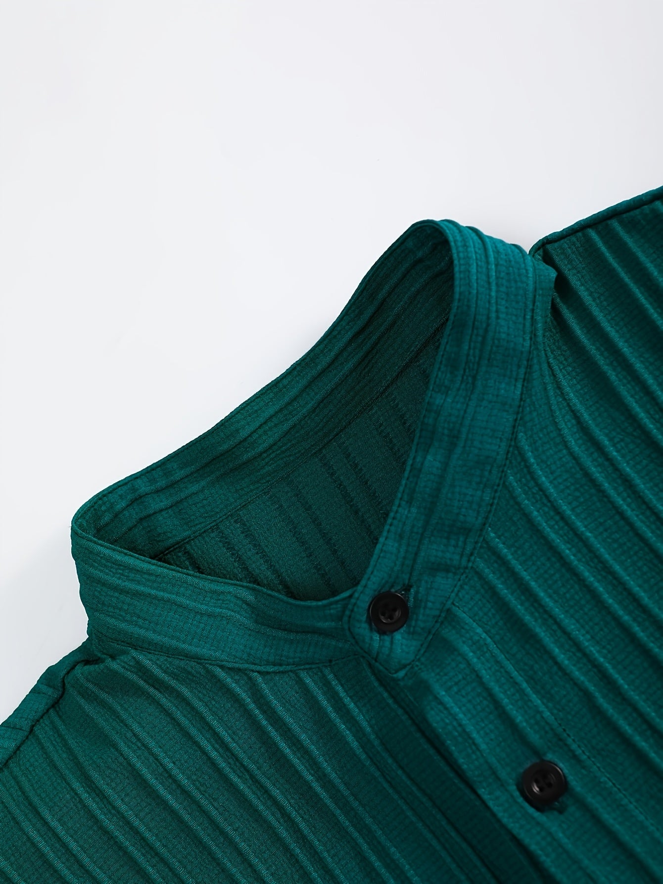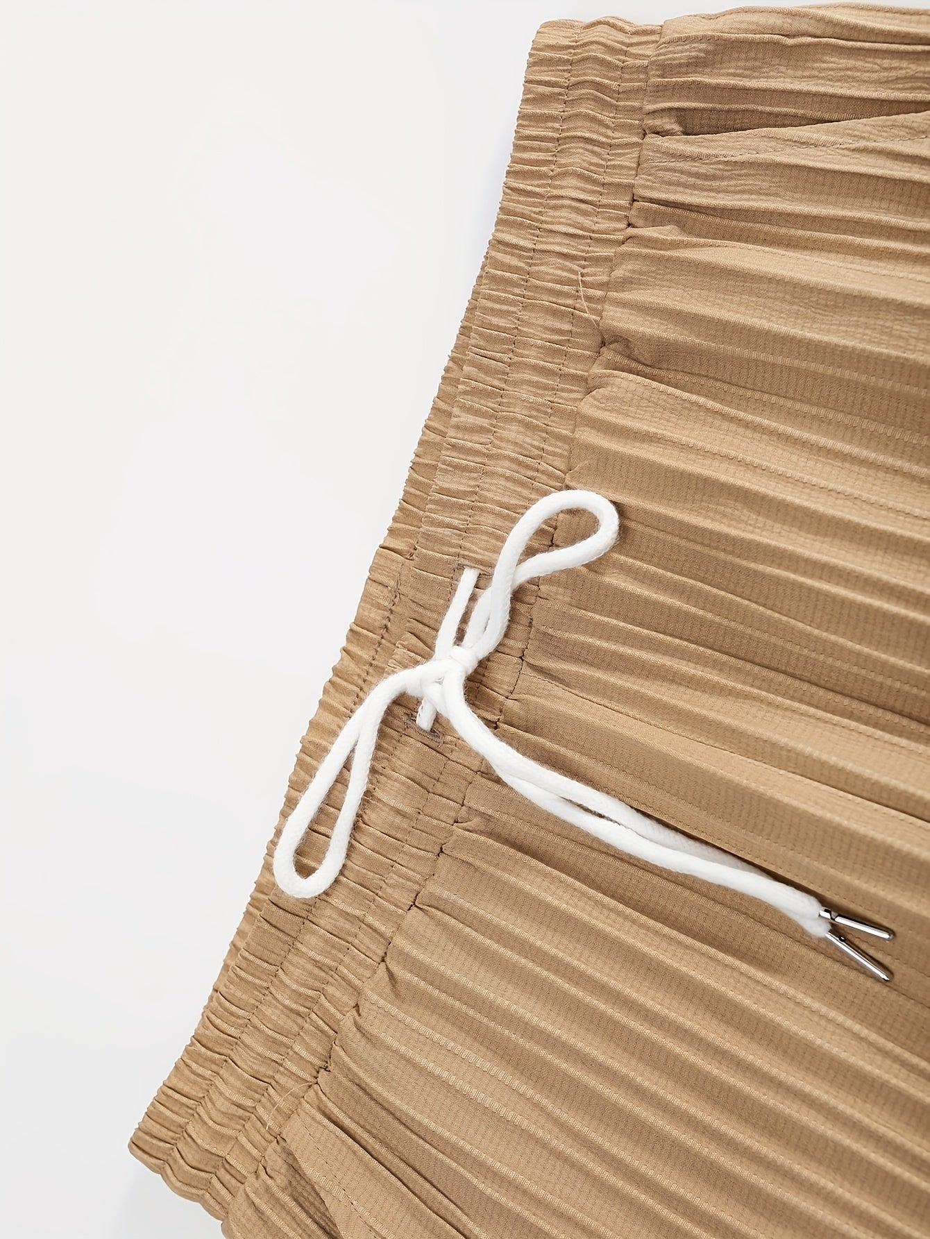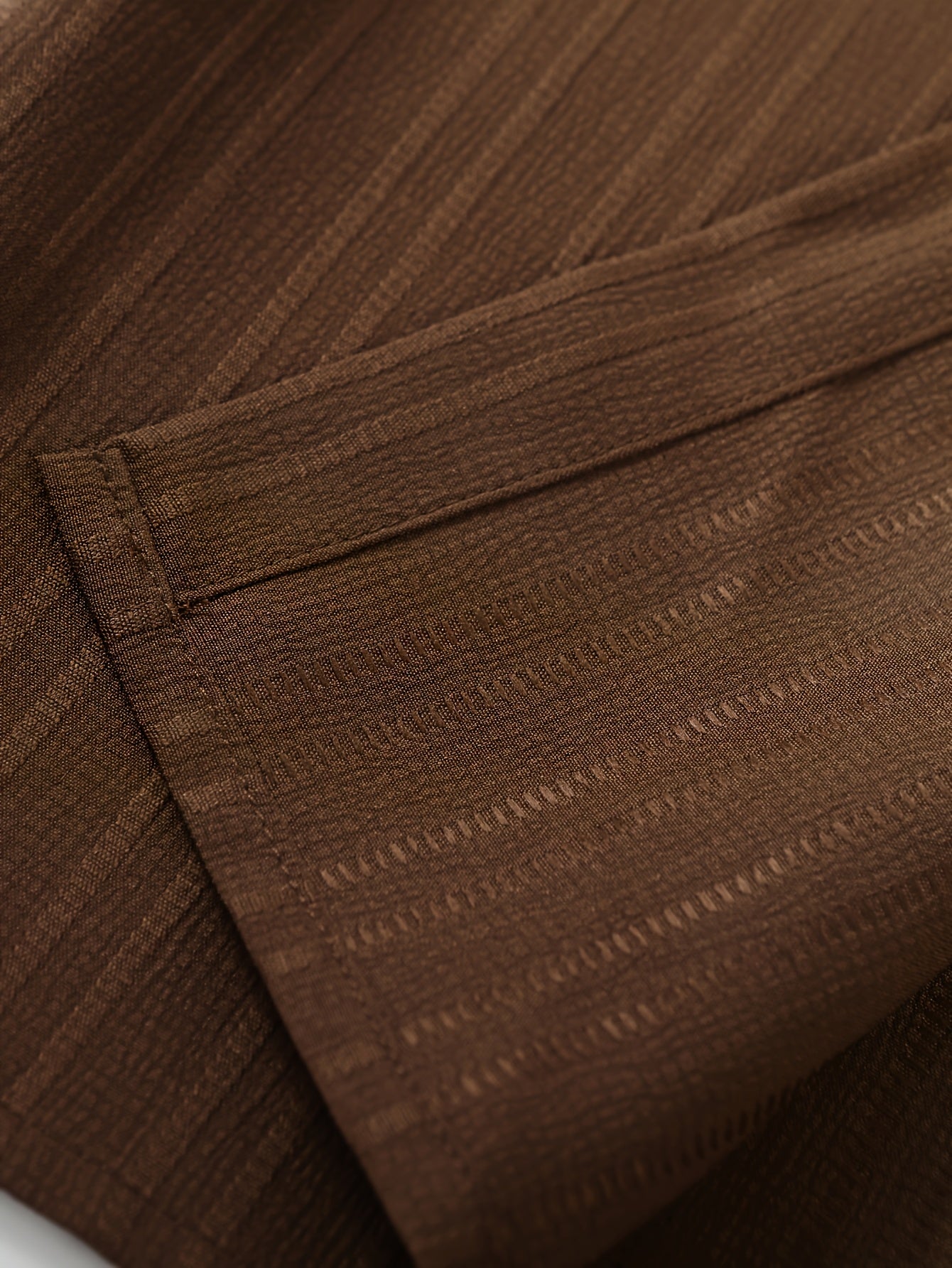 Men's New Trendy Textured Wave Stripe Short Sleeve Long Pants Casual Suit