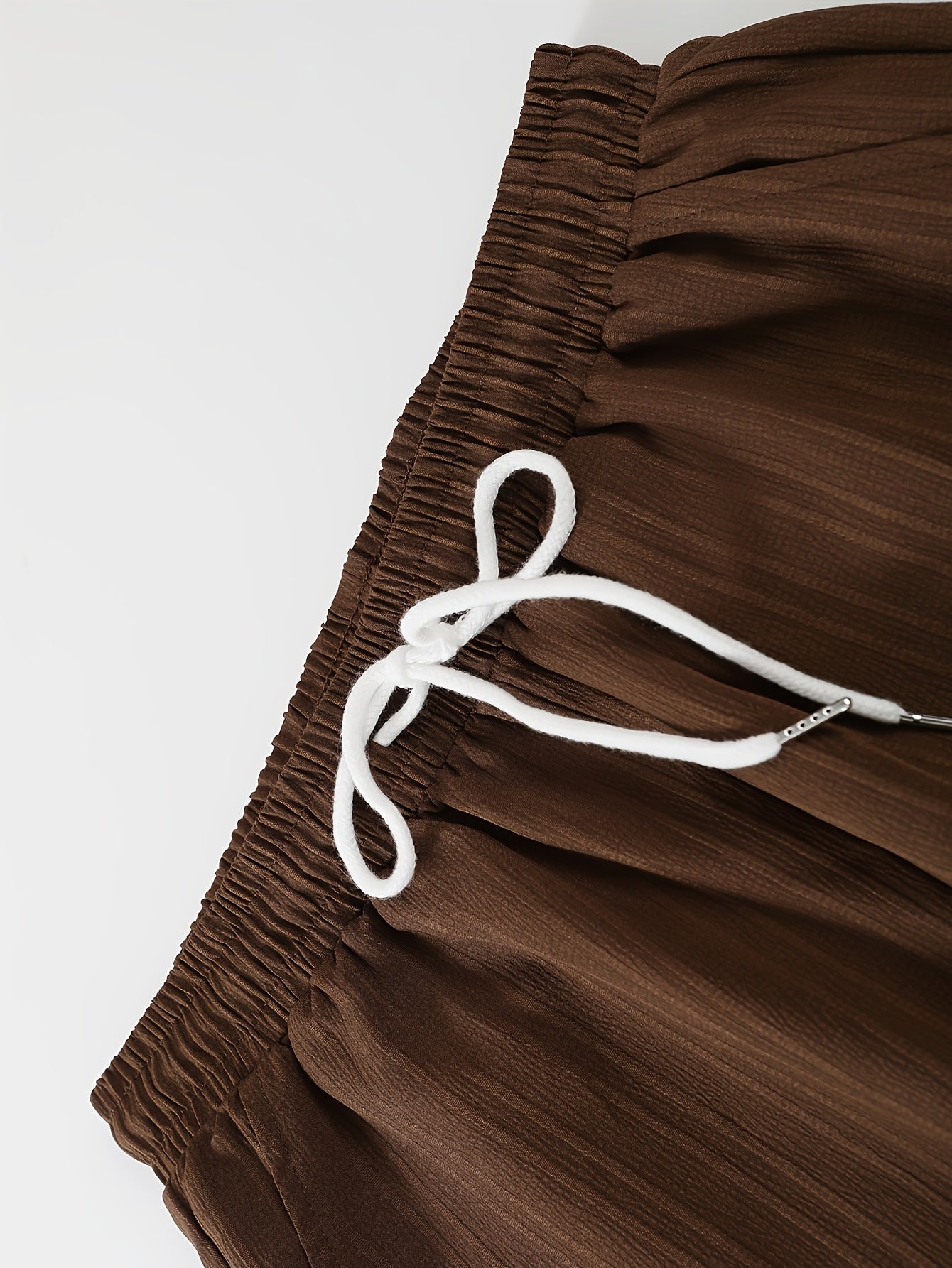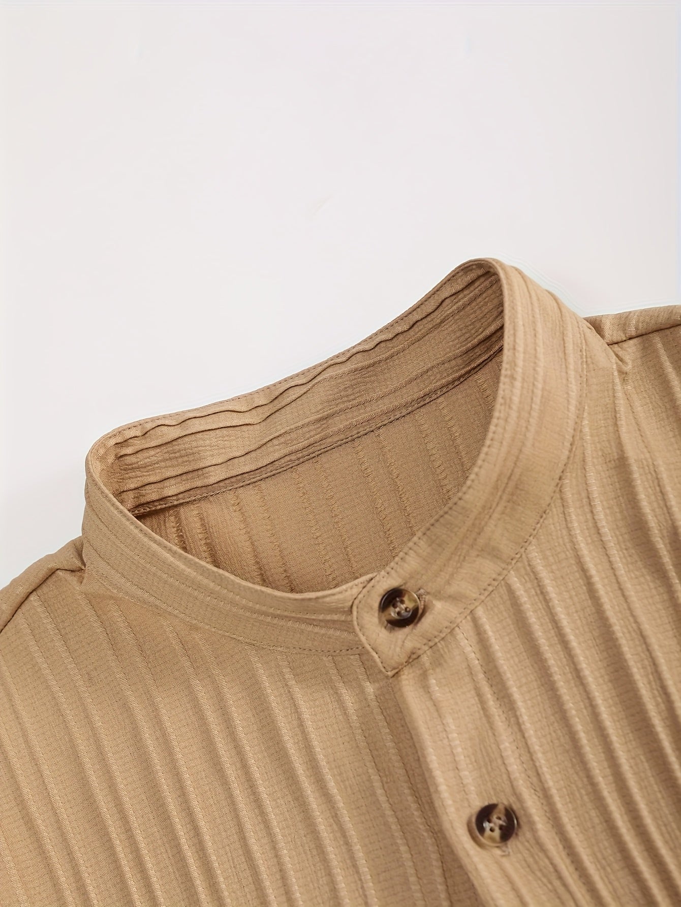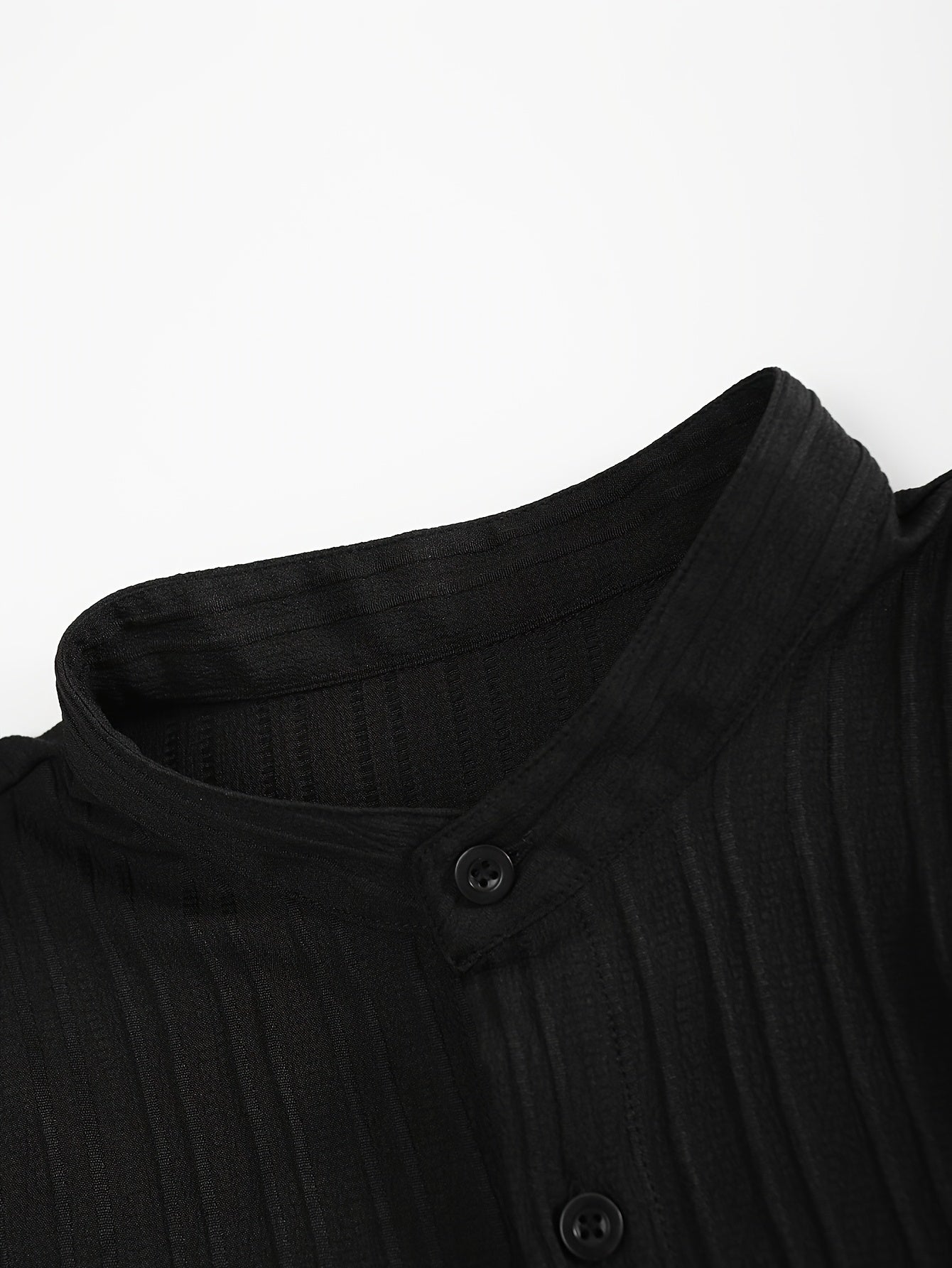 Men's New Trendy Textured Wave Stripe Short Sleeve Long Pants Casual Suit
