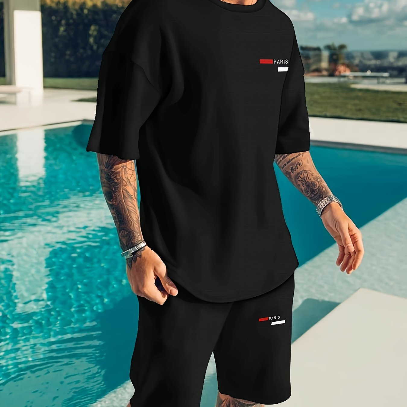 Men's Paris Letter Graphic T-Shirt - Black with Red Print, Breathable Polyester Round Neck Streetwear Tee for Summer, Casual & Outdoor Wear, Outdoor Clothing | Trendy Tshirt | Relaxed Fit Shirt