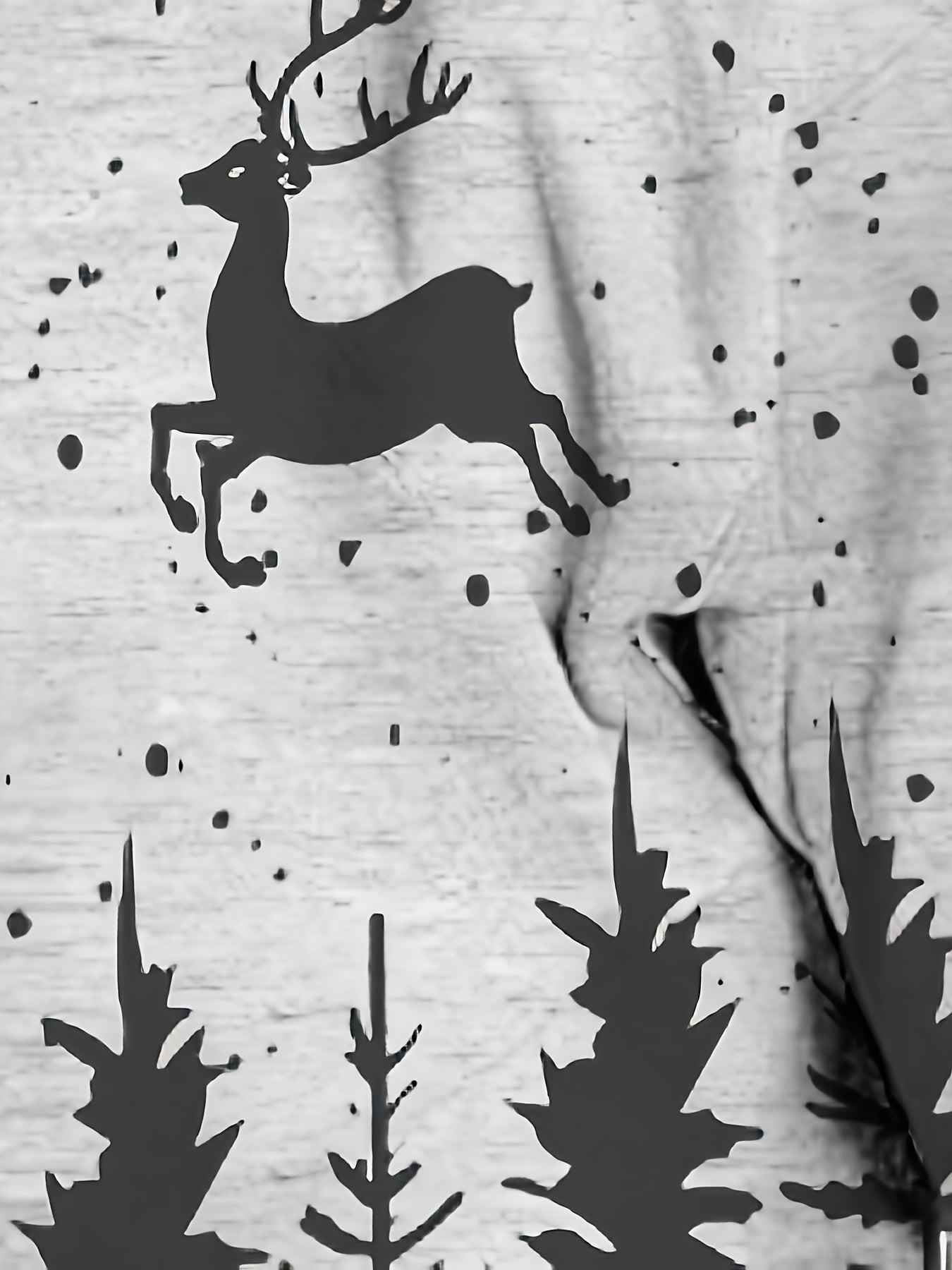 Men'S Plus Size Long Sleeve Henley Shirt with Forest & Deer Application, 100% Polyester Knit Fabric, Regular Fit Sporty & Party Top with Collared Neck and Slight Stretch - Printed Design