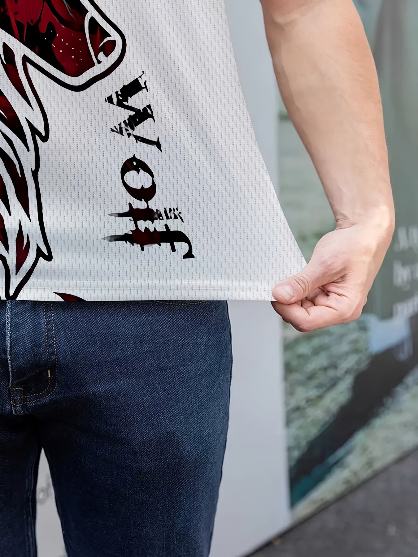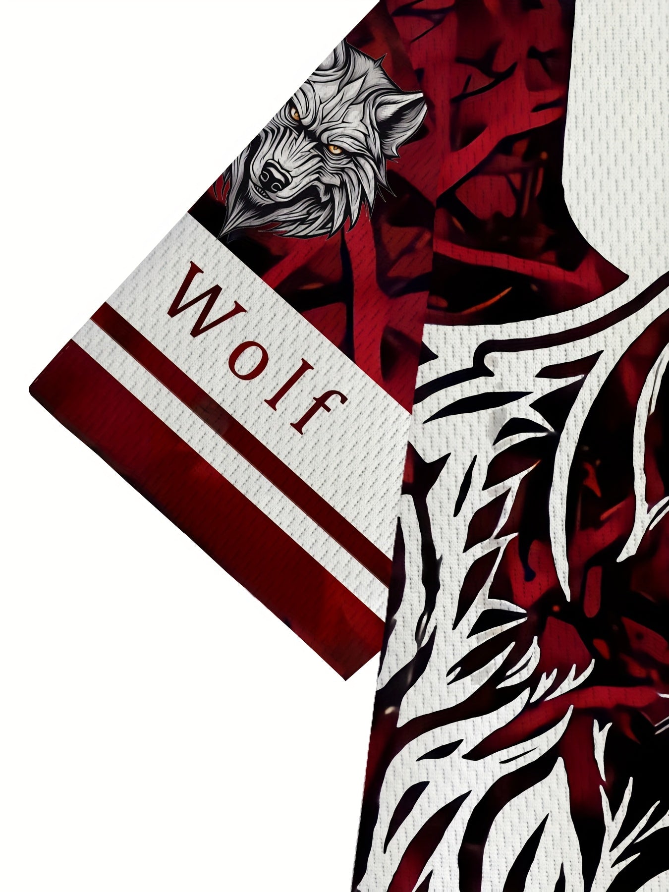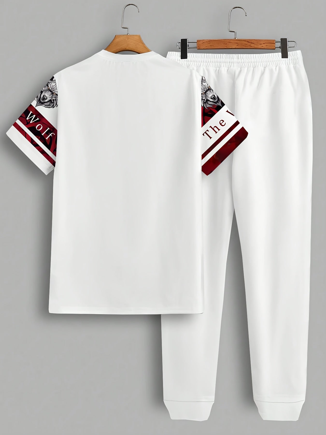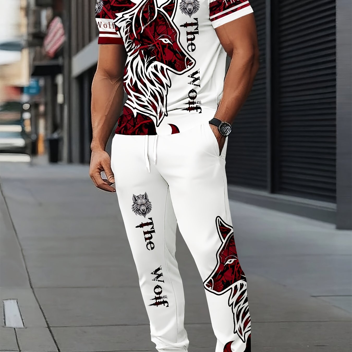 Men's polyester sportswear | Elegant and casual round neck with a Wolf head | Slightly elastic knitted strap with 3D printing | 2pcs set with normal style | Patterned short-sleeved T-shirt and trousers
