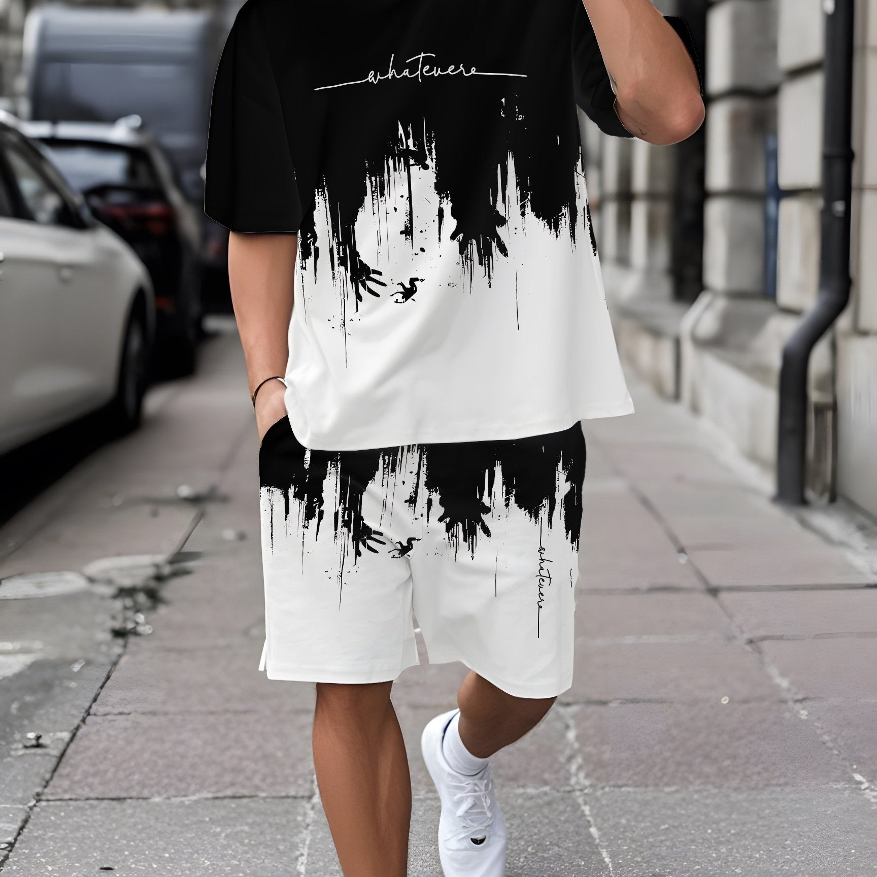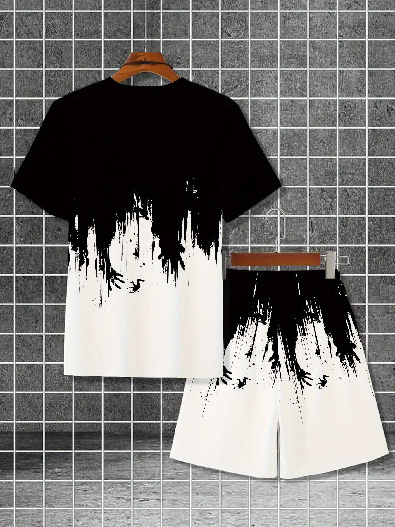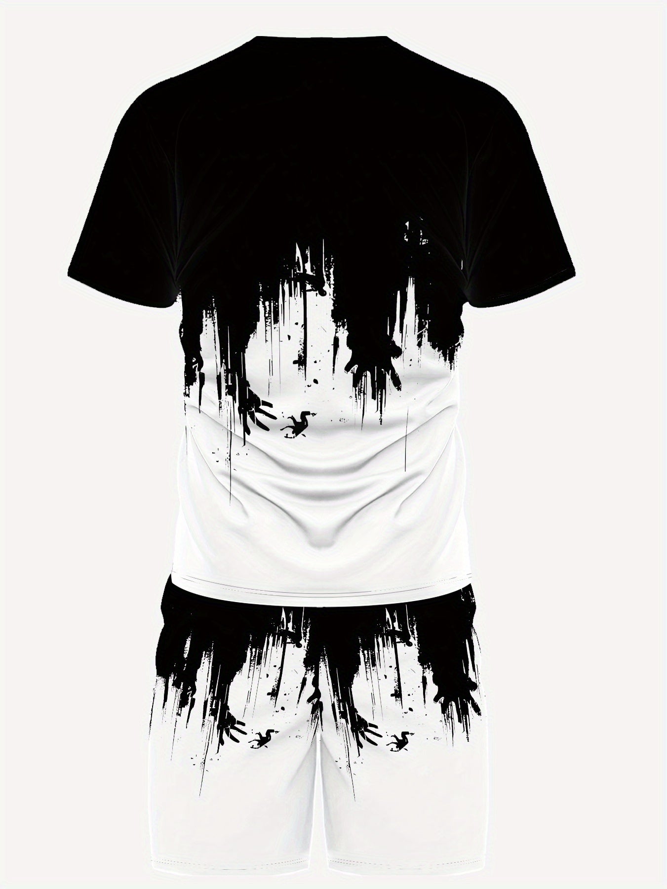 Men'S Print Short-Sleeve T-Shirt And Shorts Set, Breathable Outdoor Casual Sports Outfit, Summer 3D Print Set for Adult Men.