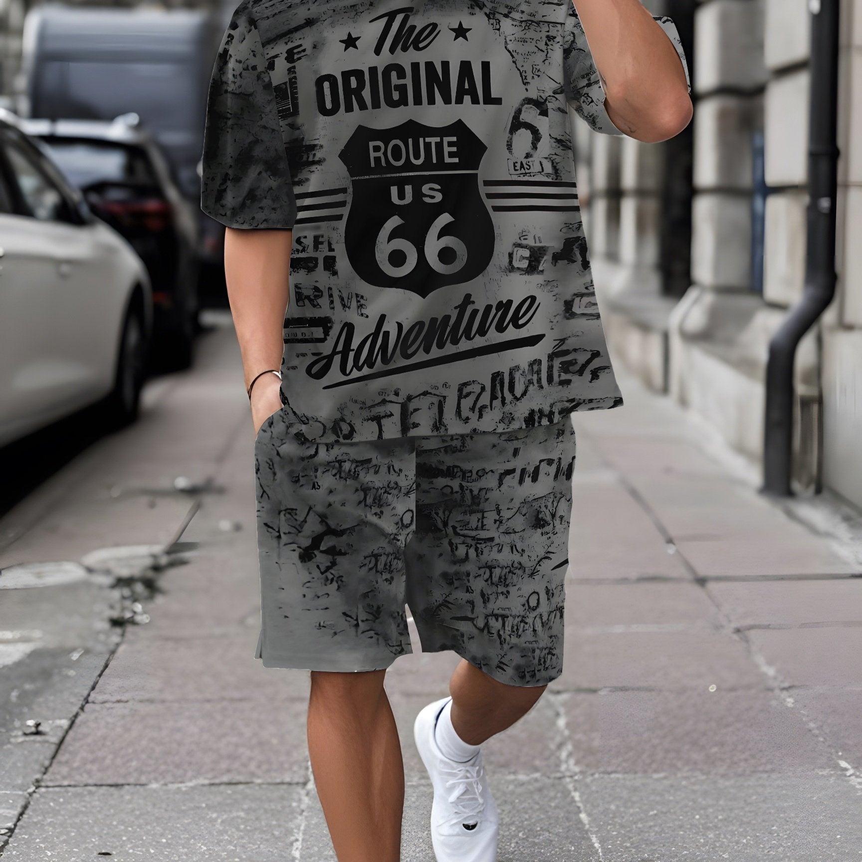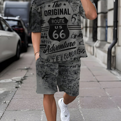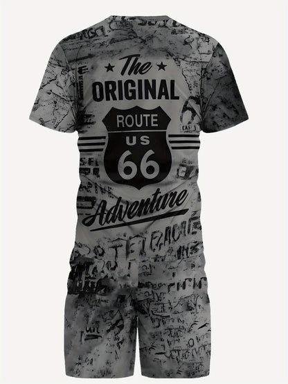 Men's Printed Short Sleeve T-shirt + Shorts Set Casual Sports Suit Breathable Outdoor Leisure Men's T-Shirt Five-Pants Set Summer 3D Printing Set Adult Male