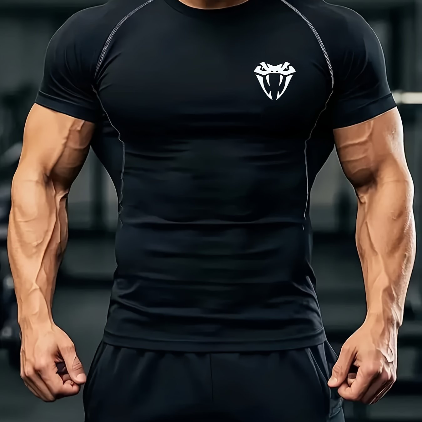 Men'S Quick-Dry Athletic Compression T-Shirt with Serpent Head Logo - Short Sleeve, High Stretch, Breathable Fabric for Running Workout, Blue