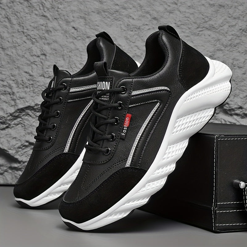 Men's Retro Sneakers - White Green Accent Lace-Up Shoes, Cushioned PVC Sole for All-Day Comfort, Low-Top Sneakers for Gym, Office, Casual Attire - Model HX-7, Gym Footwear, Sleek Casual Style, Fabric Upper, Durable Traction