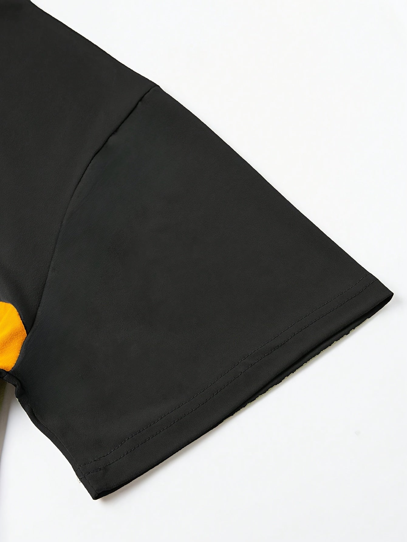 Men's Round Neck T-Shirt, Three-Color Patchwork Top with Asymmetric Double Stripes, Trendy Comfortable Breathable High-Quality Factory-Made Casual Fit