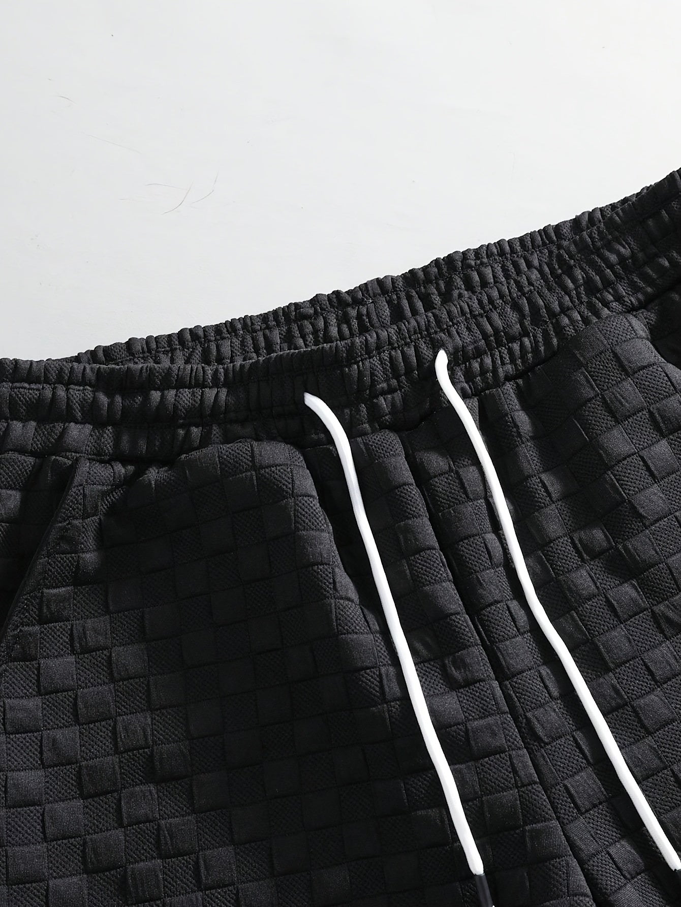 Men's Set Shirt Short Sleeve Shorts Thick Solid Color Knit Jacquard Casual Comfort High-Quality Two-Piece Set