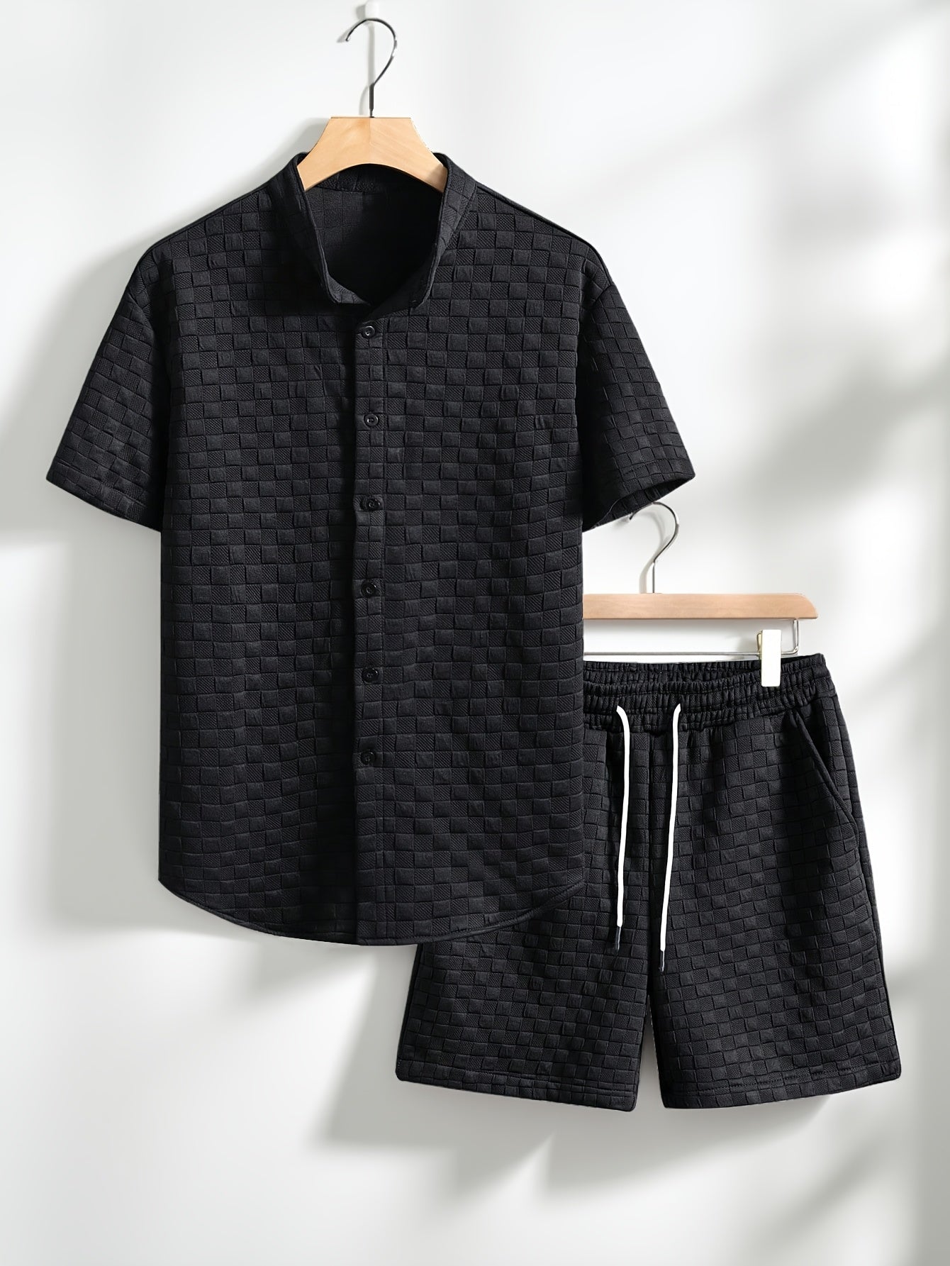 Men's Shirt and Shorts Set Solid Color Knit Casual Comfort High-Quality Short Two-Piece