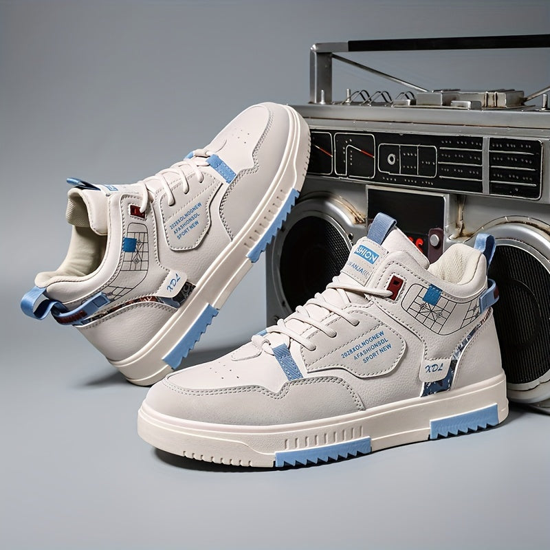 Men's Skate Shoes with Good Grip Breathable Design - PU Upper, Cushioned PVC Sole, Black/Blue Letter Pattern Lace-Up Sneakers for All-Season Casual Sports Wear, Allseason Shoes Modern Casual Shoes Comfortable Wear