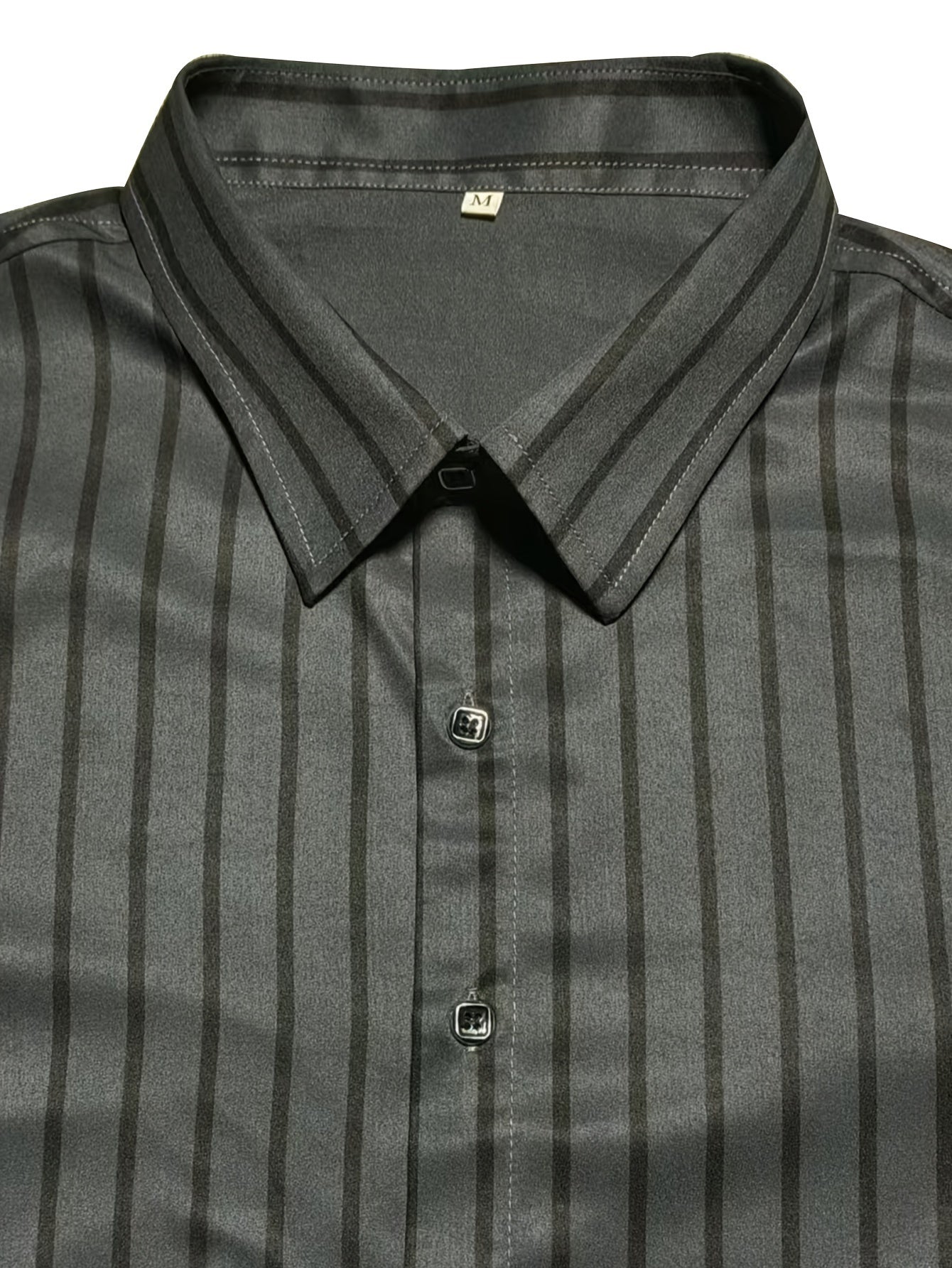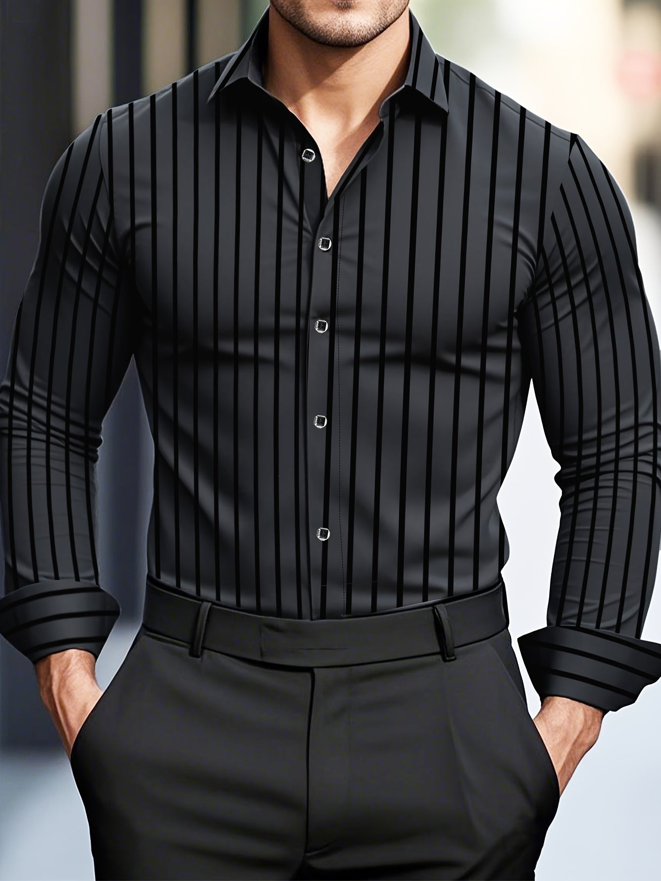 Men's Slim-Fit Striped Long Sleeve Shirt - Polyester, Machine Washable, Business Casual Style for Spring/Fall, 1856 Print, Hexagon Collar