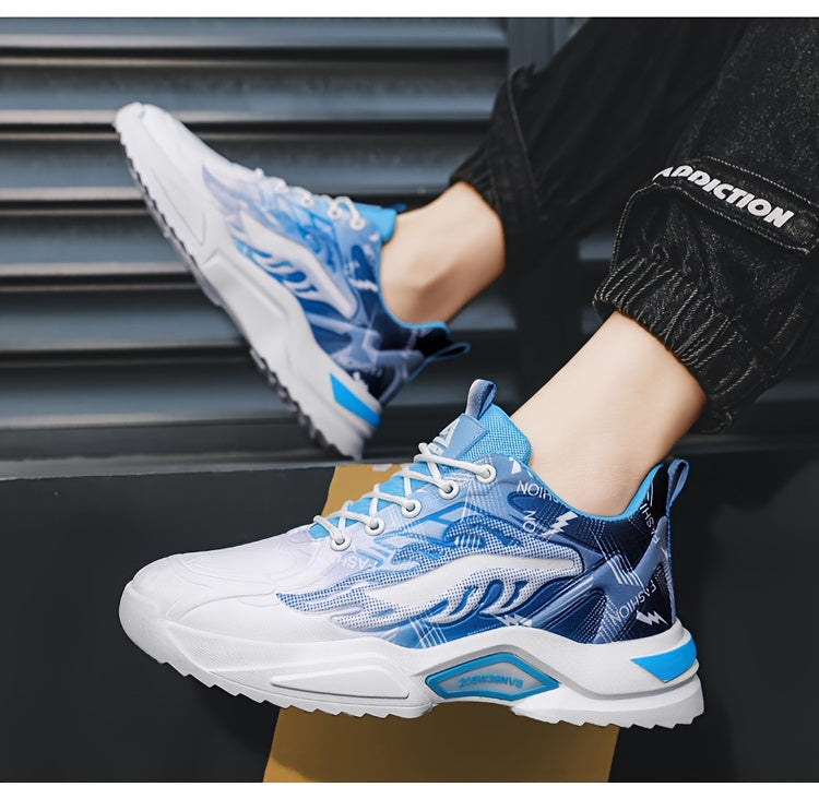 Men's Sneakers - Lightweight Cushioned Platform Sneakers with Lace-Up Closure, Non-Slip PVC Sole - Breathable Gym, Running, Casual Shoes in Grey/Black colorway - for Everyday Light Hiking, Gym Shoes