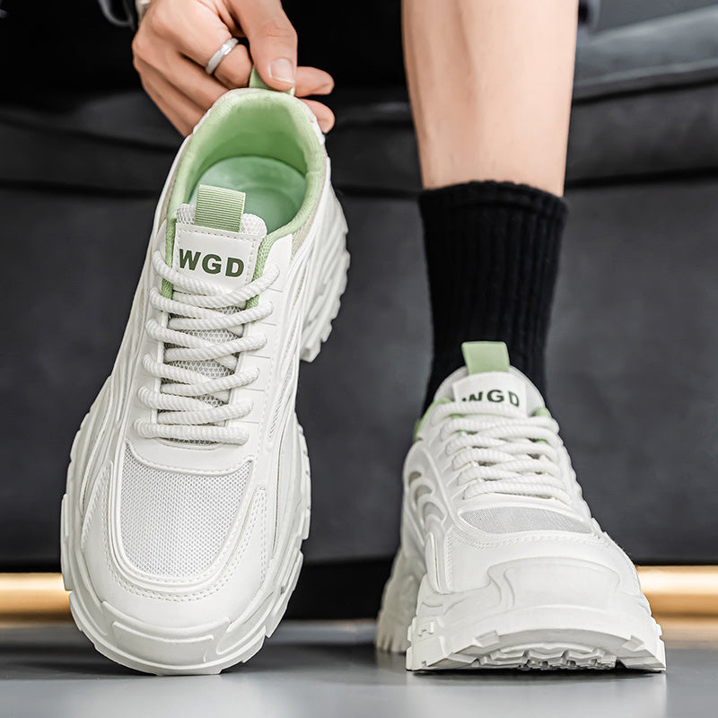 Men's Sneakers - Lightweight Cushioned Platform Sneakers with Non-Slip PVC Outsole, Breathable Low-Top design for Gym, Running, Casual - All-Season Everyday Formal Shoes - Black, Sleek Shoe Design, Fabric Lined Interior
