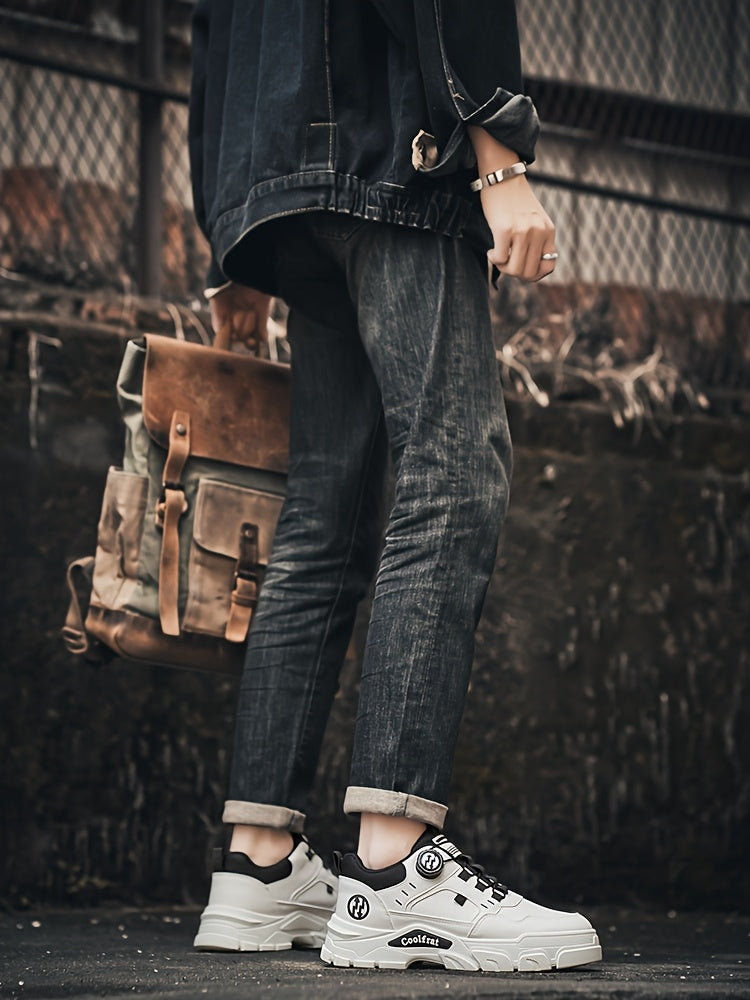 Men's Solid Color Skate Sneakers - Adjustable Rotating Buckle Straps, Slip-Resistant PVC Sole Durable PU Upper, Low-Top Lace-Up Design for Hiking, Walking, Daily Wear - All-Season Casual Streetwear Shoes, Skate Shoes