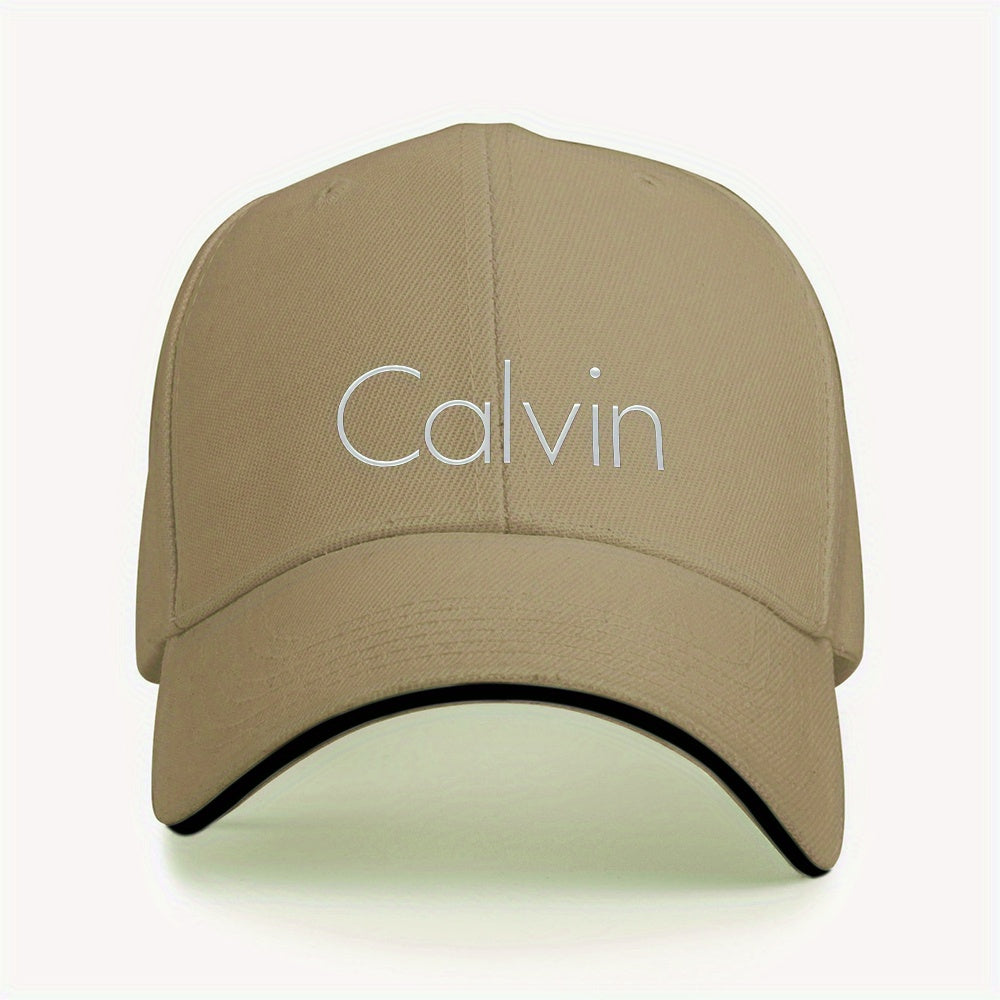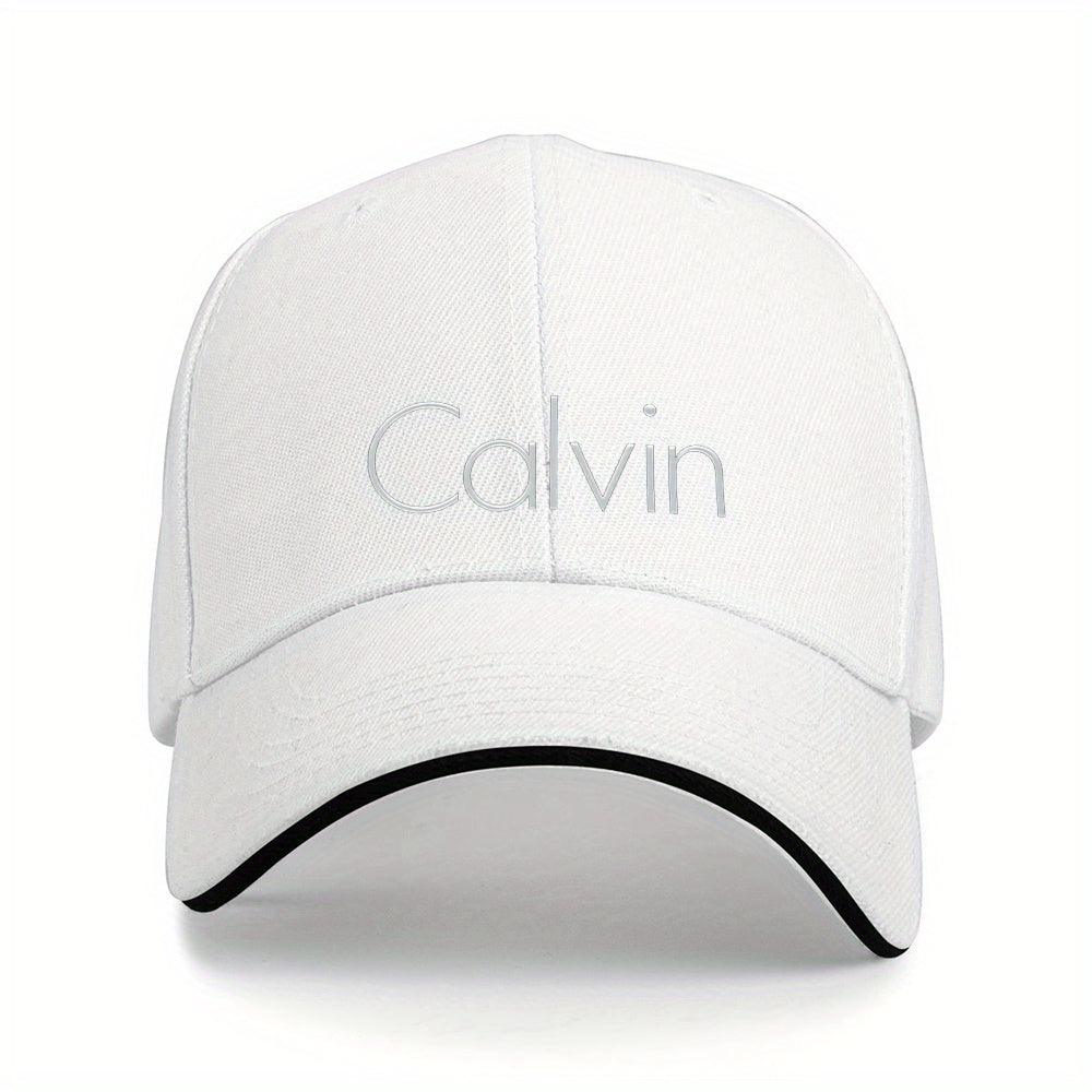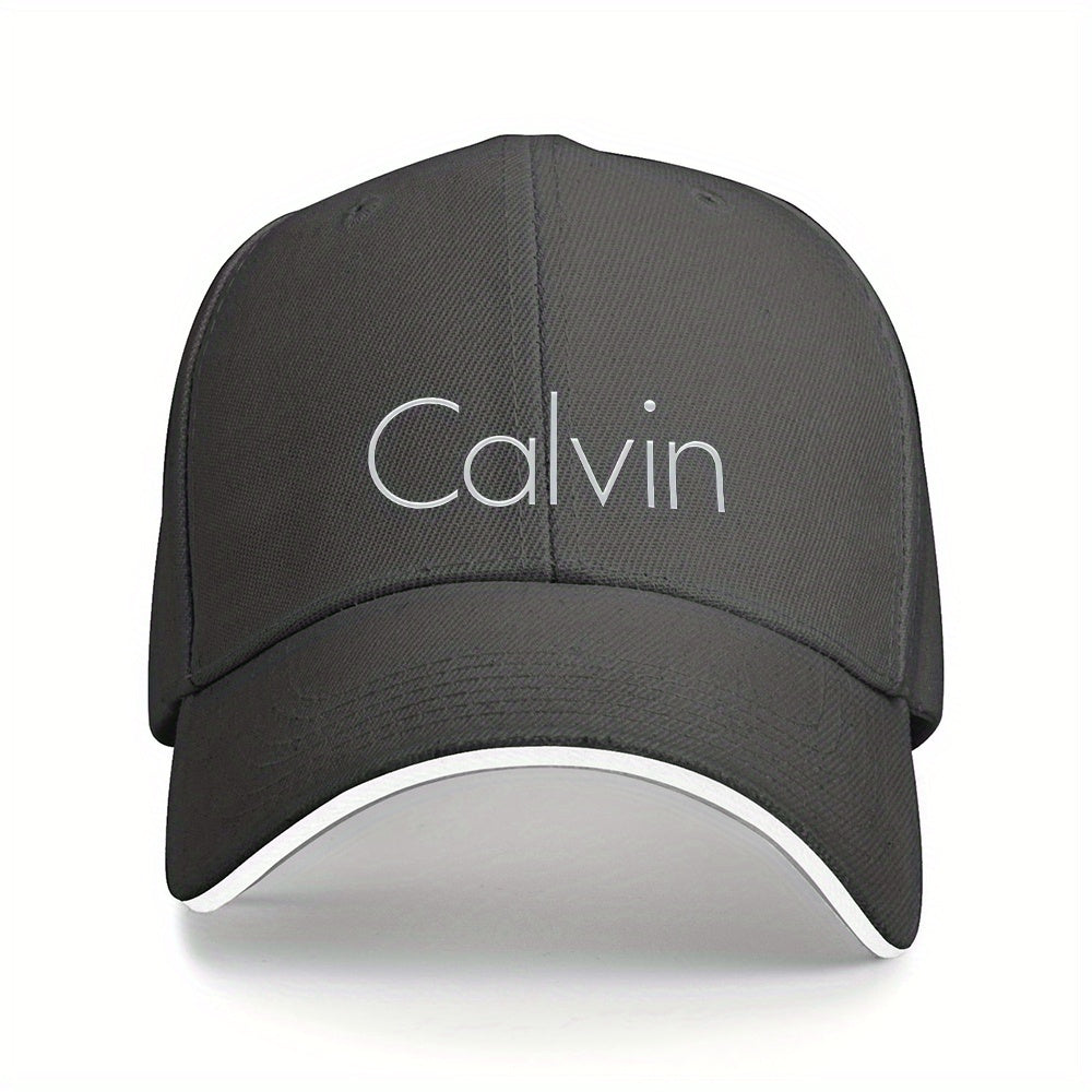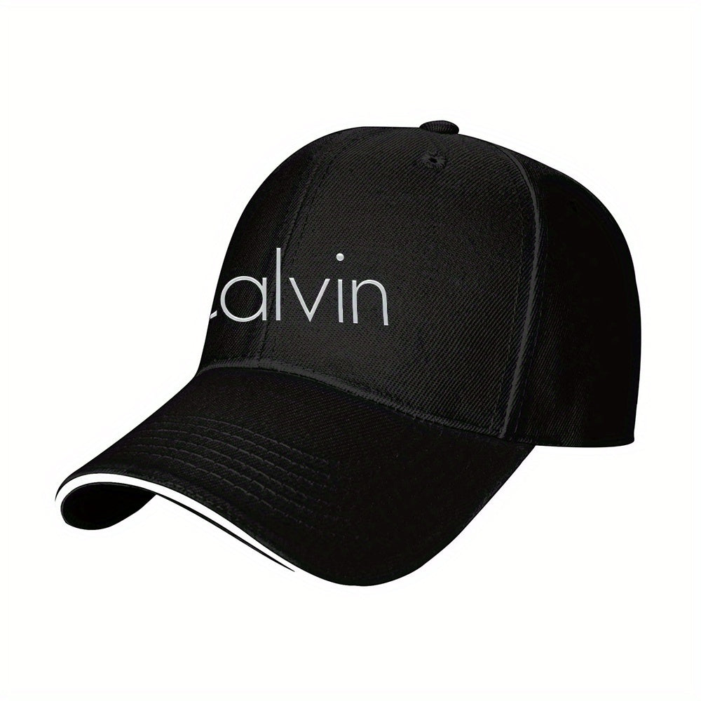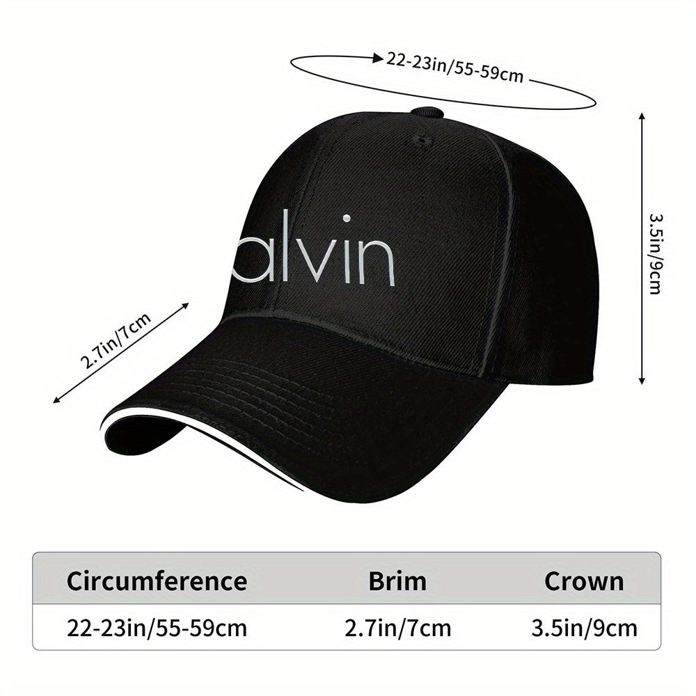Men's Sporty Breathable Polyester Baseball Cap with Modern Metallic Calvin Text Pattern - Black & White Contrast Design for Fitness, Running, Couples Matching Hats, Fitness Accessory, Sleek Sporty Style, Comfortable Headwear