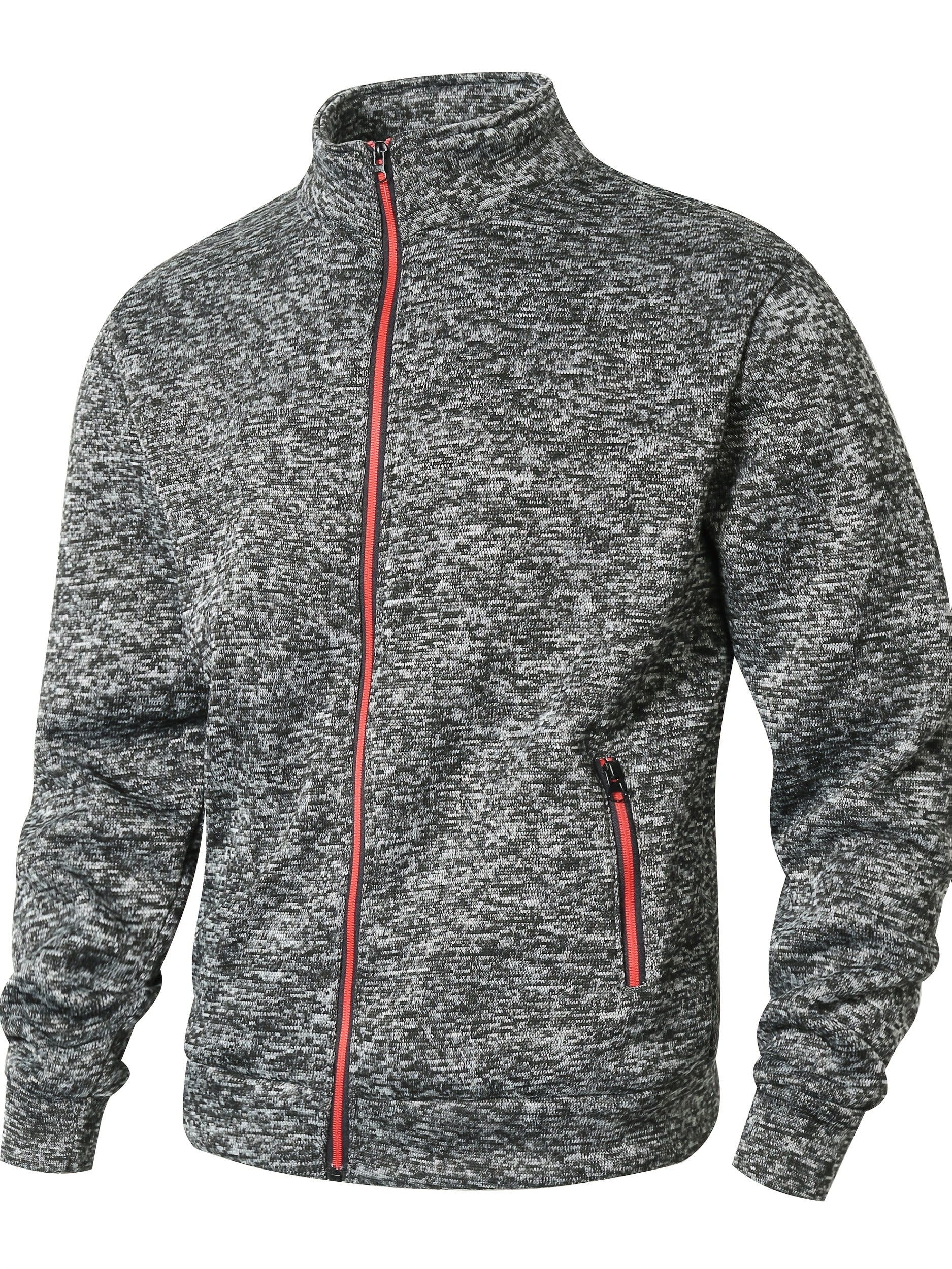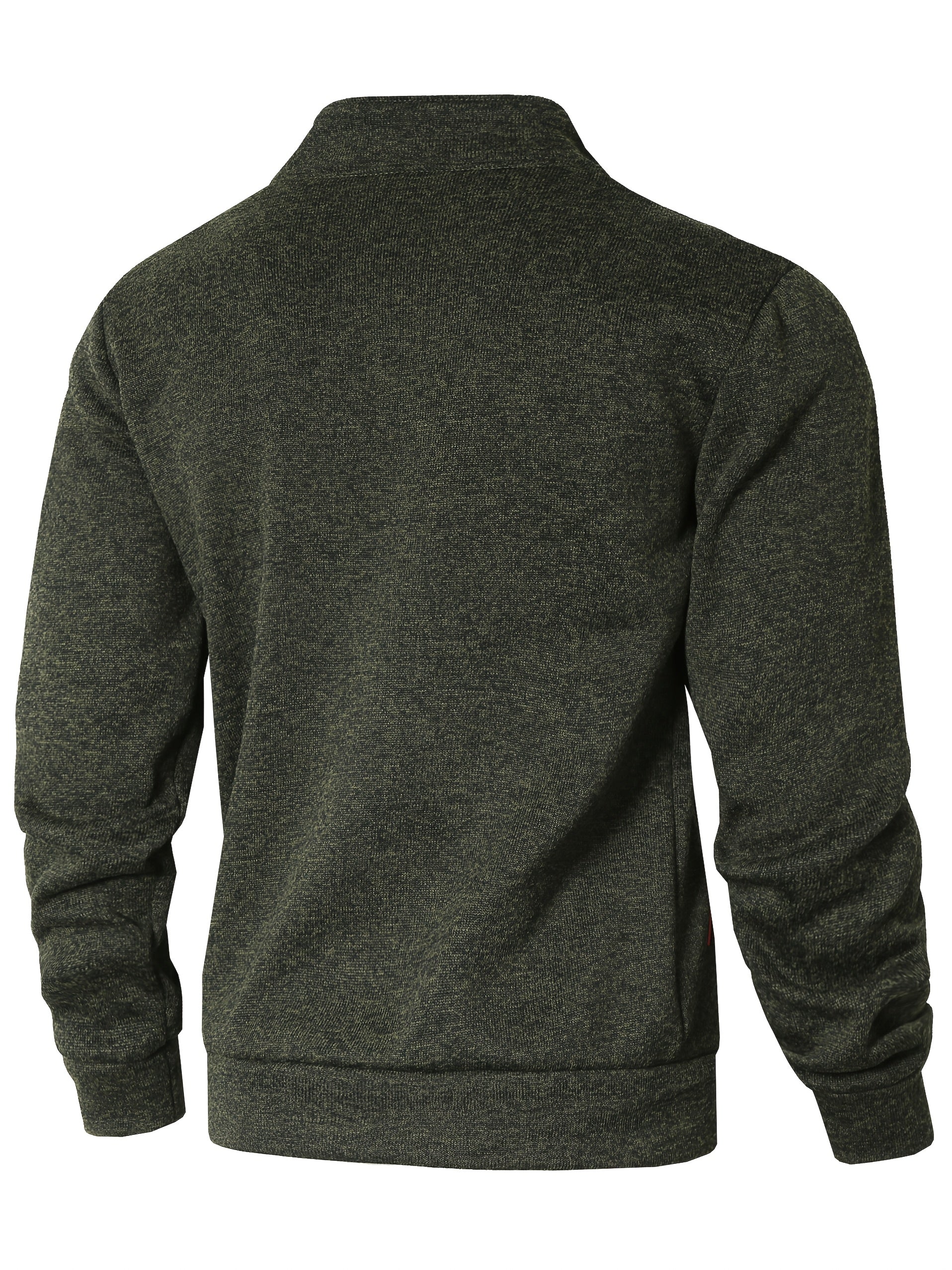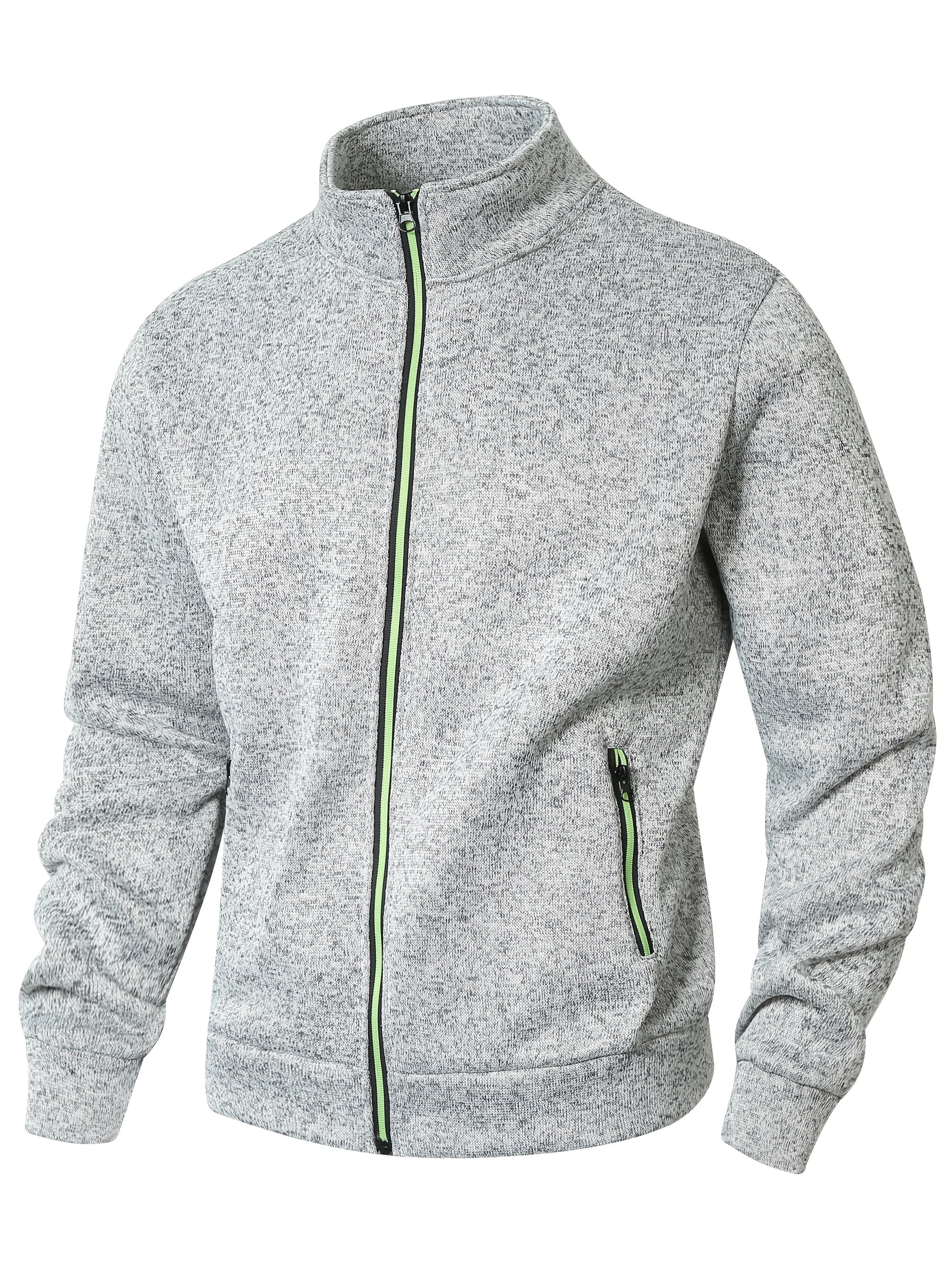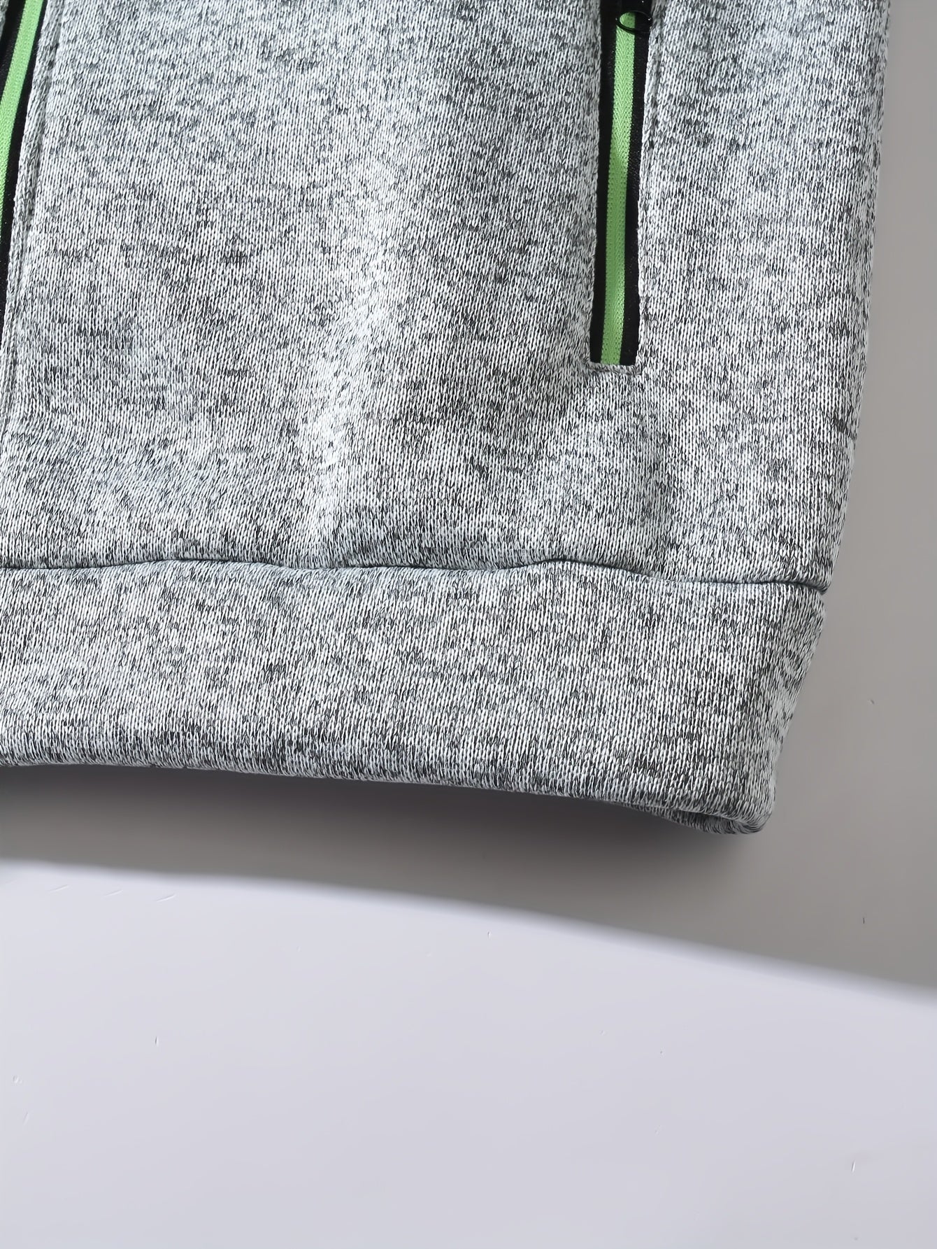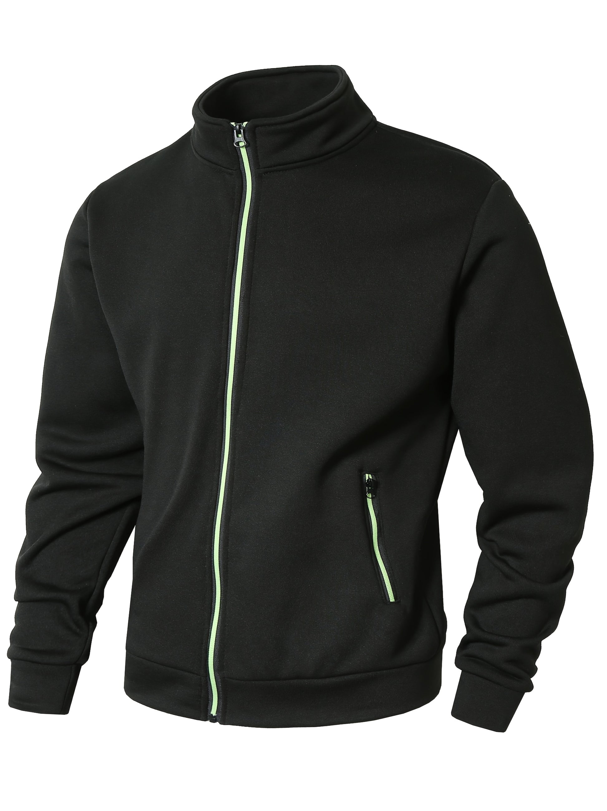 Men's Sporty Full-Zip Stand Collar Sweatshirt - Long Sleeve Casual Pullover with Neon Green Accents, Solid Color Non-Stretch Fabric, Regular Fit for Fall Winter