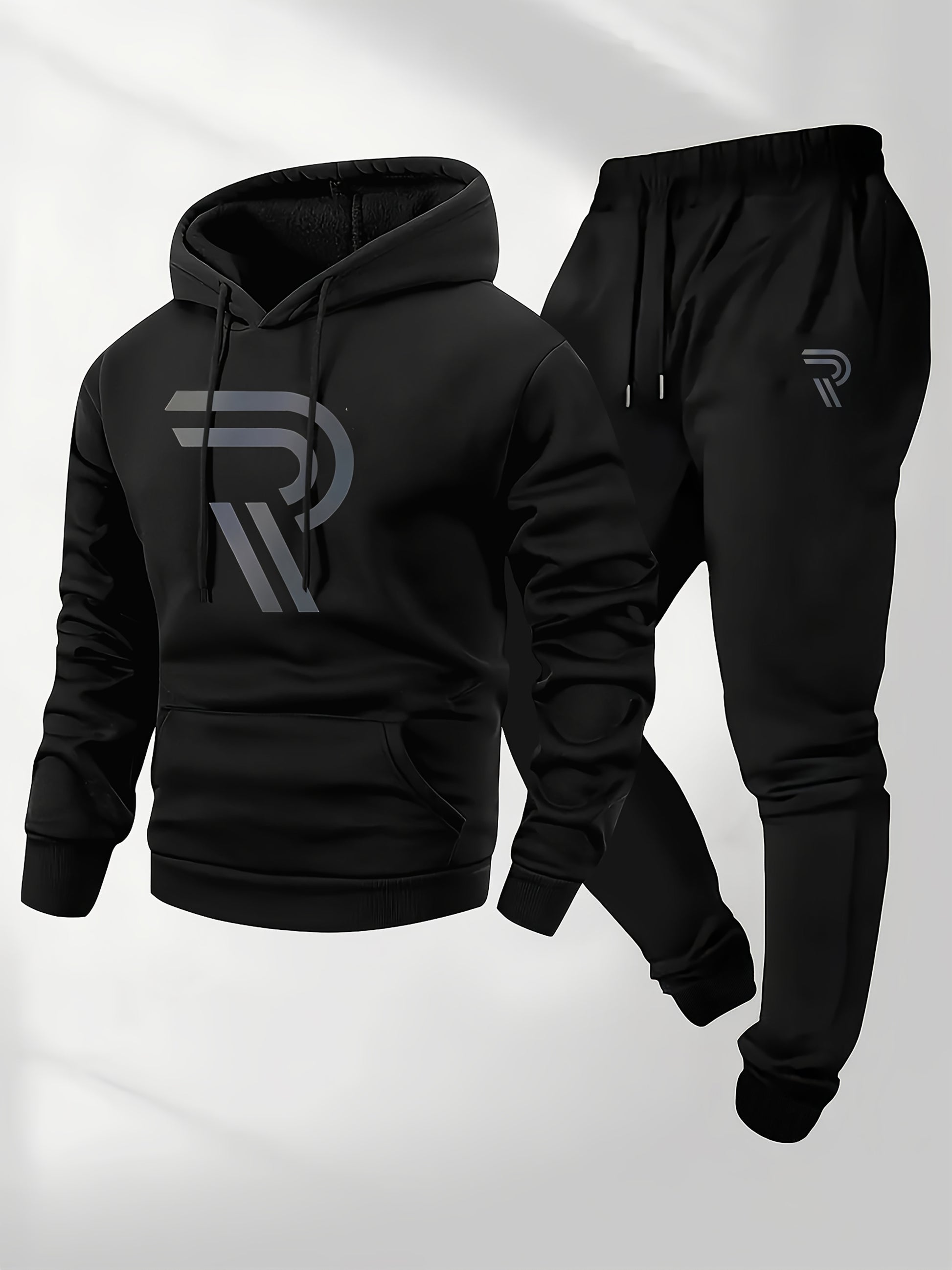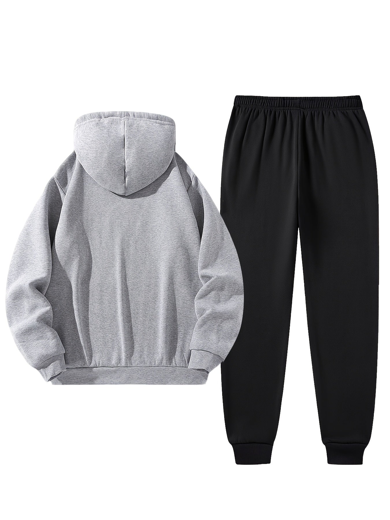 Men'S Sporty Two-Piece Hoodie and Pants Set - Gray with Black Logo, Non-Stretch Fabric, Regular Fit, Pockets, Ideal for Fall/Winter, Casual Wear|Hooded Sweatshirt|Pocketed Pants, Sweater Hoodie