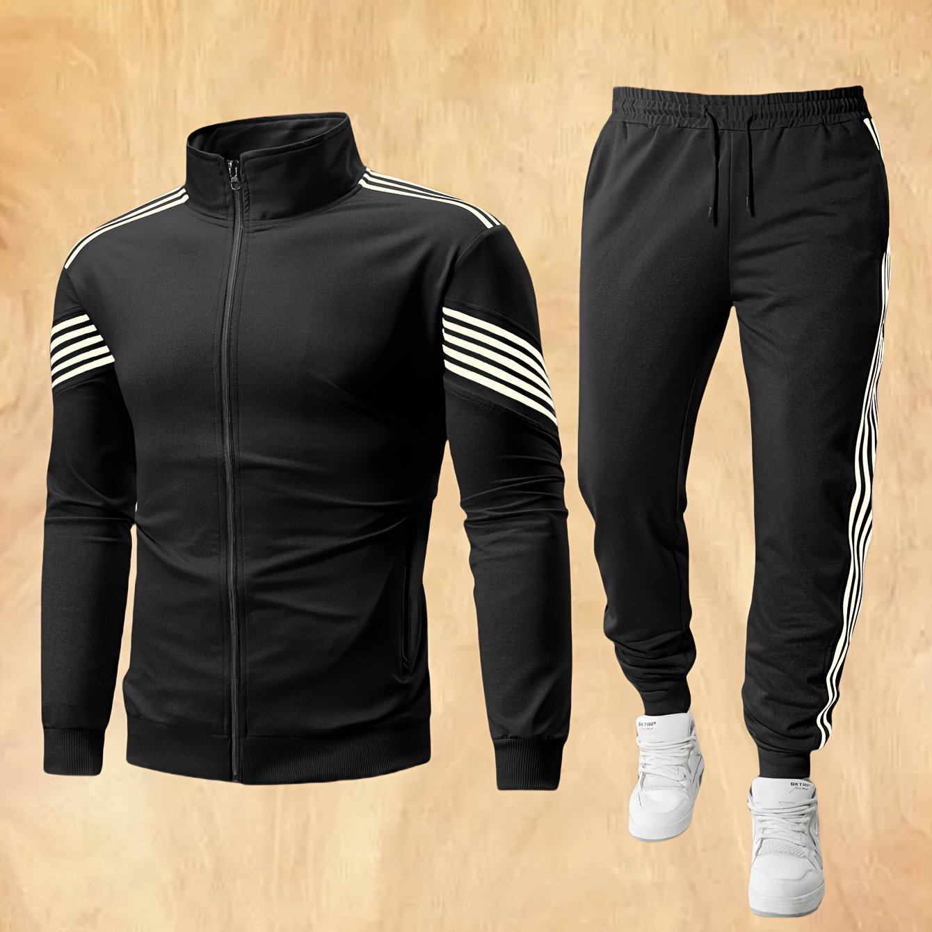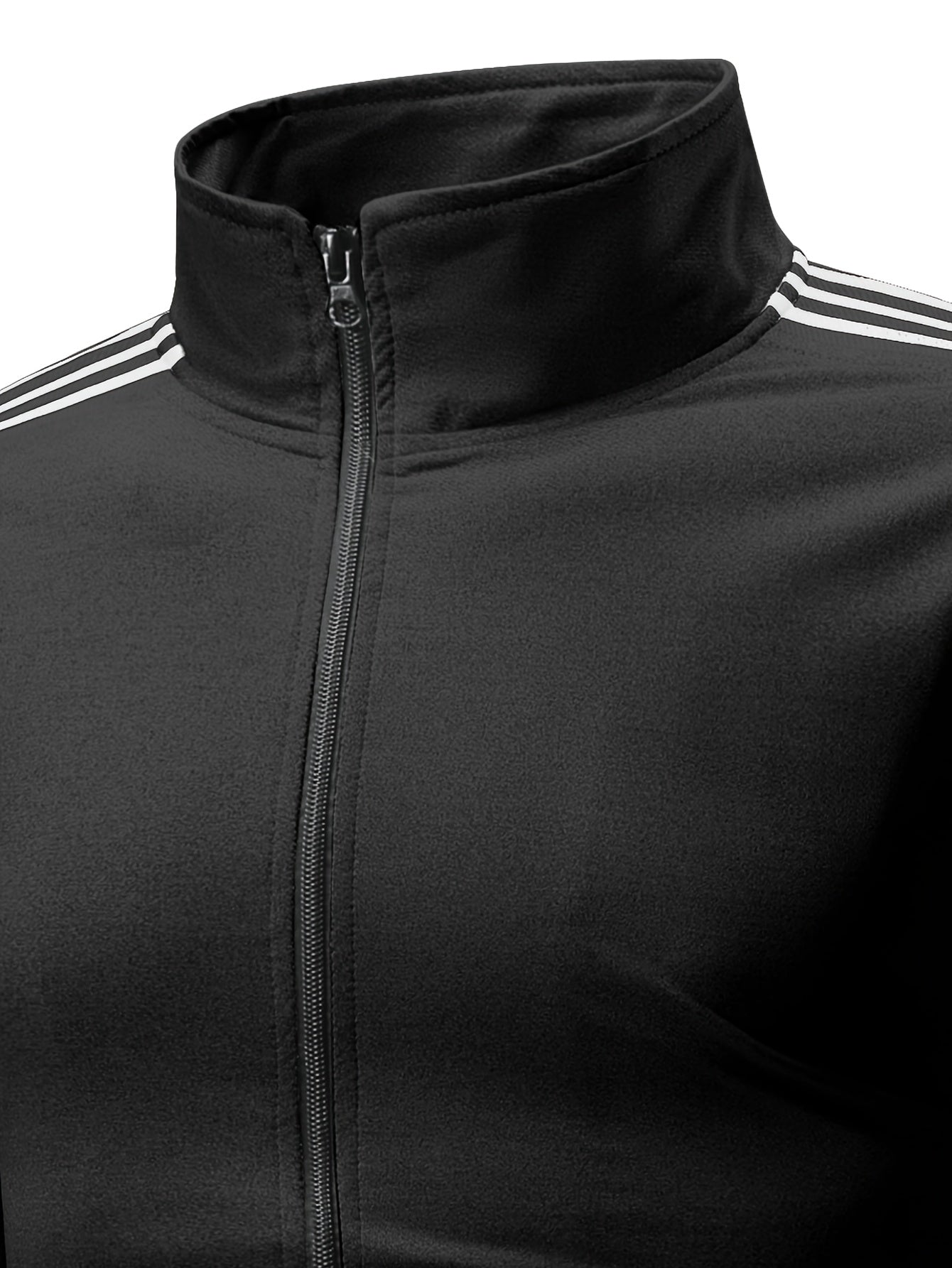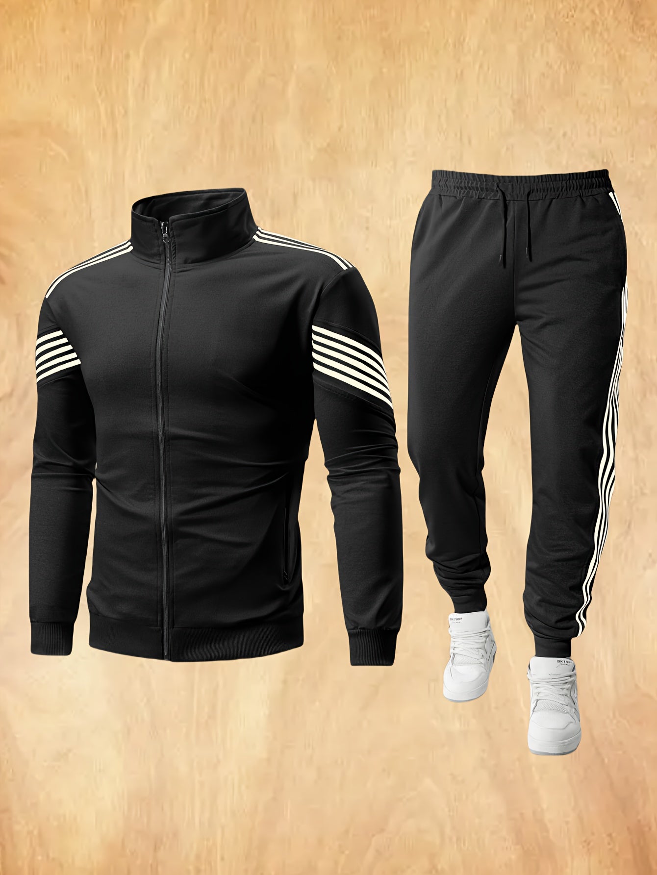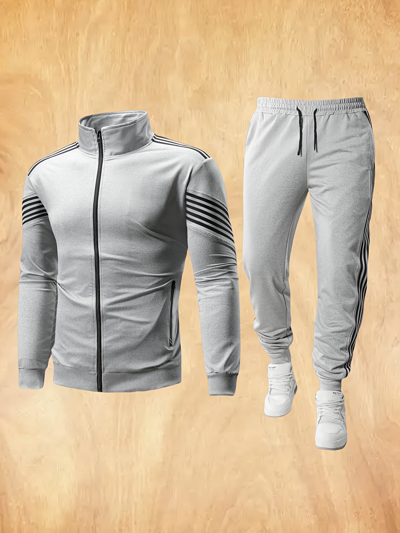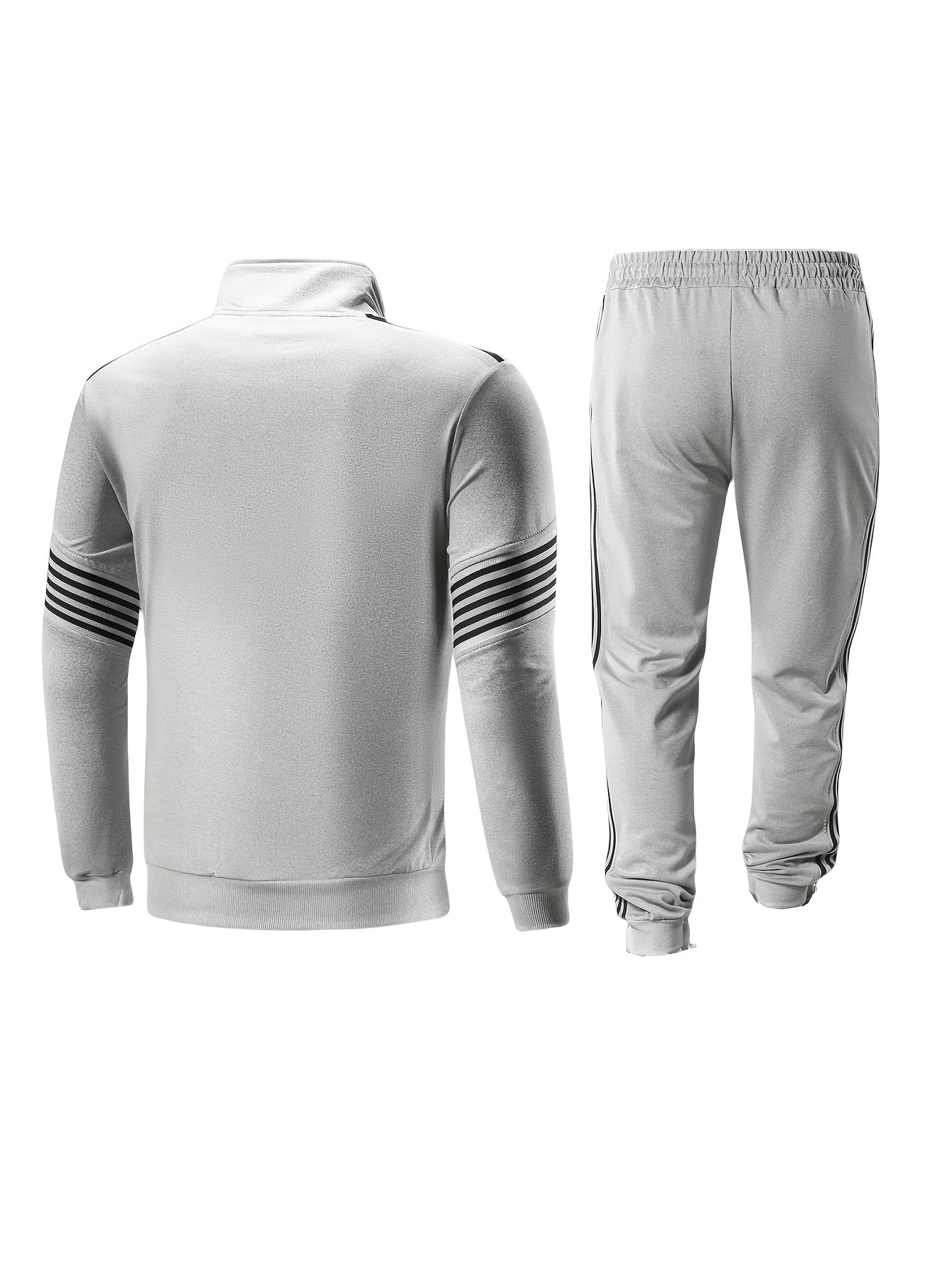 Men'S Spring And Autumn Sports Leisure Set Featuring a Stand-Up Collar Zip-Up Long Sleeve Top, Drawstring Waist Long Pants, Suitable for Running, Outdoor Fitness, And Home Wear, with Pockets And Zippers.