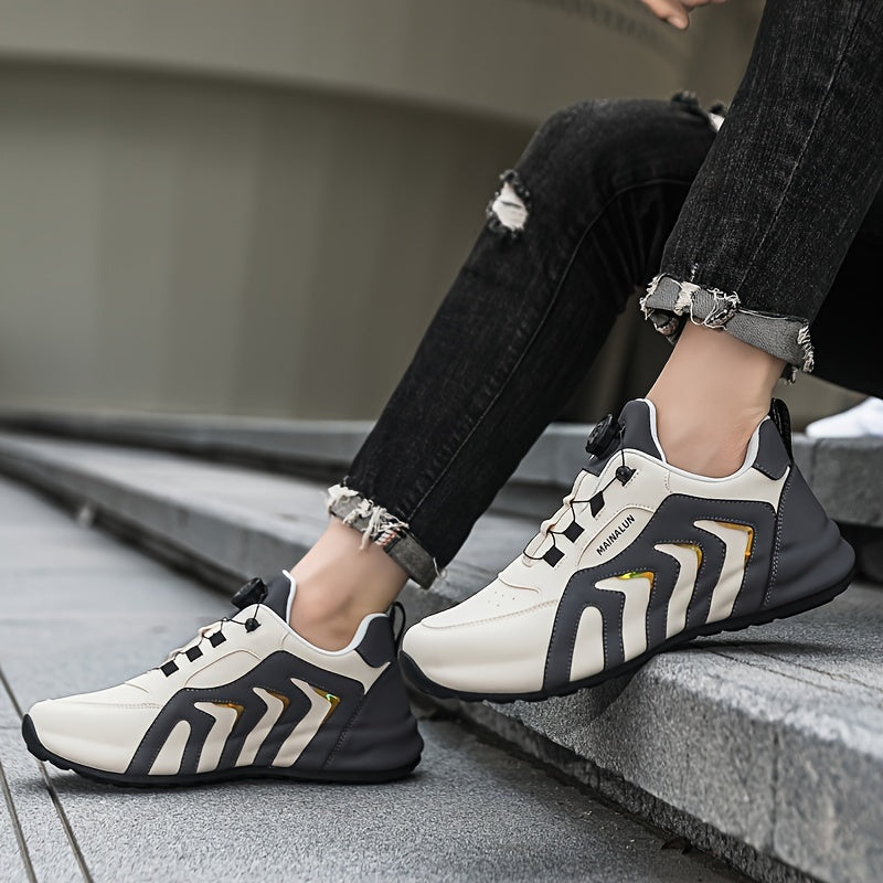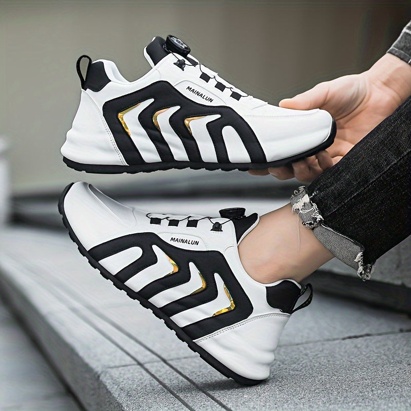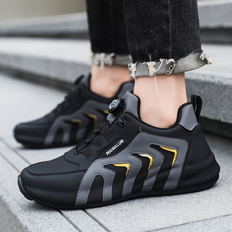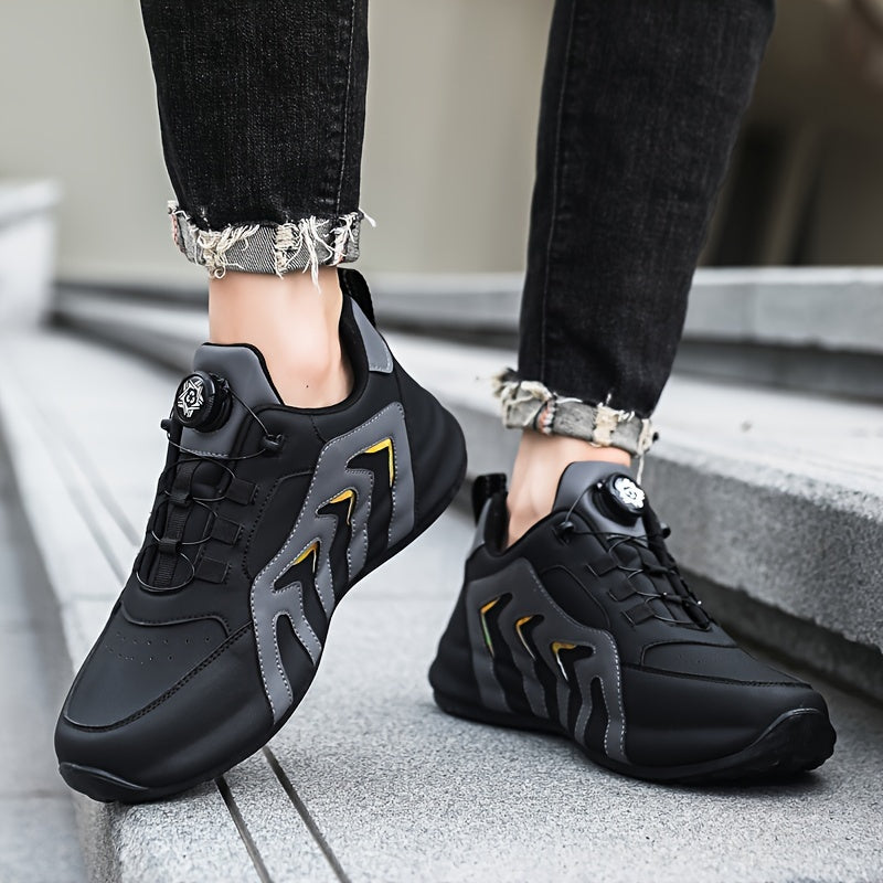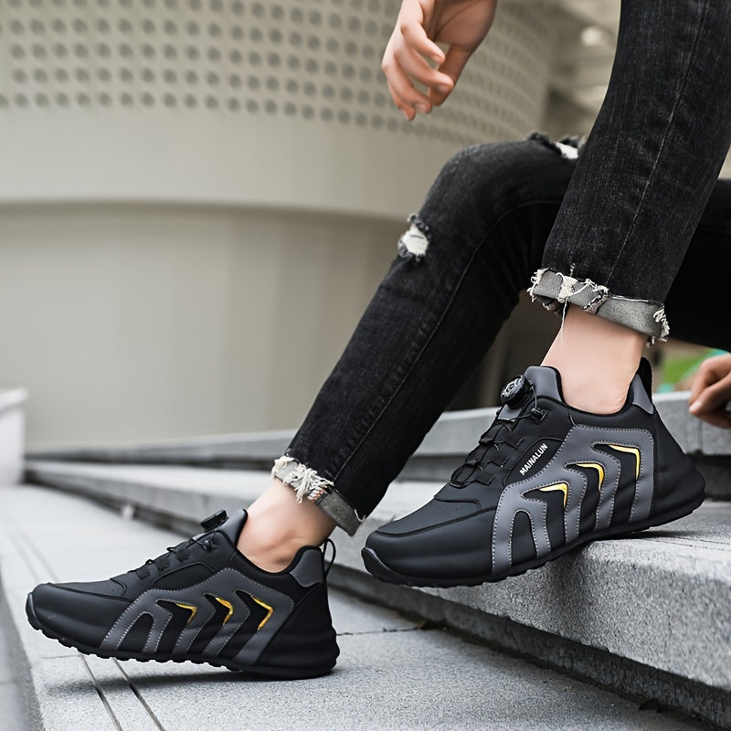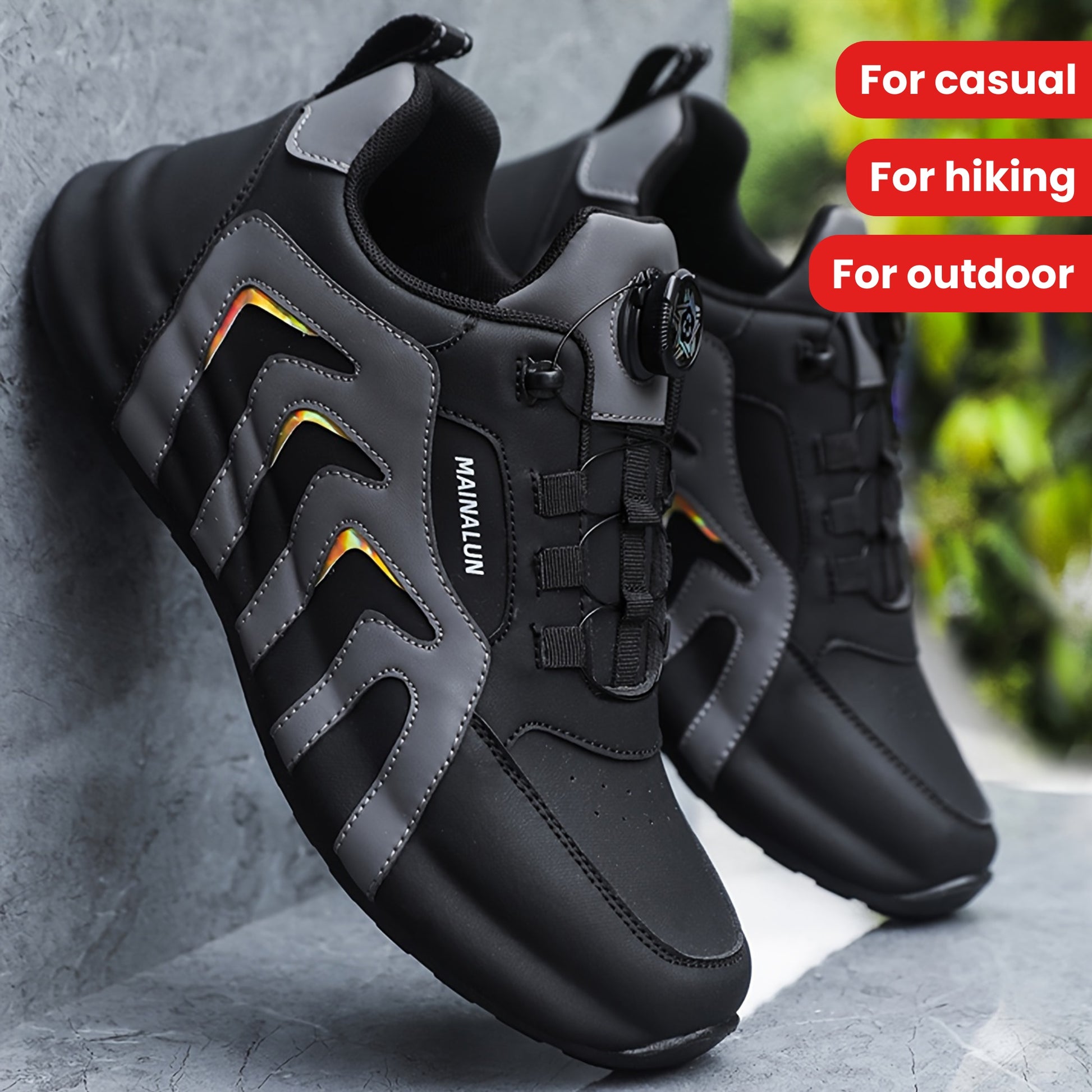 Men's Striped Casual Shoes Rotary Buckle Comfy Durable Outdoor Jogging Hiking Fishing, All Seasons