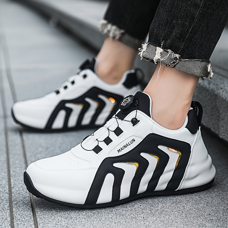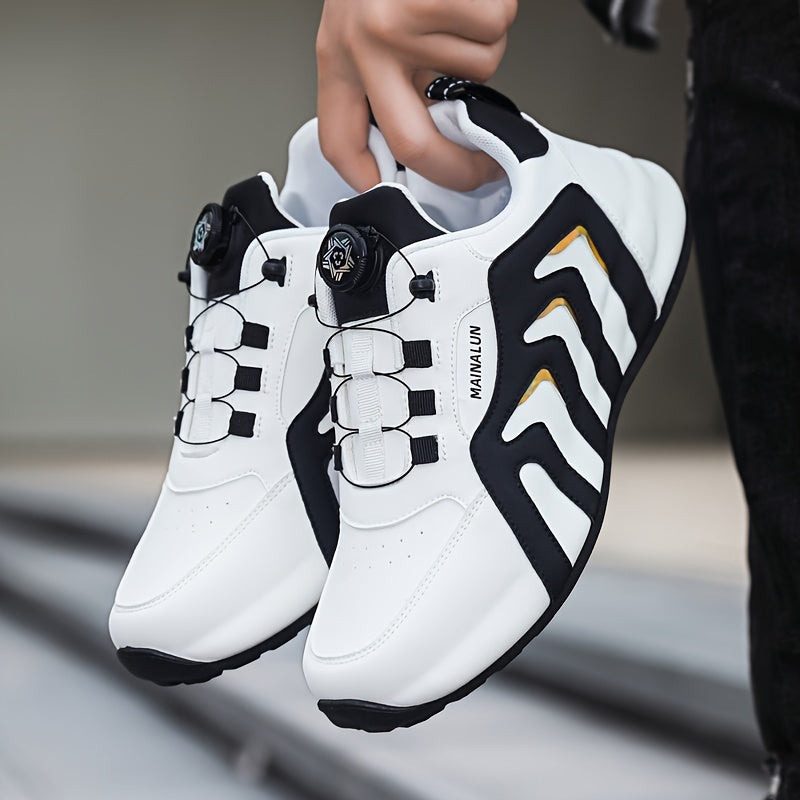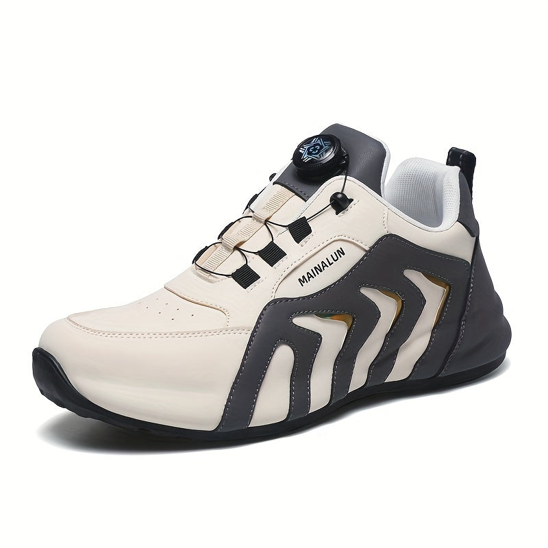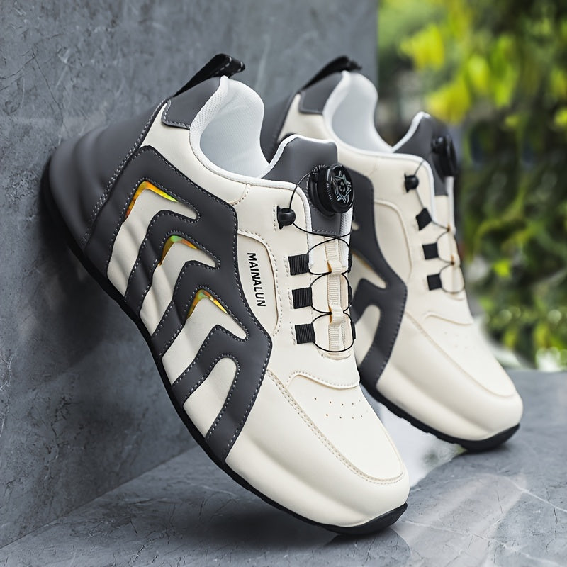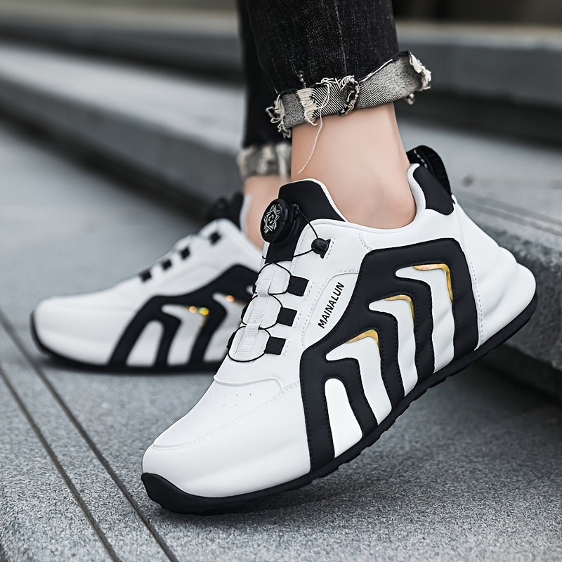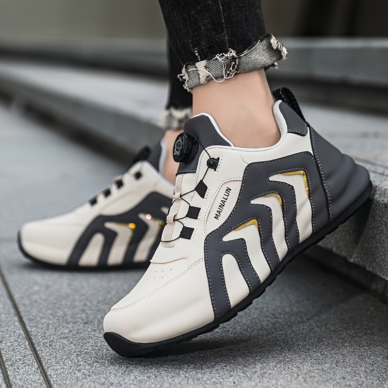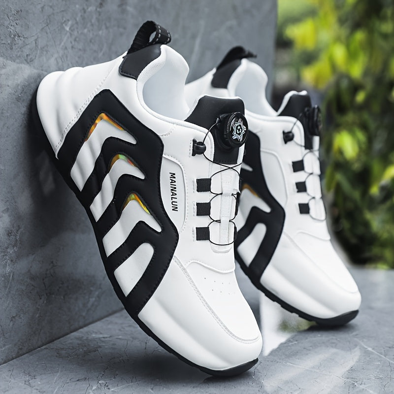 Men's Striped Casual Shoes Rotary Buckle Comfy Durable Outdoor Jogging Hiking Fishing, All Seasons