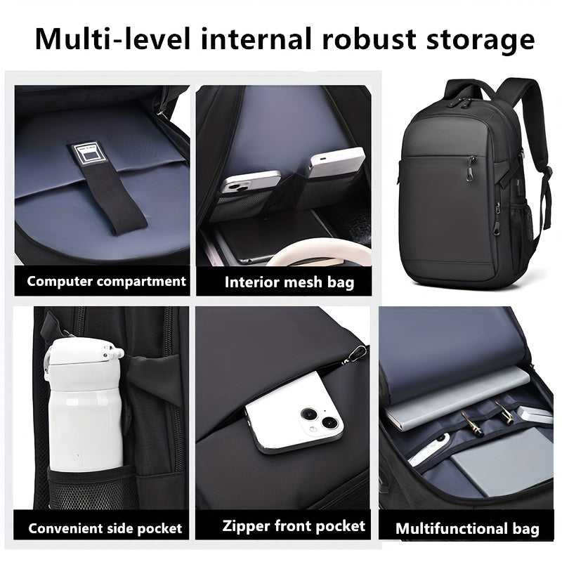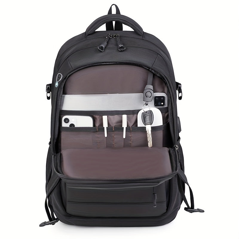 Men's Stylish Black Backpack - Multifunctional Business Laptop Bag with Adjustable Straps, Travel Compartments & Mesh Bottom for Daily Commute, Outdoor Adventures & Work, Business Backpack | Stylish Backpack | Secure Compartm