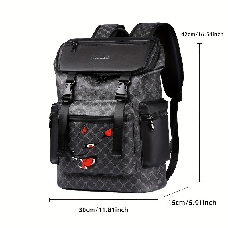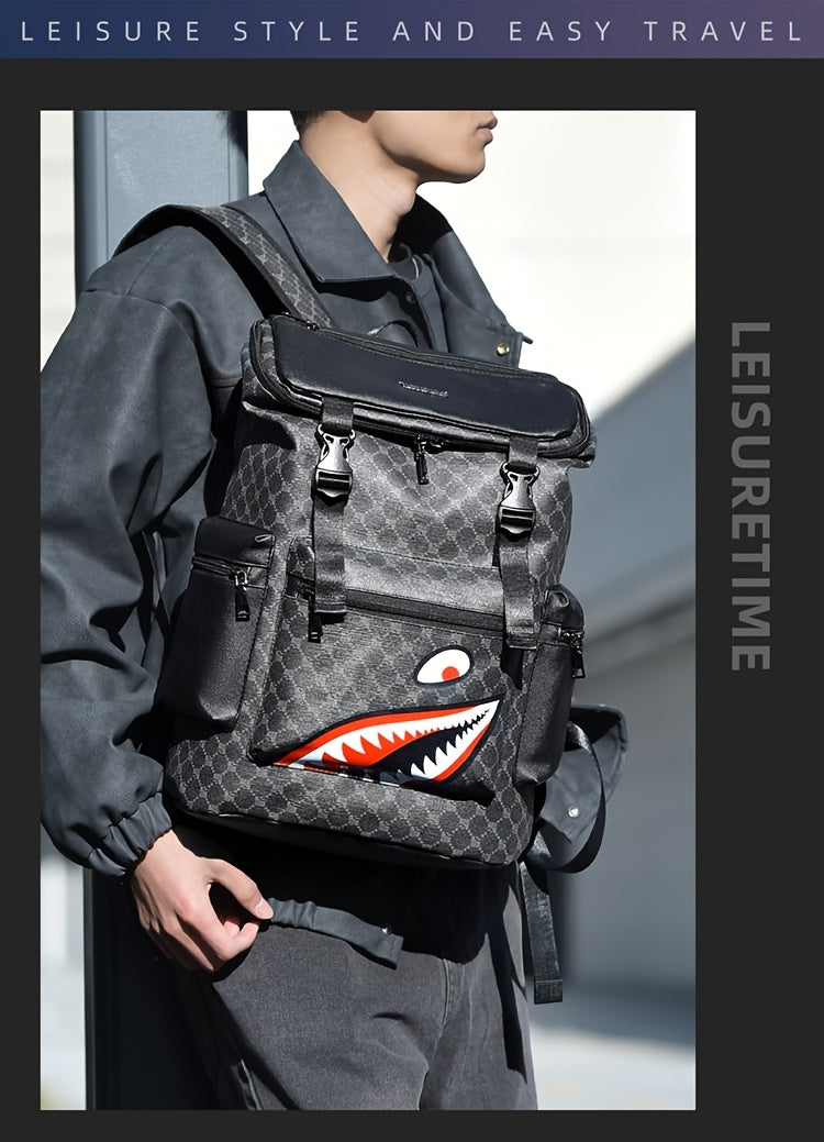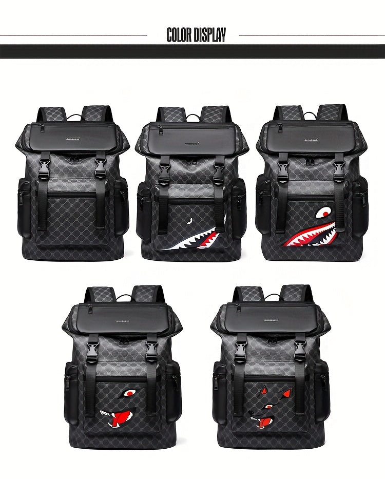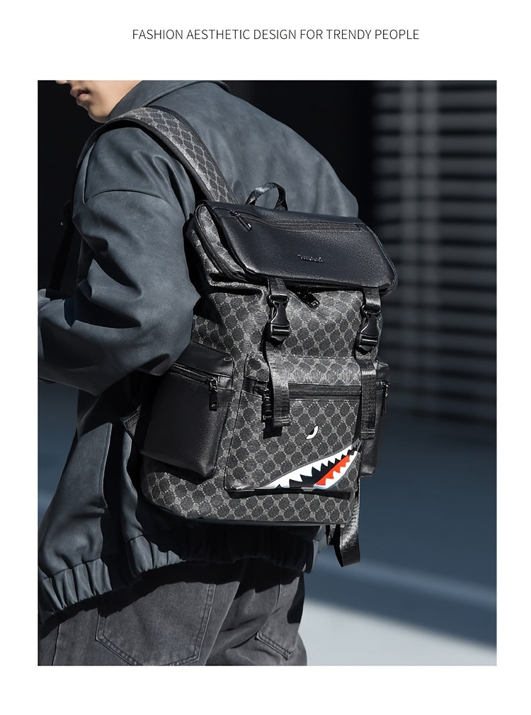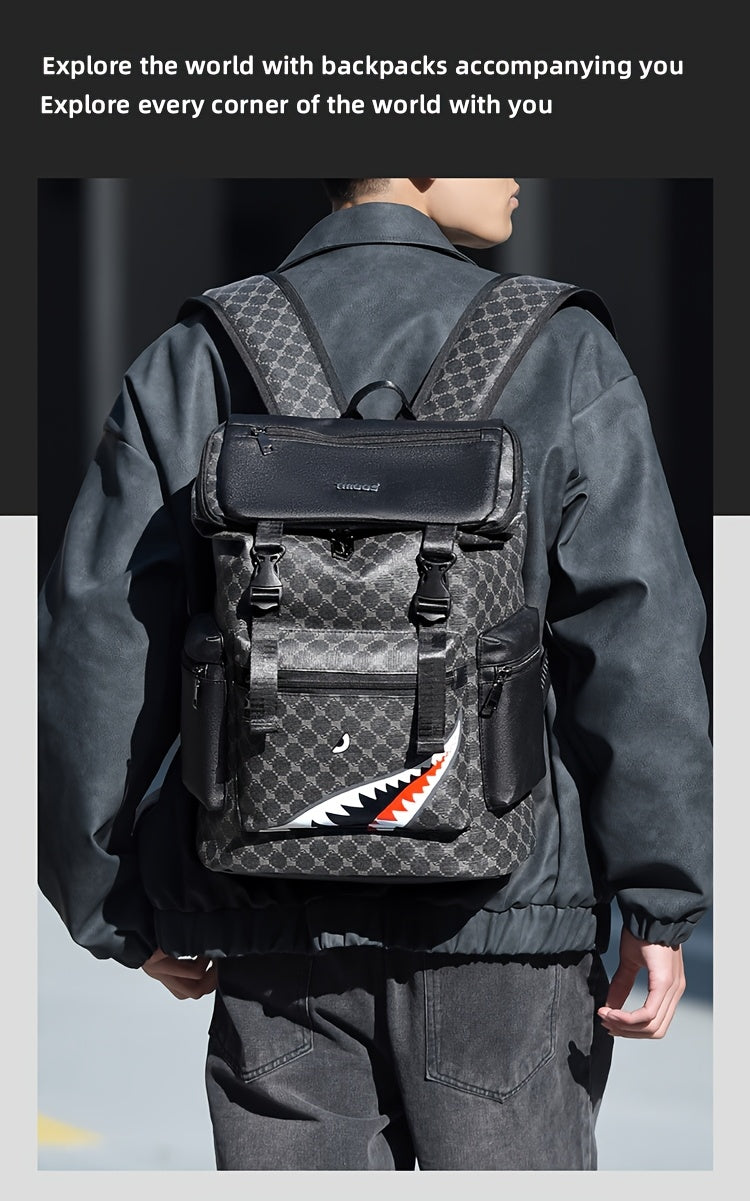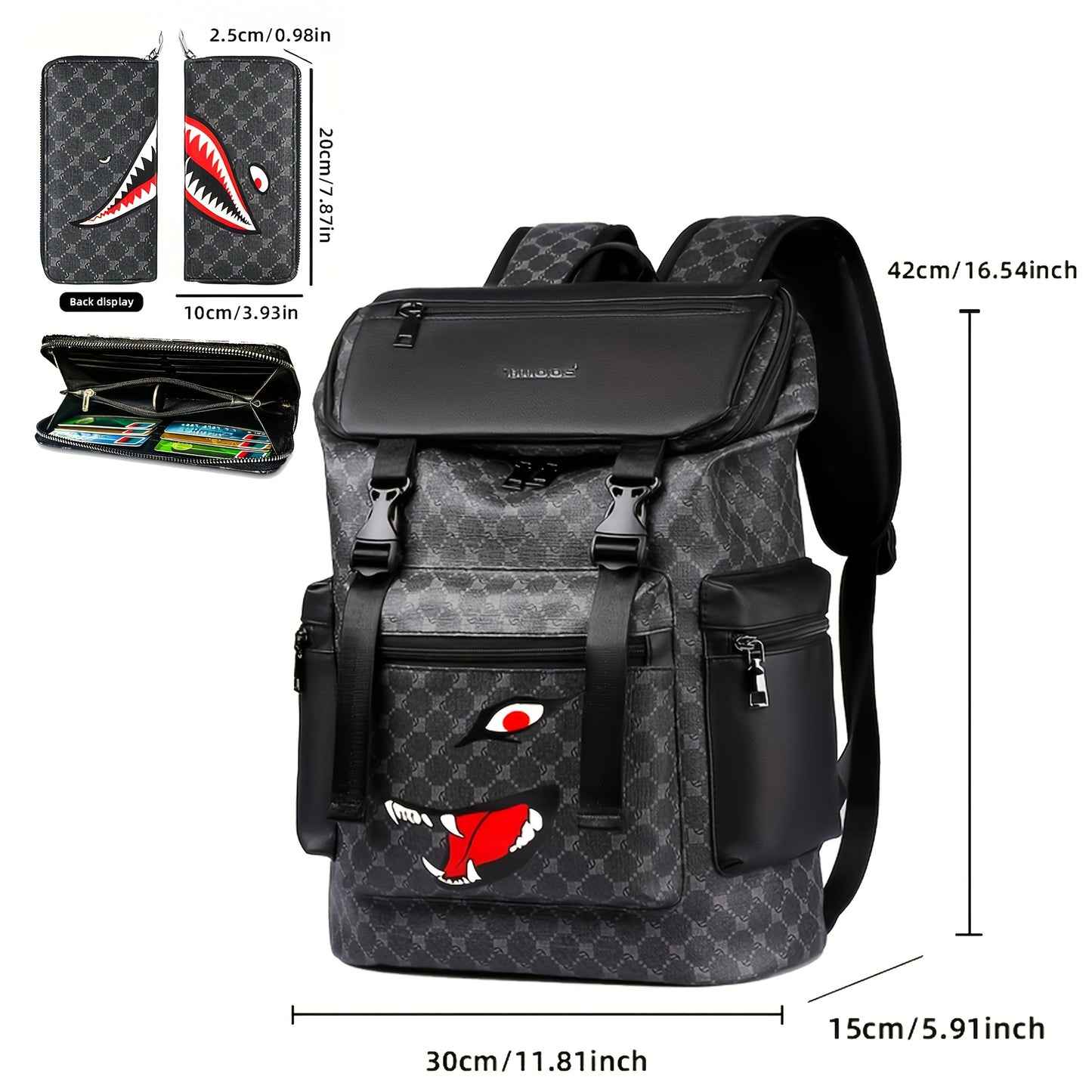 Men'S Stylish Black Backpack with Shark Graphic - Lightweight, Large Capacity, Multi-Functional Shoulder Bag for Travel, Commuting, School - Durable PVC Material, Sports & Fitness Design, Backpack for Travel