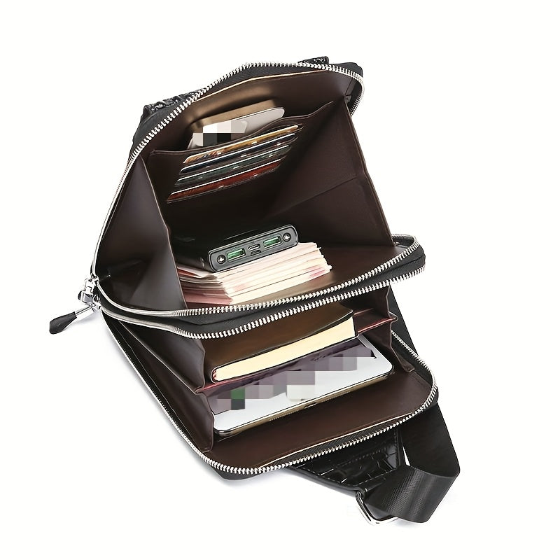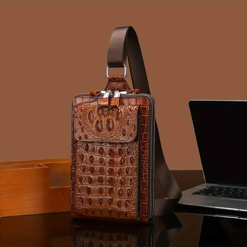 Men'S Stylish Black Crocodile Pattern Crossbody Bag - Durable, Large Capacity, Adjustable Strap, Perfect for Travel Daily Commute, Commuter Shoulder Bag Stylish Crossbody Durable Fabri