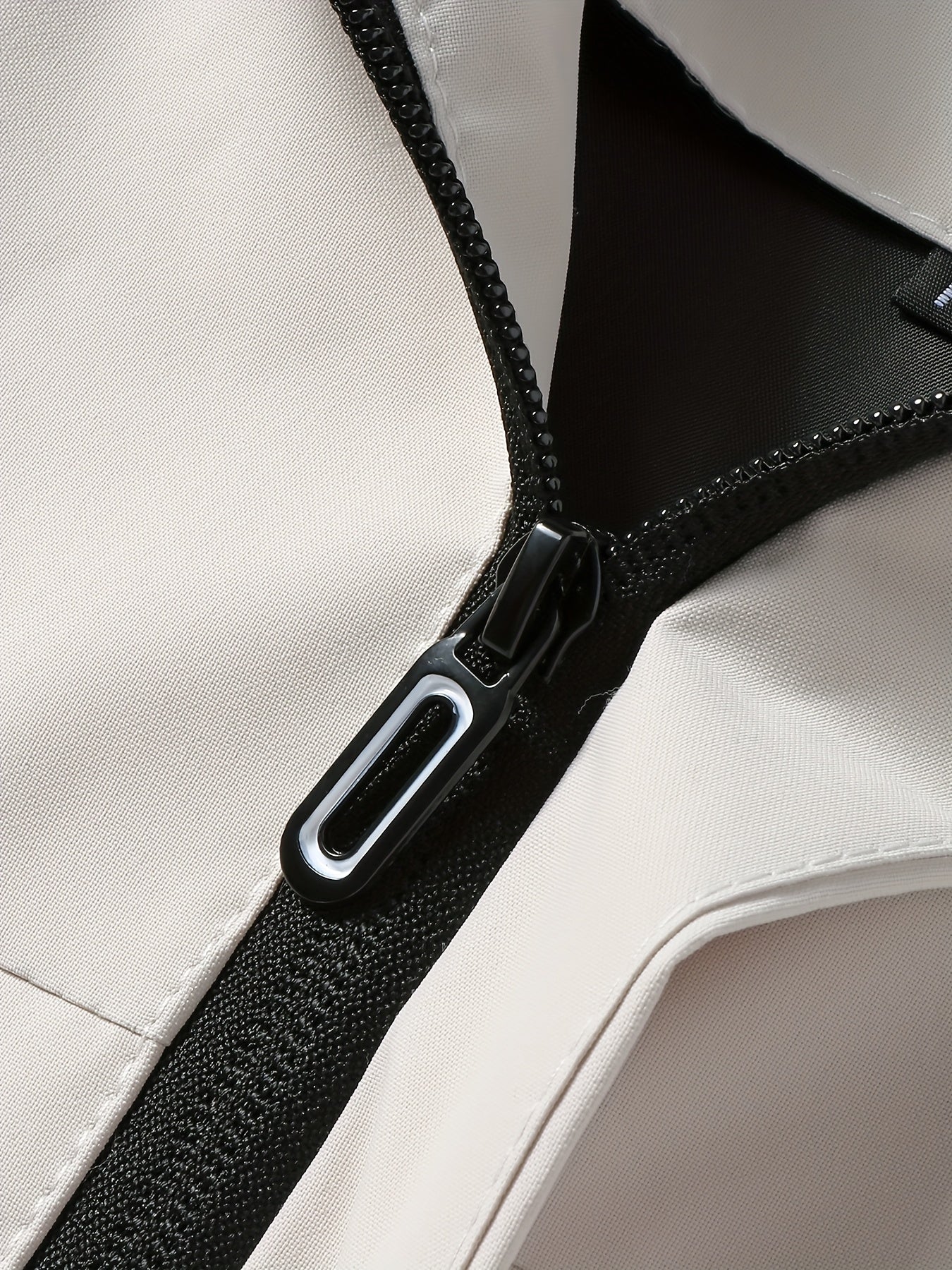 Men'S Stylish Black Hooded Windbreaker Jacket with Zipper Pockets - Casual, Loose Fit, Long Sleeve, Polyester Lining, Perfect for Spring and Fall, Casual Wear Jacket|Hooded Jacket|Zippered Jacke