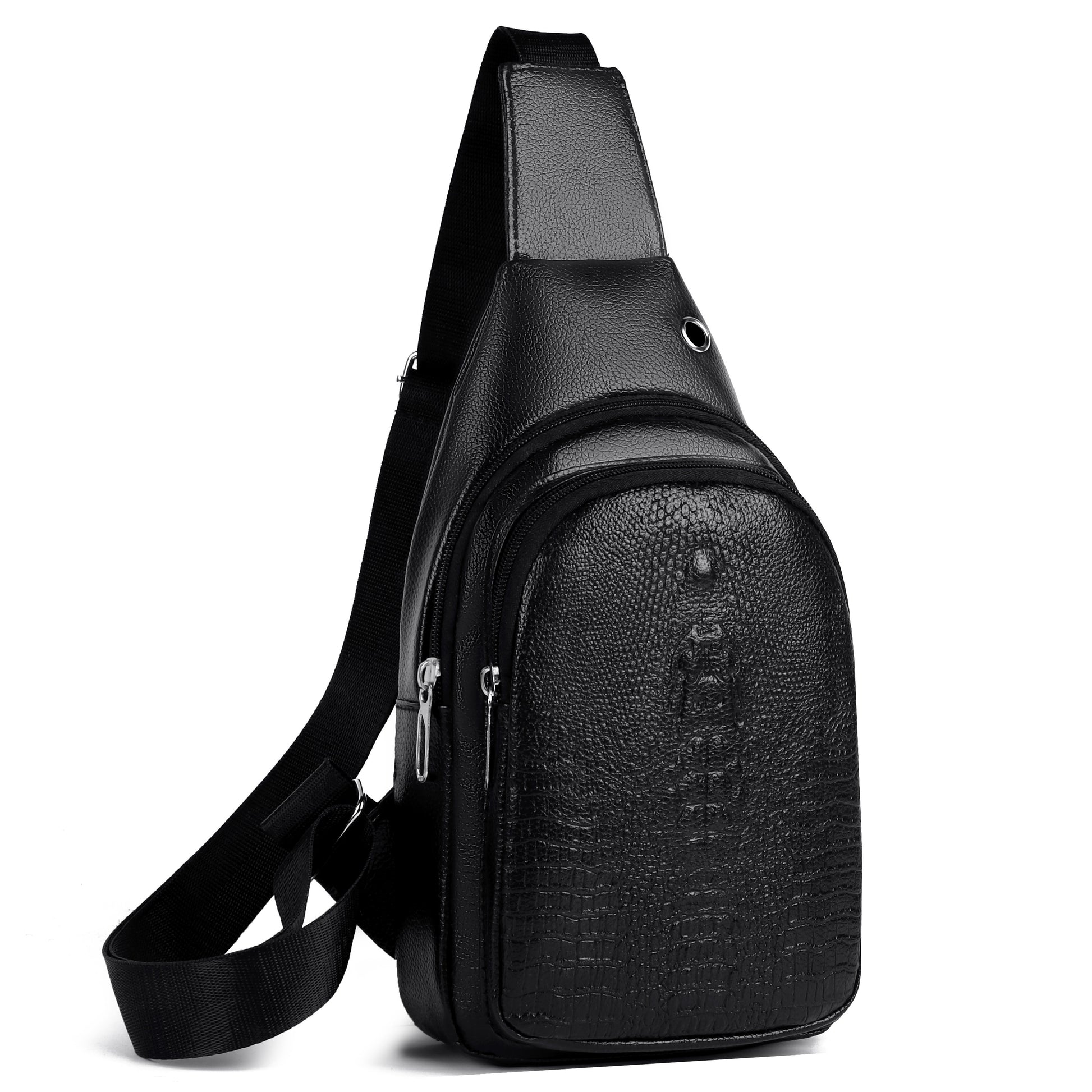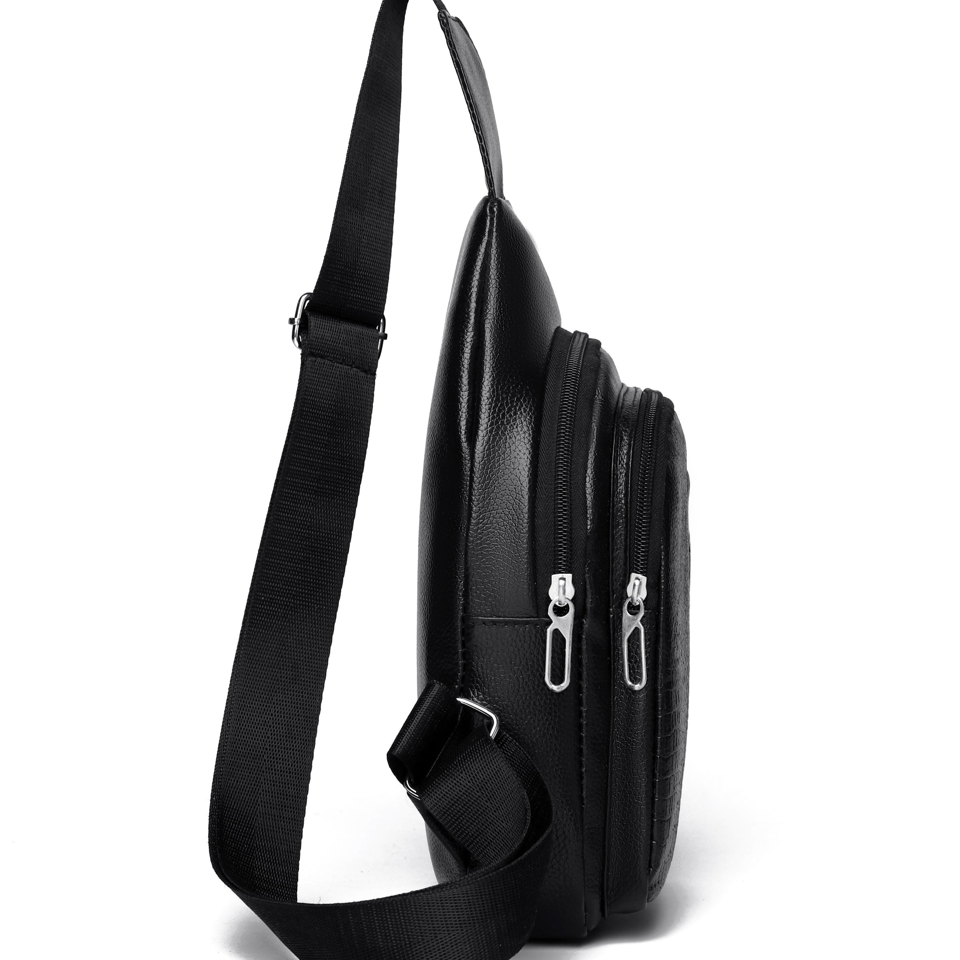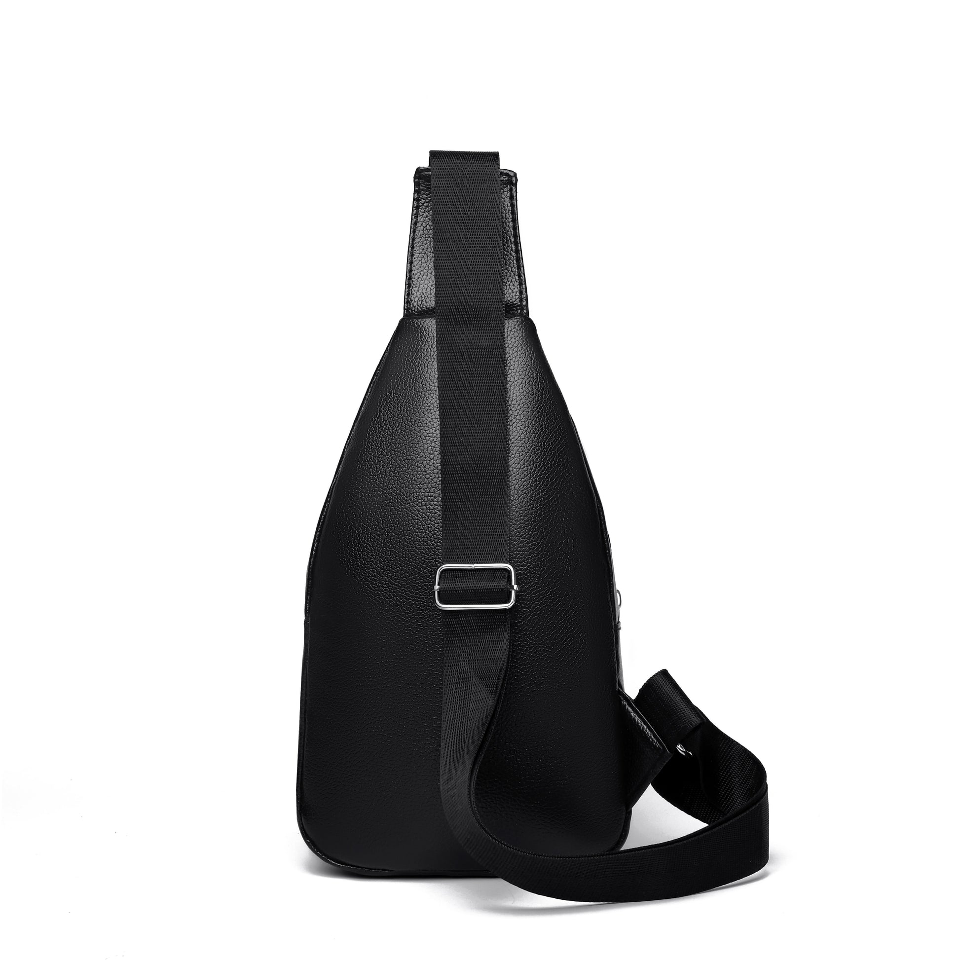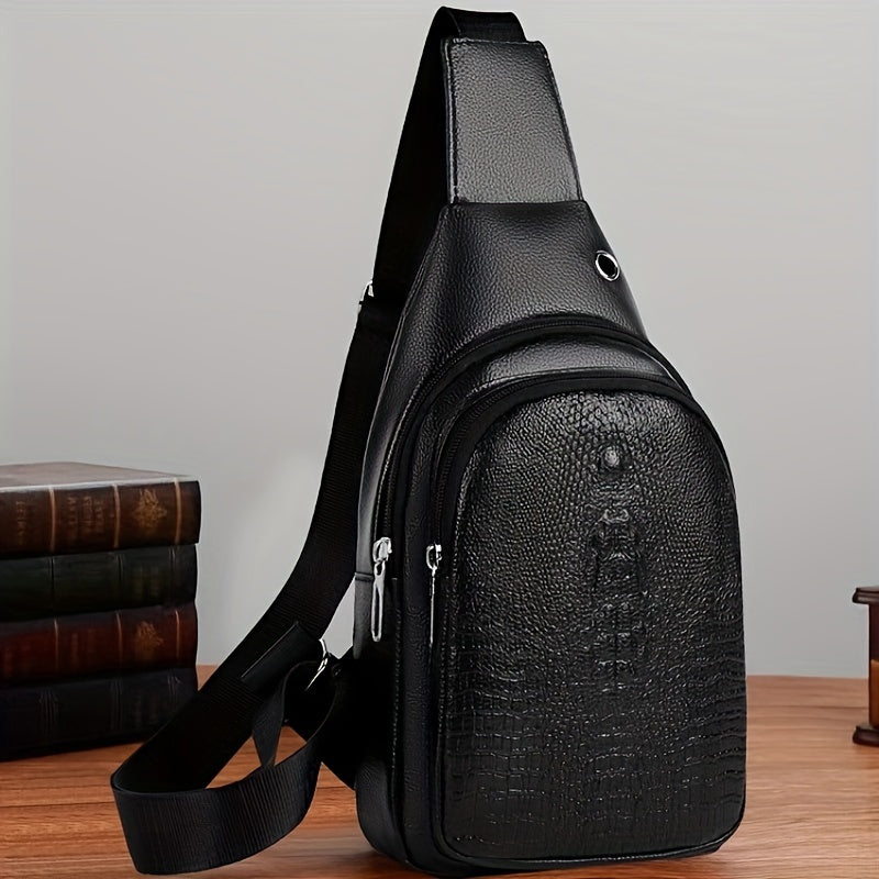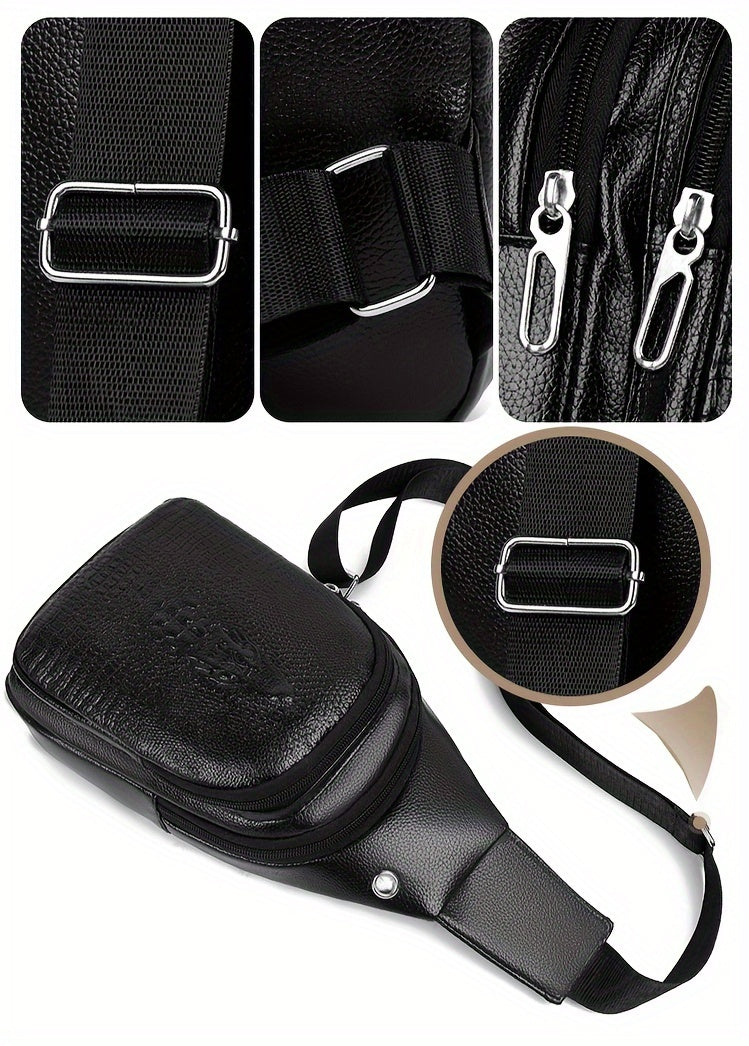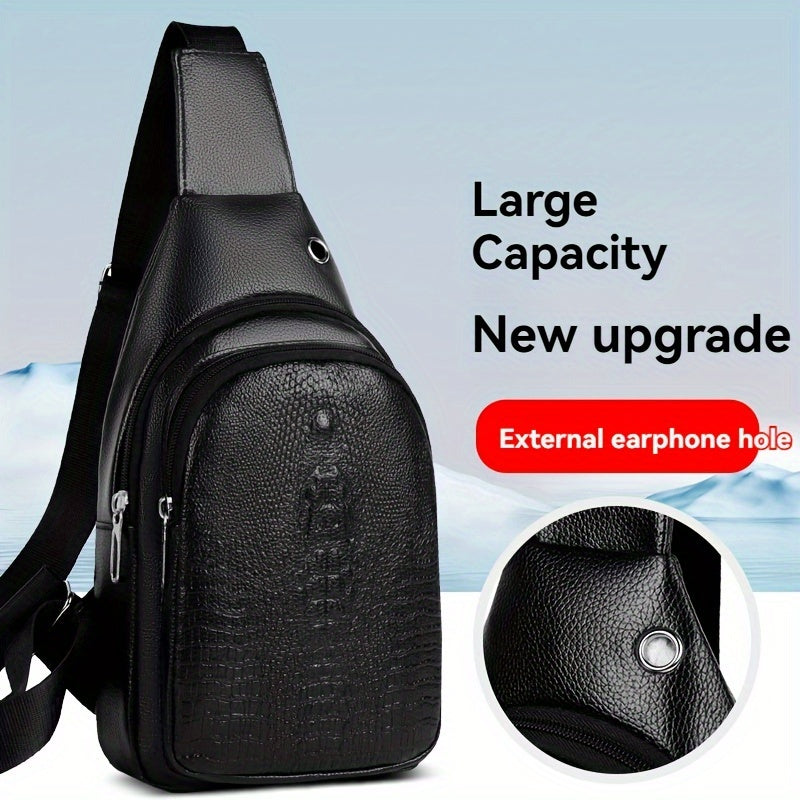 Men's Stylish Black PU Leather Sling Bag - Large Capacity Lightweight Crossbody Chest Pack with Embossed Design & External Earphone Hole for Casual Outings, Crossbody Bag