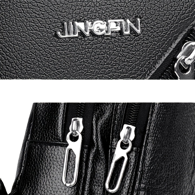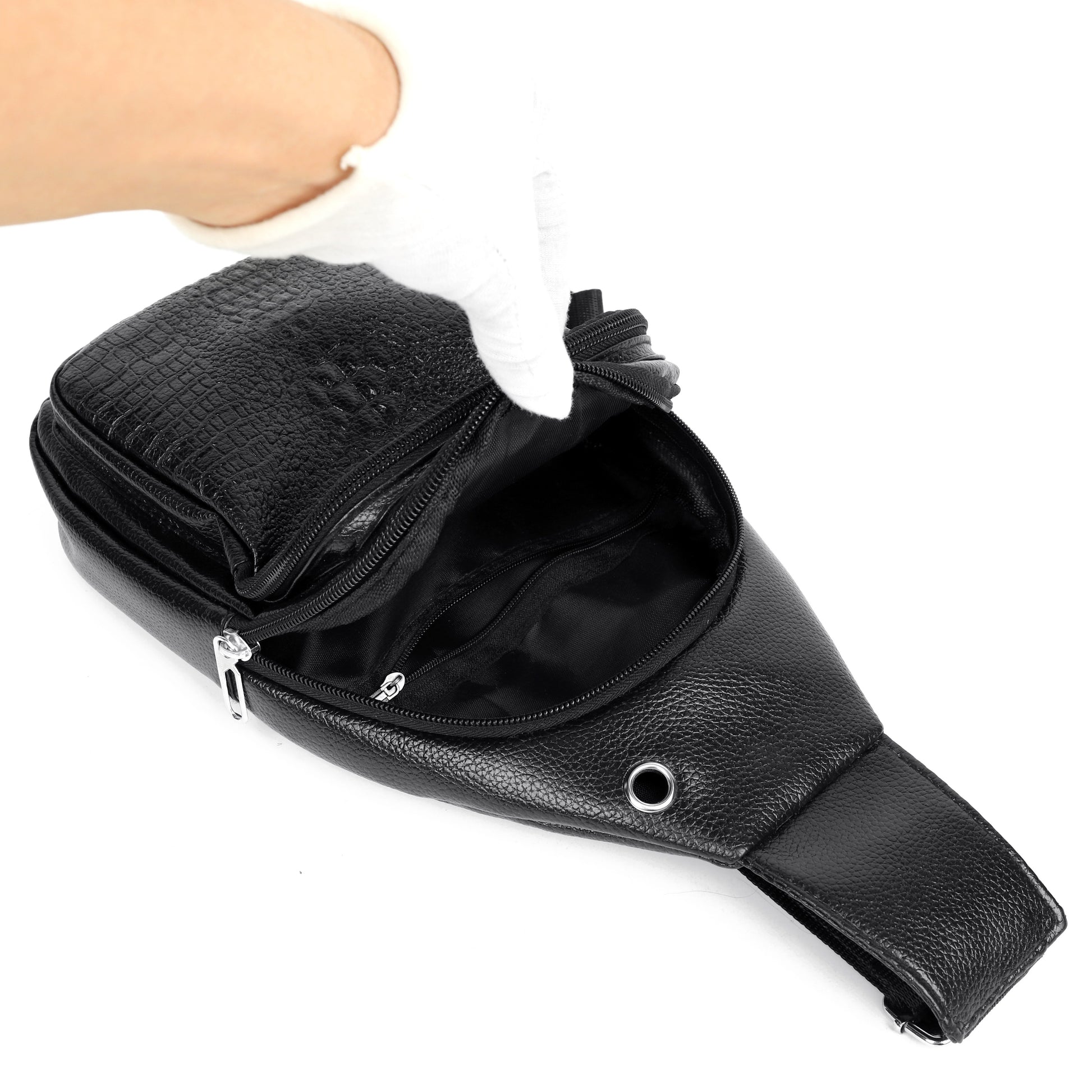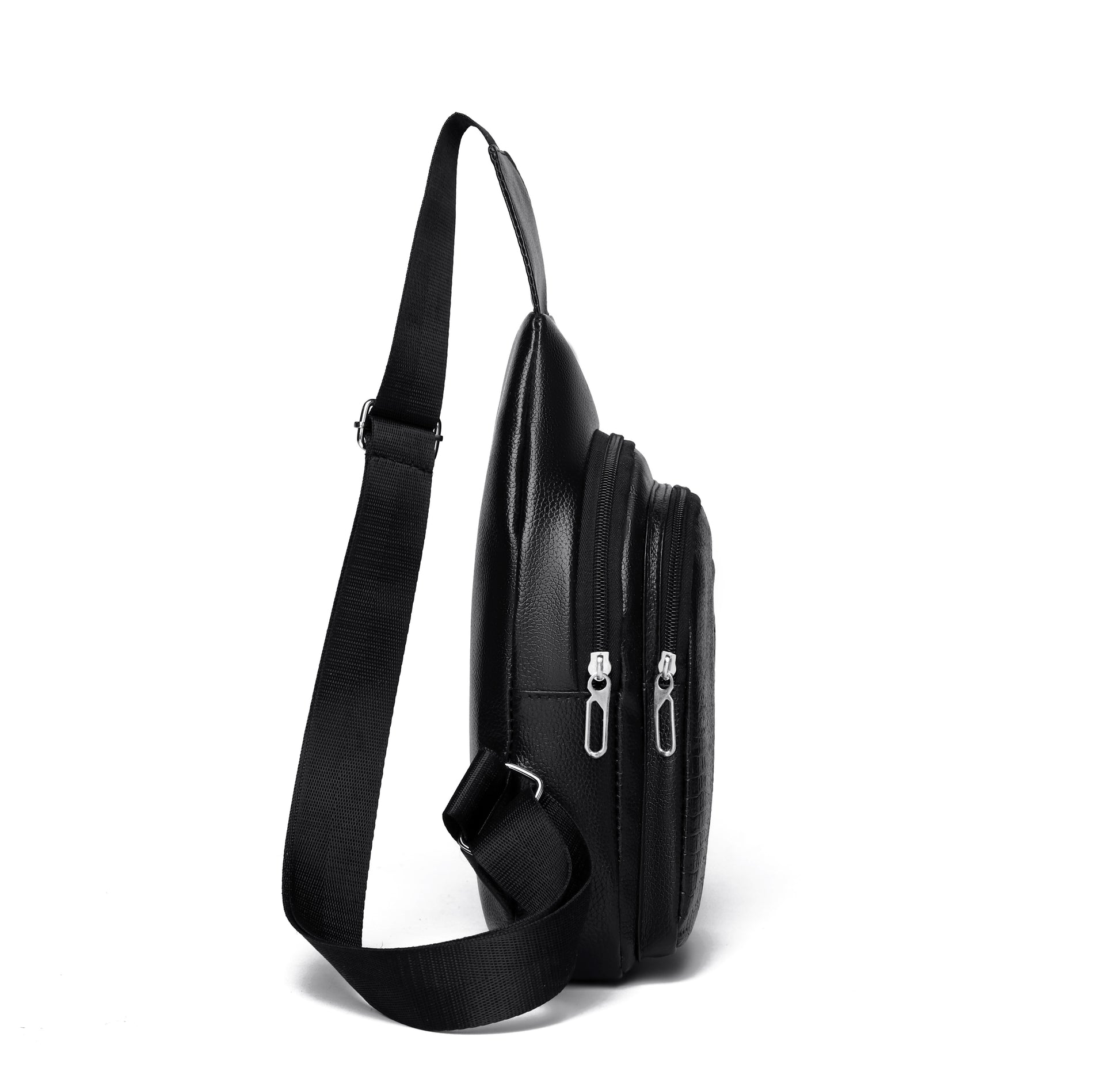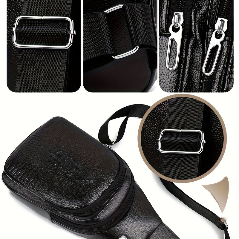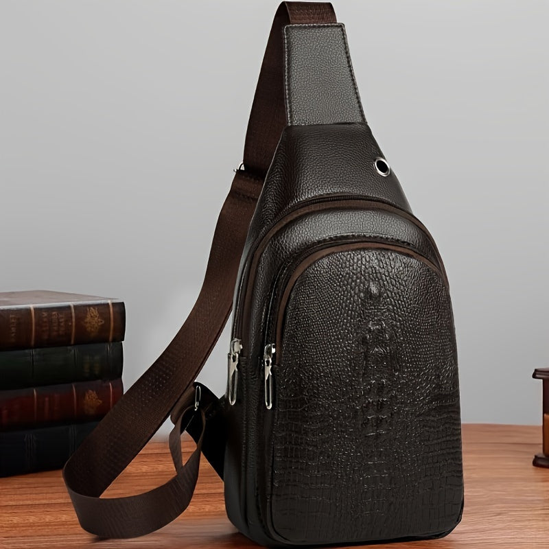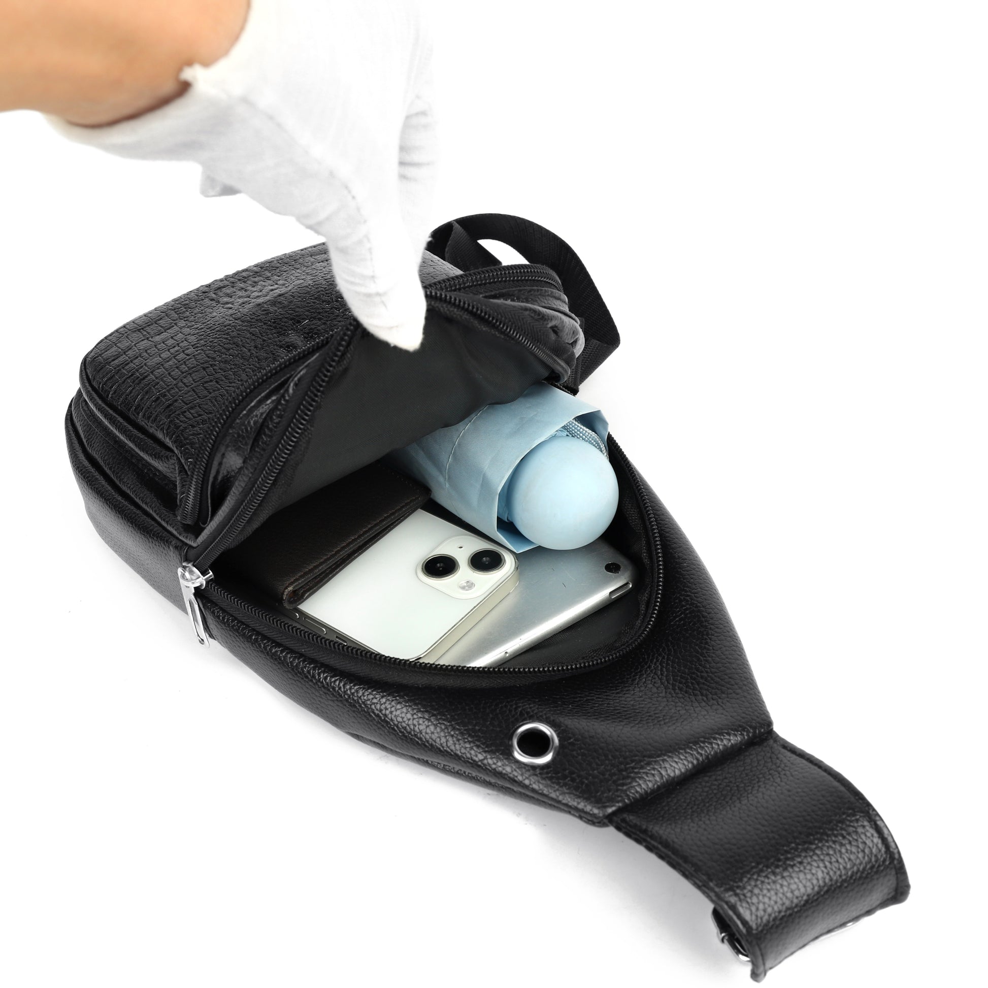Men's Stylish Black PU Leather Sling Bag - Large Capacity Lightweight Crossbody Chest Pack with Embossed Design & External Earphone Hole for Casual Outings, Crossbody Bag