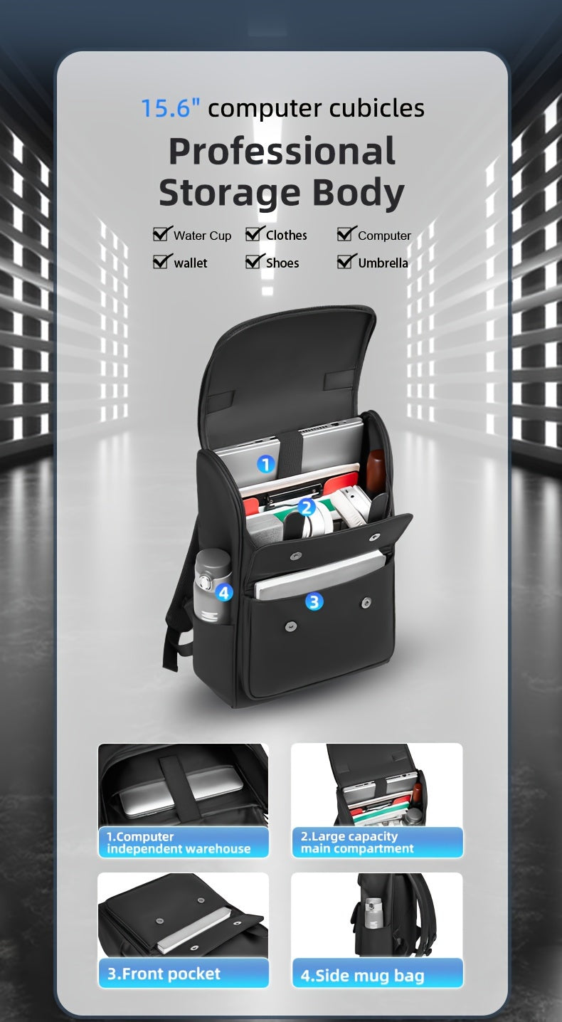 Men'S Stylish Large Capacity Commuter Backpack - Black Oxford Fabric, Durable with Multiple Compartments and Adjustable Straps, Ideal for Office, Student, University, School, Travel, Commute, Travel Backpack Casual Style Ba
