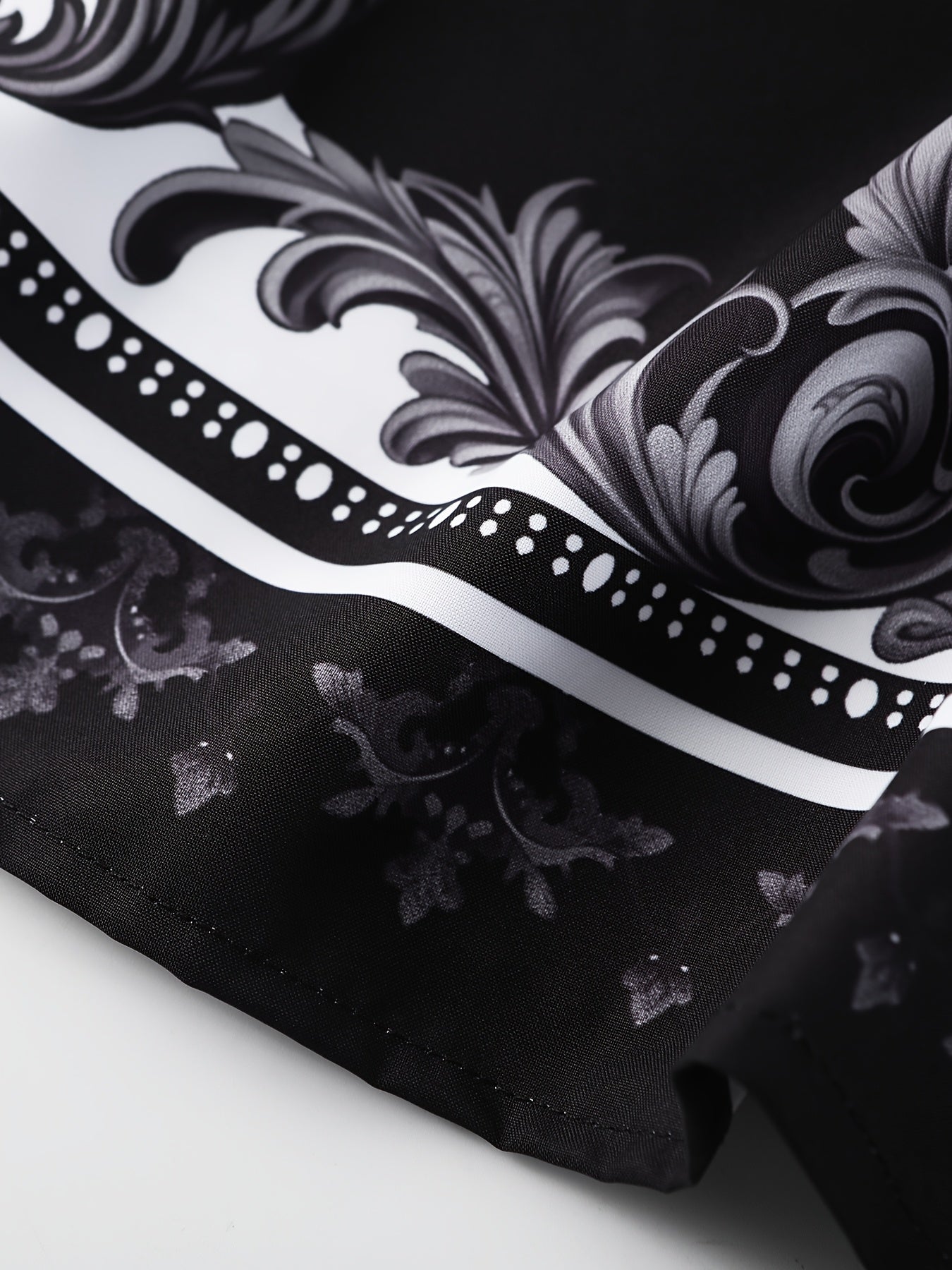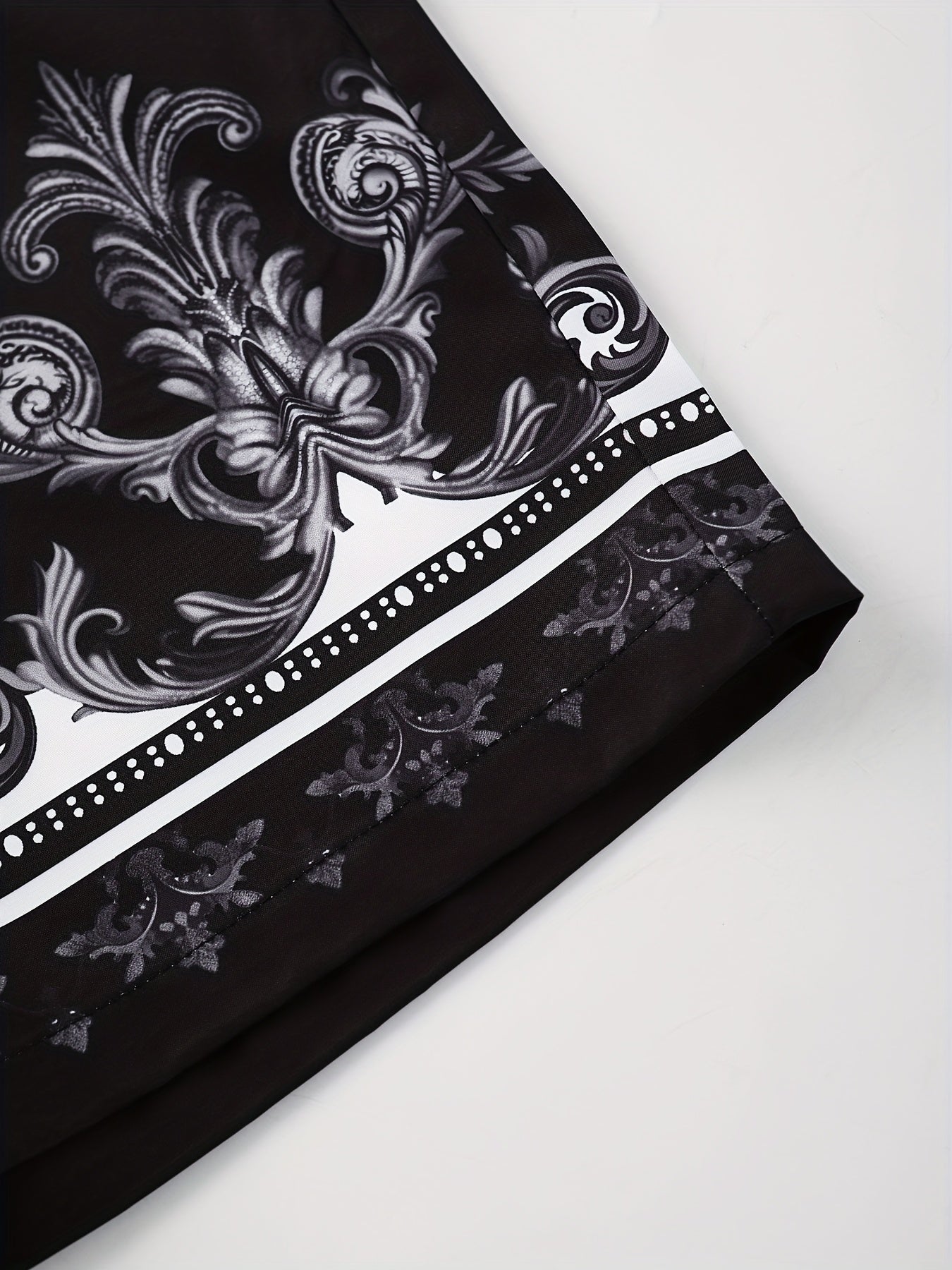 Men'S Suit with a Baroque Print Short-Sleeve Button-Up Shirt And Drawstring Side Pocket Shorts, Two-Piece Loungewear Set.