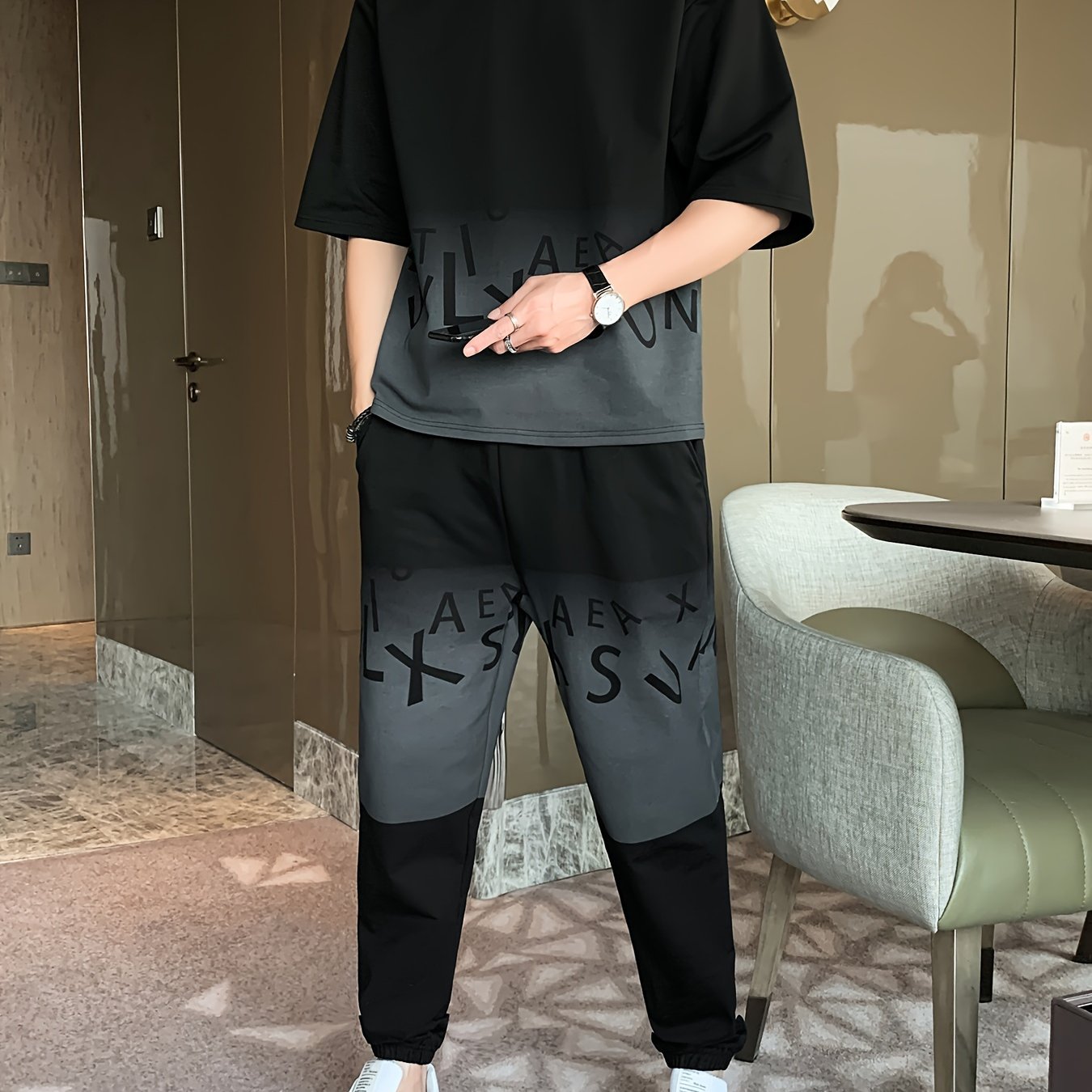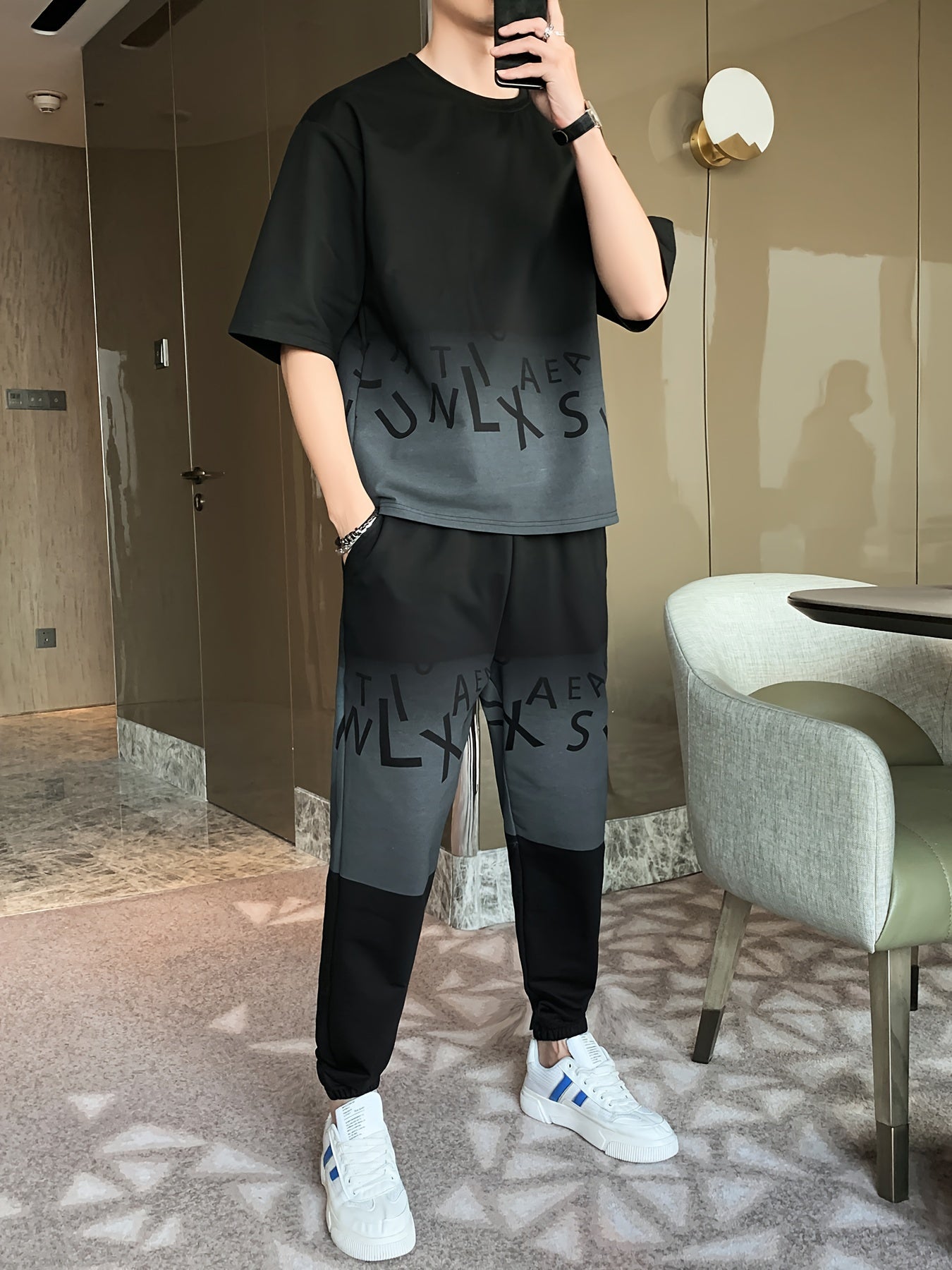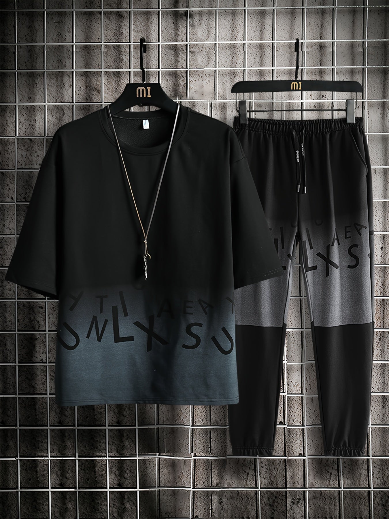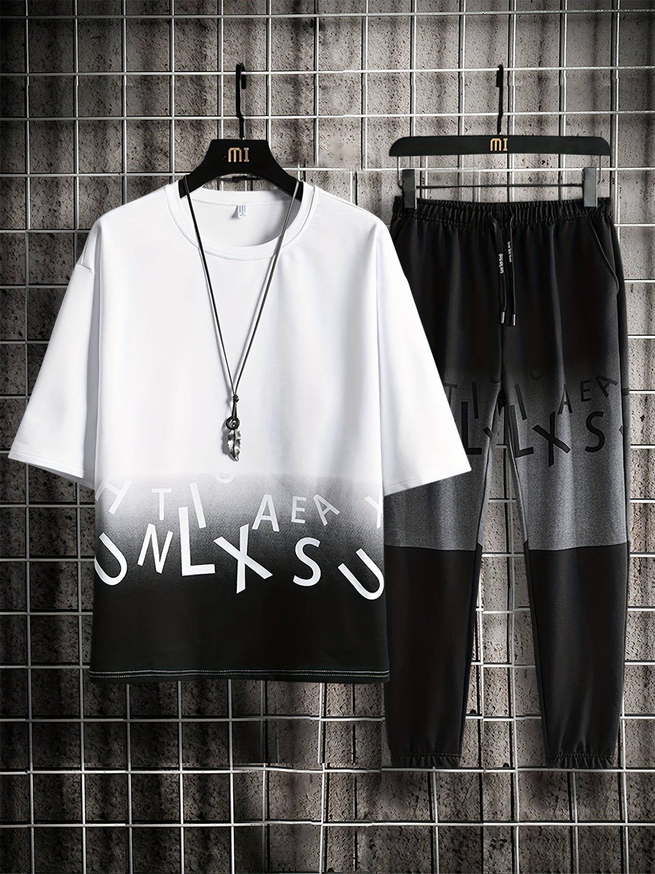 Men's Summer Casual Cotton Blend Outfit Set - Gradient Color Short Sleeve T-Shirt & Stylish Drawstring Shorts, Machine Washable