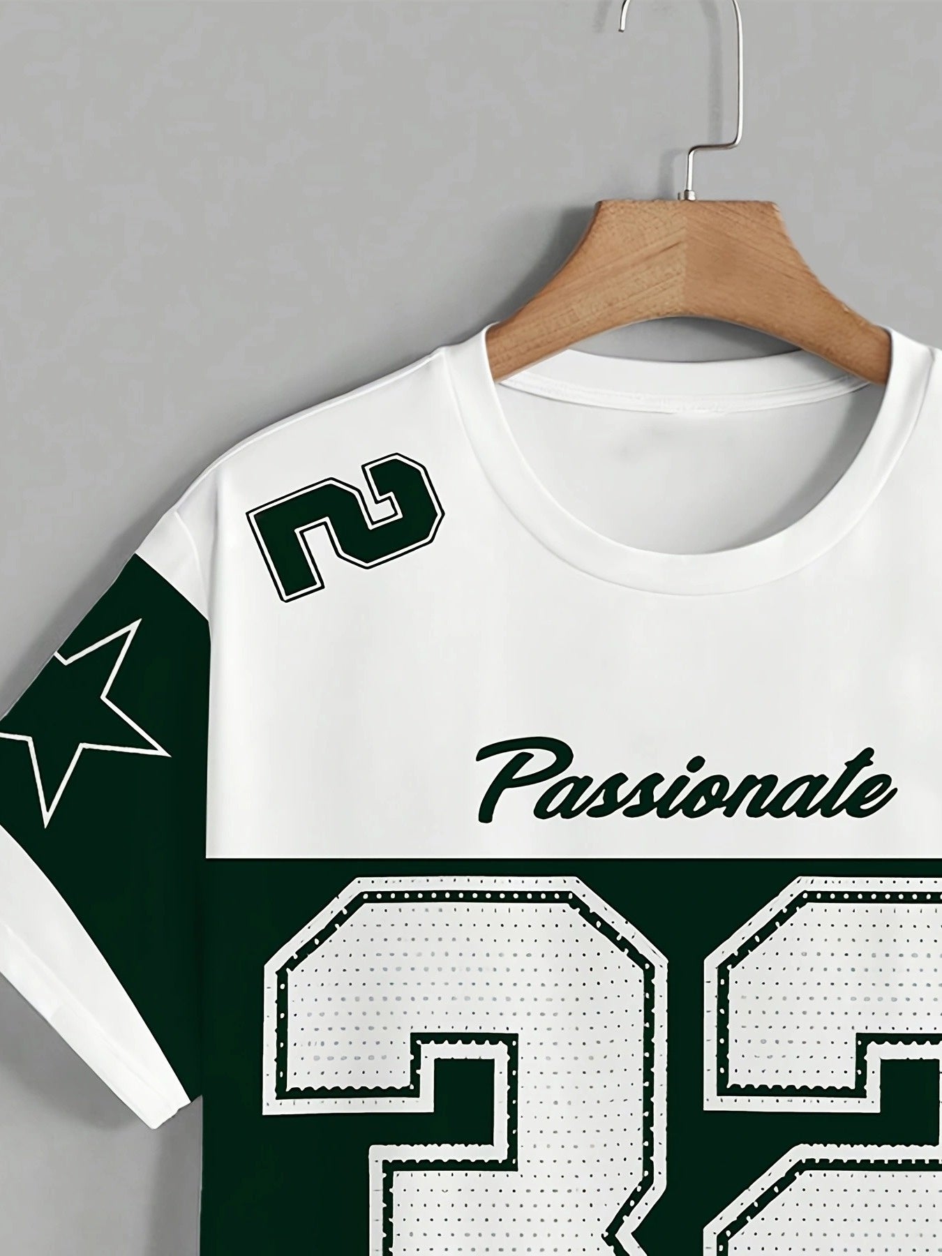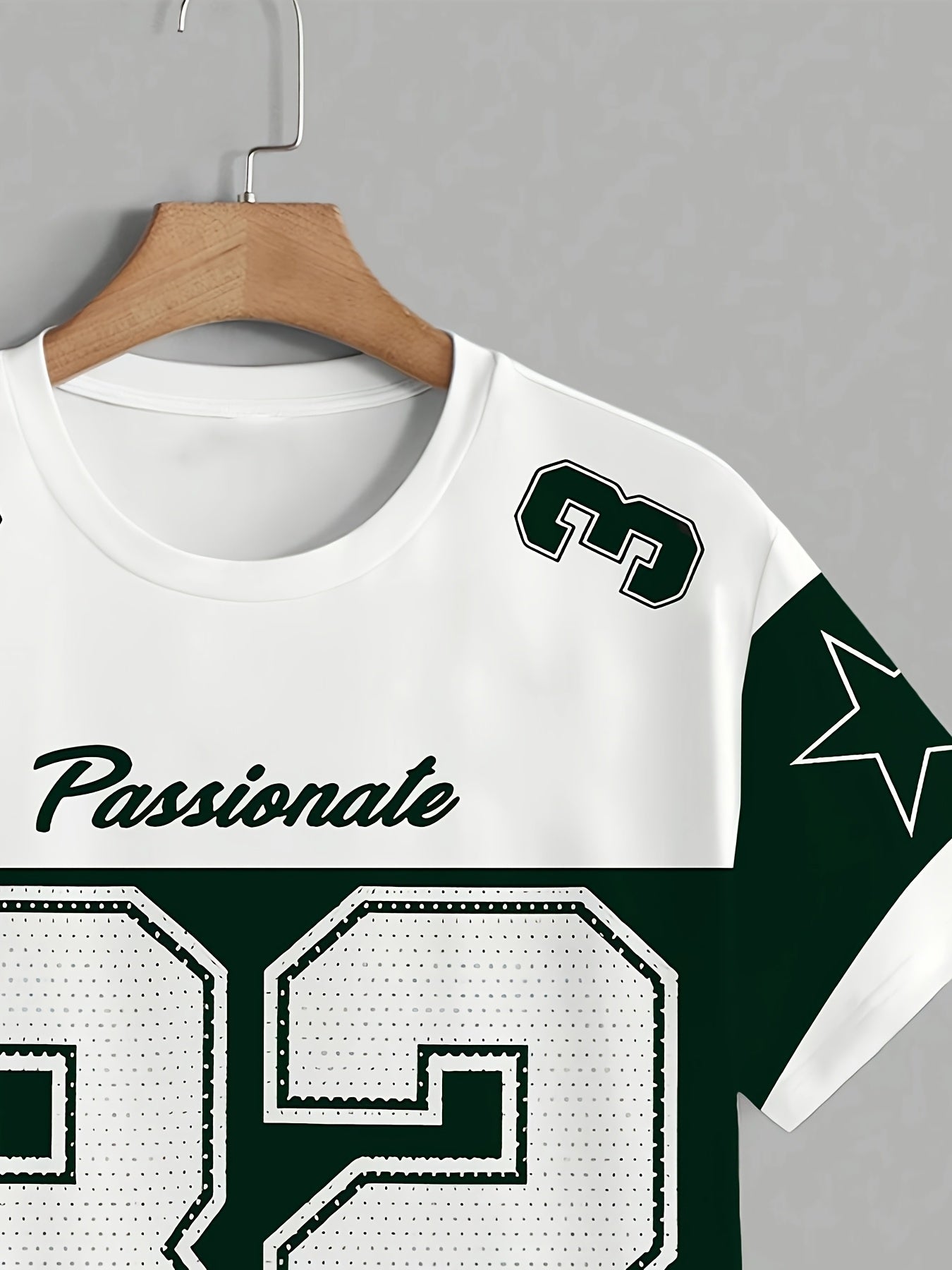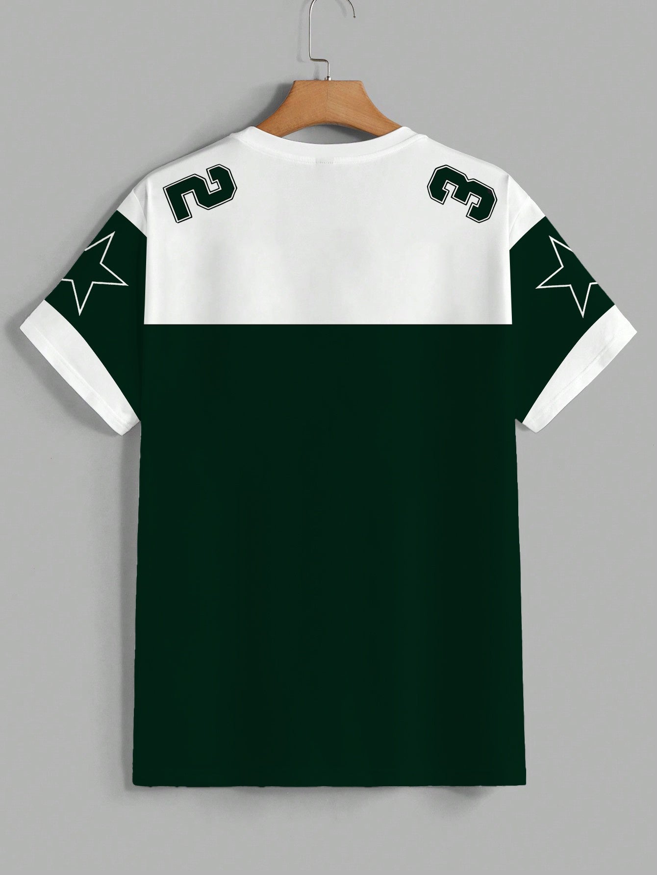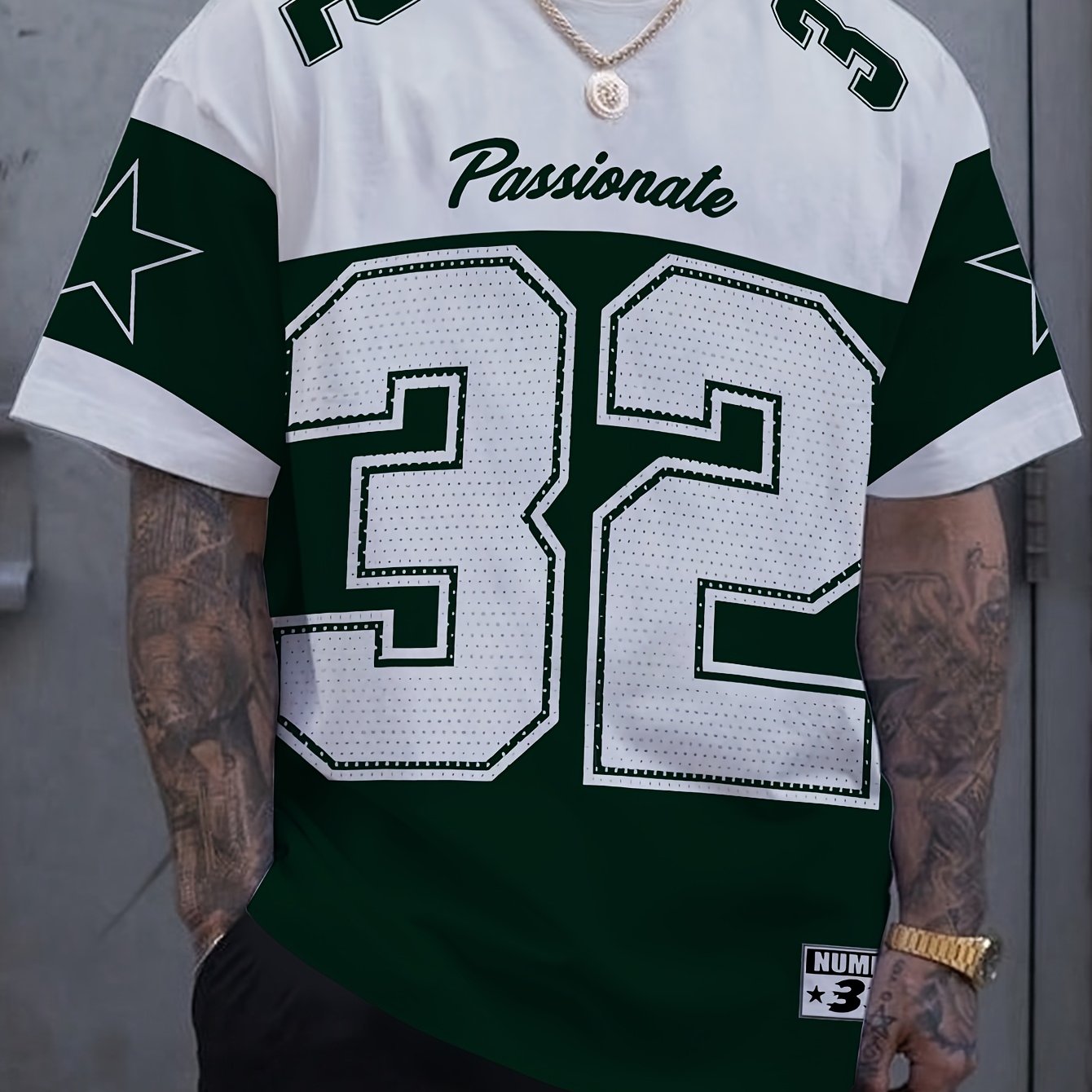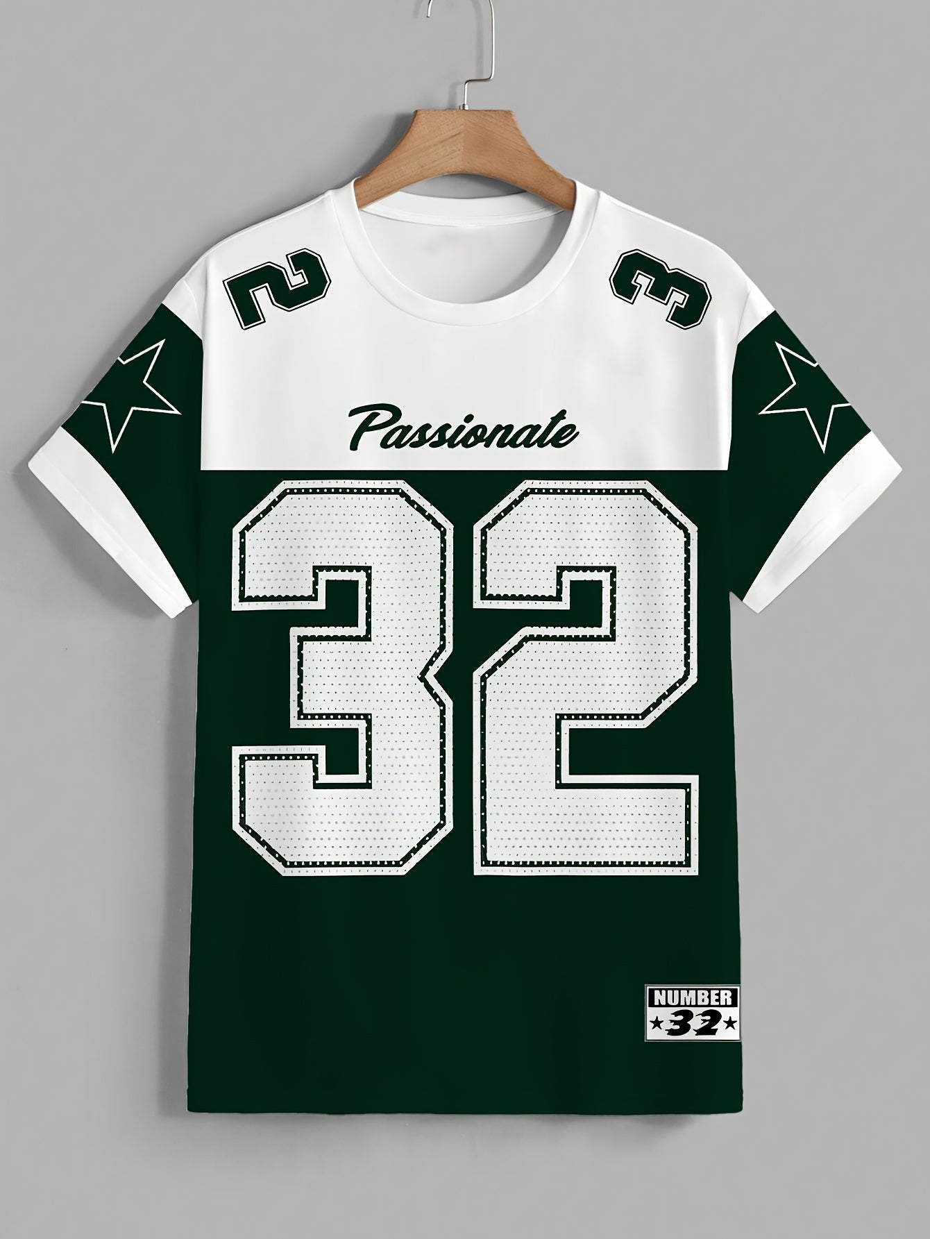 Men'S Summer Casual Crew Neck T-Shirt - Short Sleeve, Print Number 32 Design, White Black Contrast, Regular Fit Casual Top for Casual Attire, Leisure Clothing Contrast Color Top Comfortable Fit