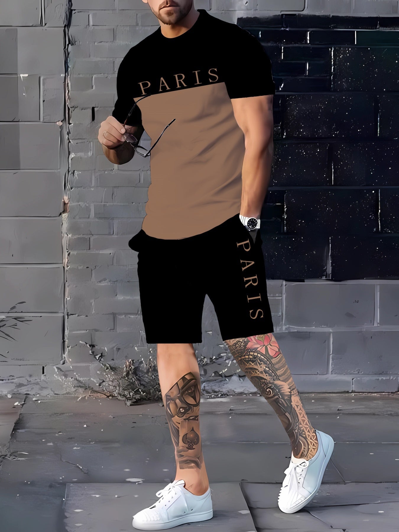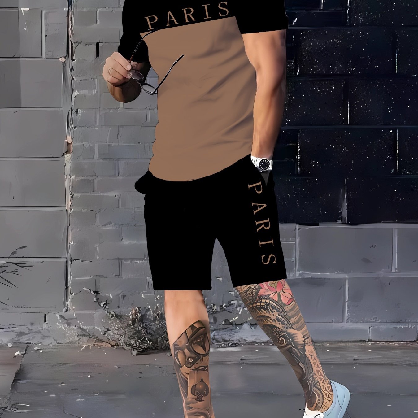 Men's Summer Casual Sportswear Set, Breathable 3D Print Crew Neck T-Shirt and Shorts, Polyester Knit Fabric, Slight Stretch, Regular Fit, Outdoor Leisure Wear