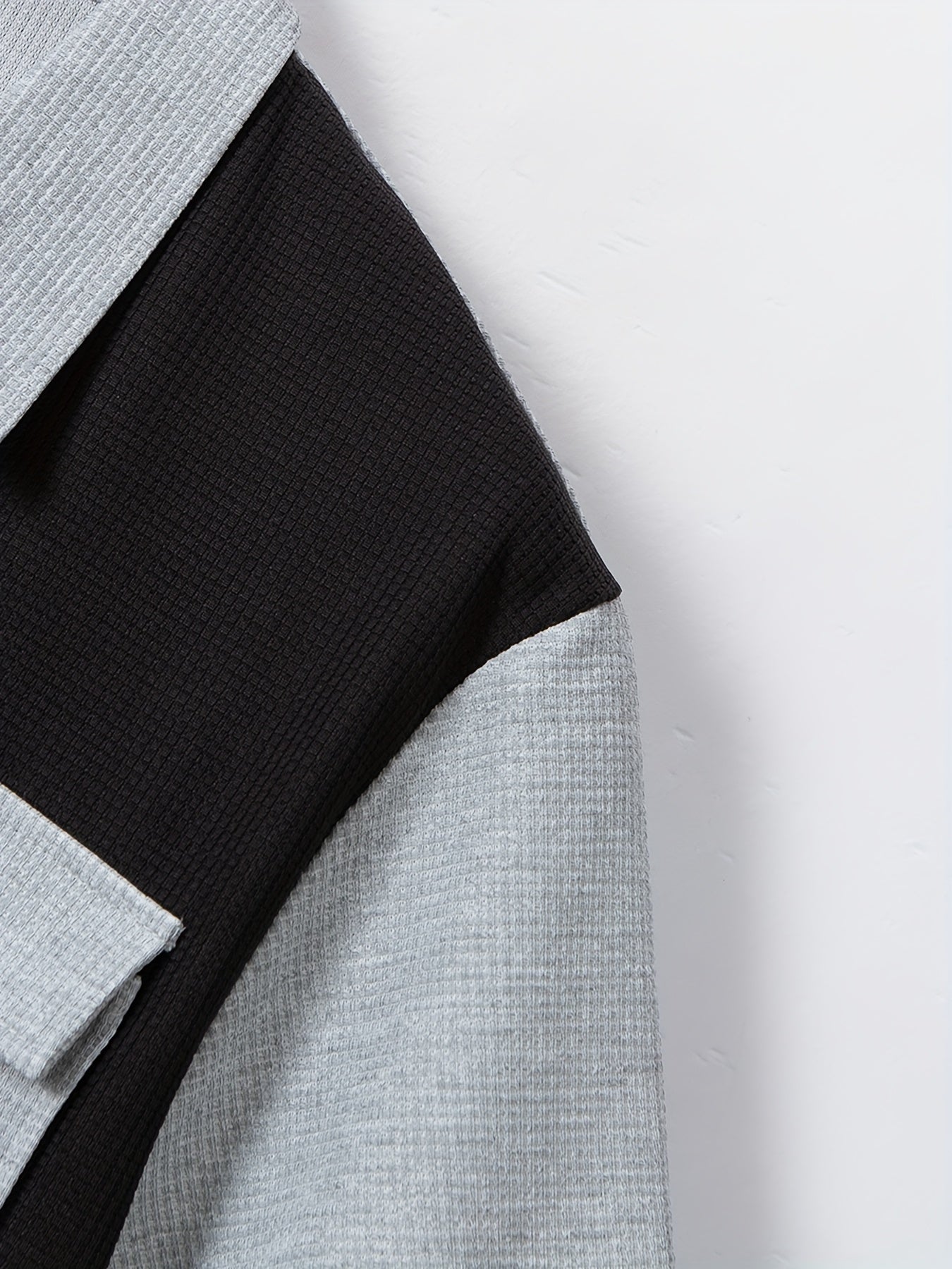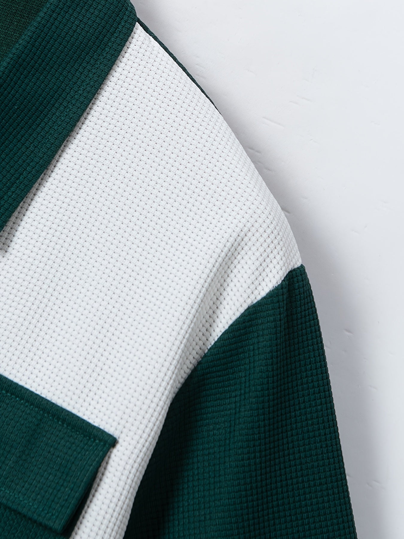 Men's Summer Two-Piece Set, Waffle Fabric Contrast Color with Pockets Short-Sleeved Shirt + Casual Trousers Suit, Leisure Light Business Vacation Daily Multiple Scenes