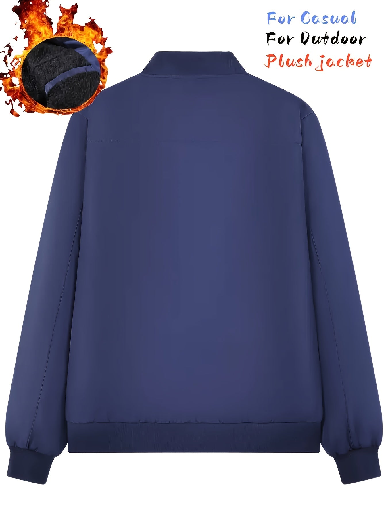 Men's Thermal Bomber Jacket - Heavyweight Winter Coat with Zippered Pocket, Casual Black Jacket, Polyester Outerwear for Men, Ideal for Aviation & Everyday Use, Casual Jacket For Men, Lightweight Jacket For Men, Winter Clothe