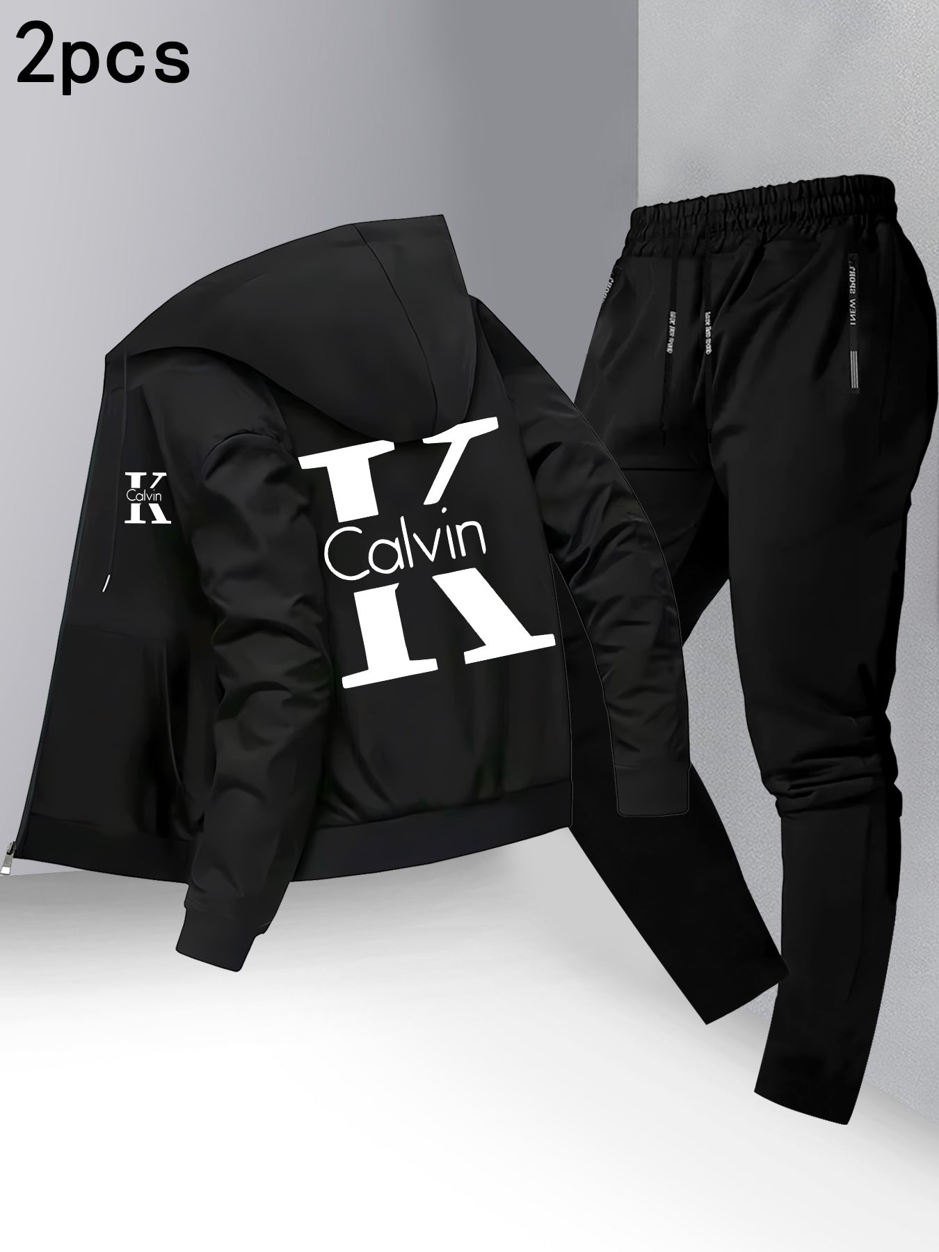 Men's Trendy Autumn/Winter Hooded Jacket and Shirt Two-Piece Set with CK Print, Casual Business Outfit, Youth Leisure Baseball Uniform Stand Collar Suit