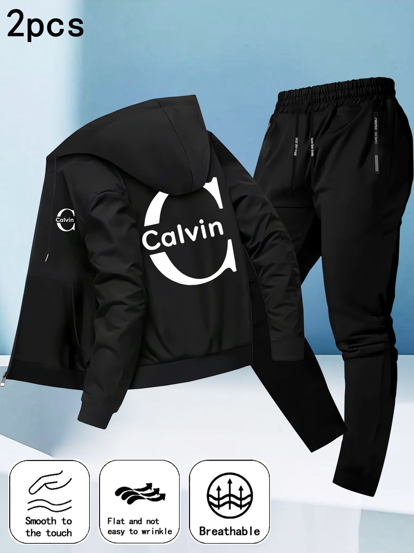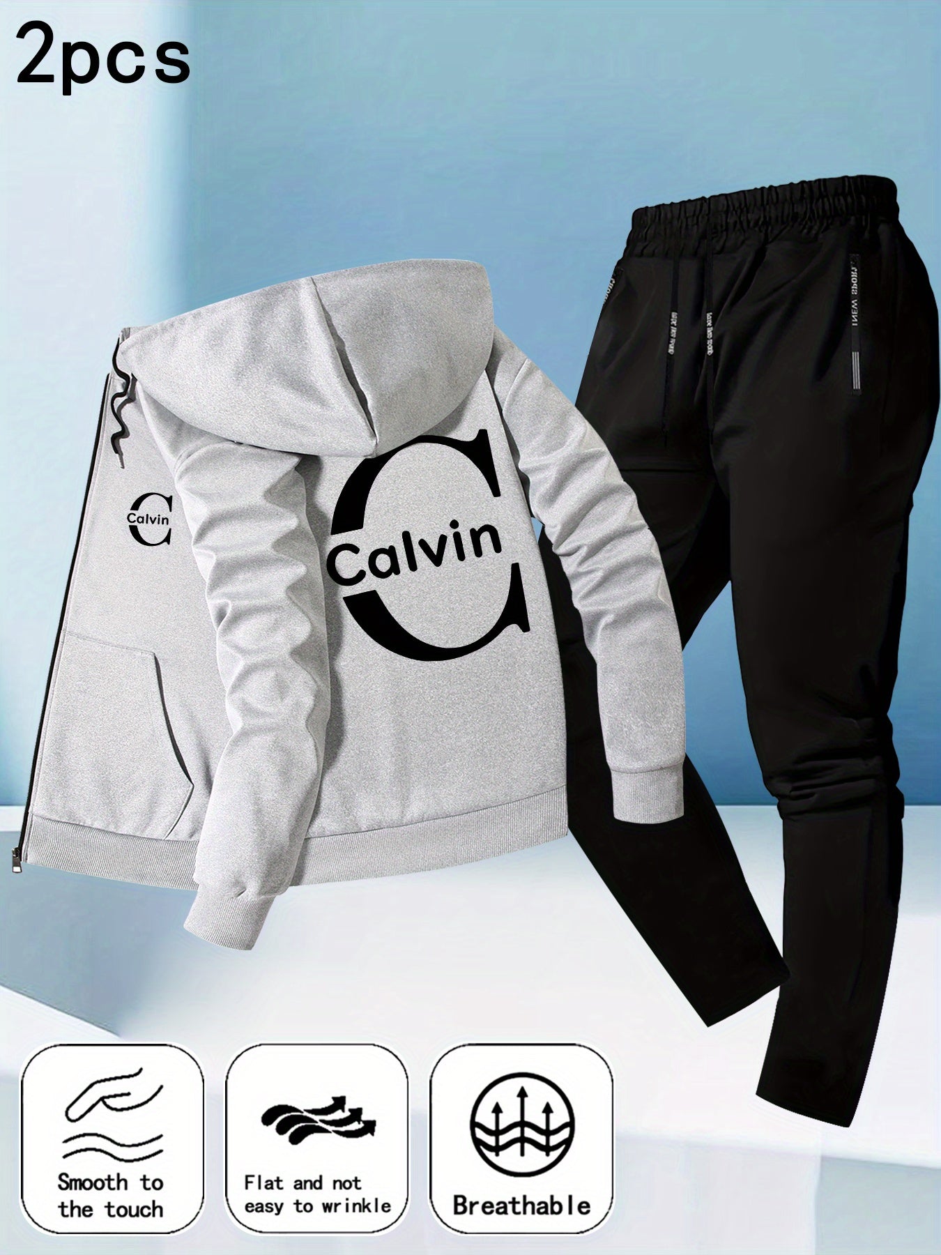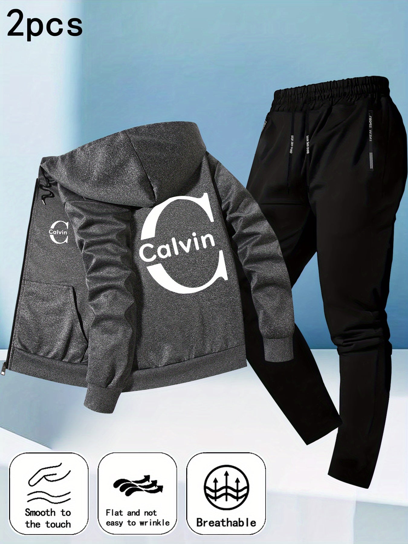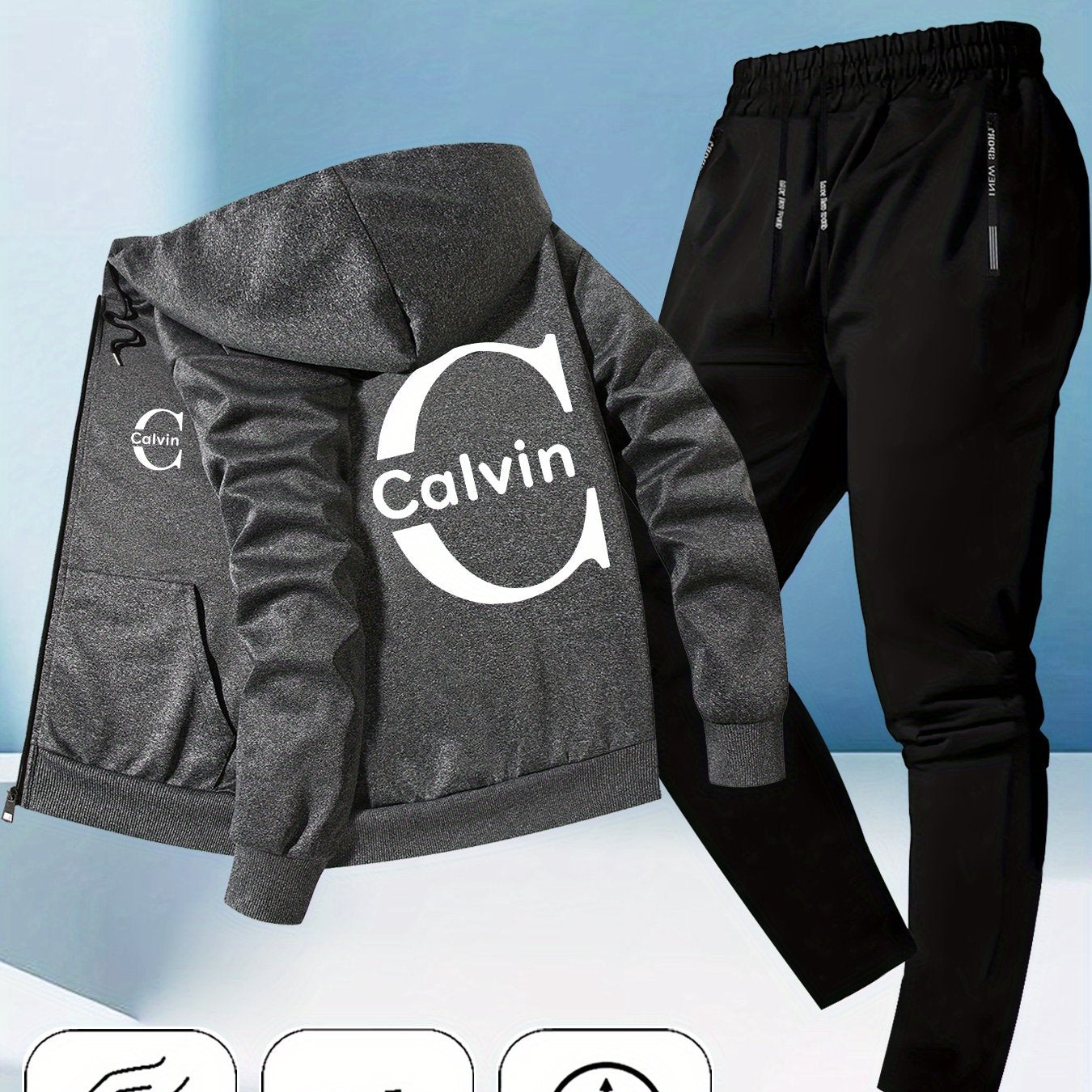Men's Trendy Autumn-Winter Hooded Jacket Set with Calvin Print, Casual Youth Sportswear Outfit