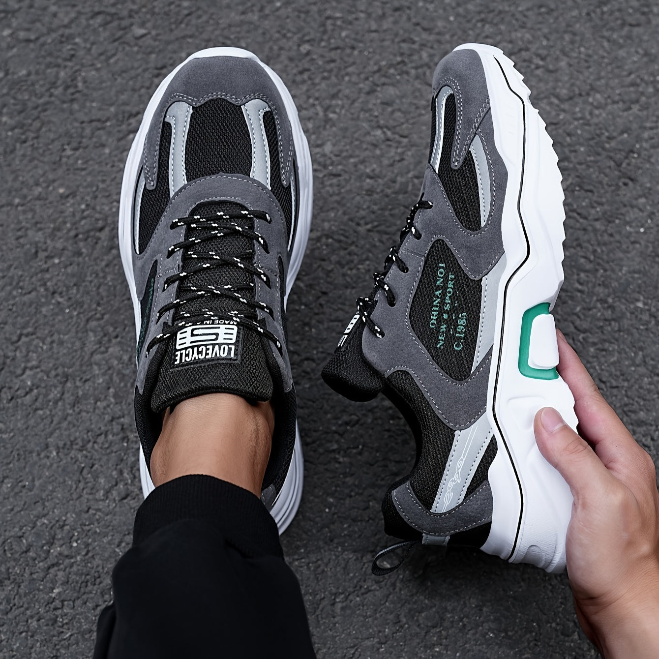 Men's Trendy Chunky Shoes, Comfy Non Slip Lace Up Casual Soft Sole Sneakers For Men's Outdoor Activities