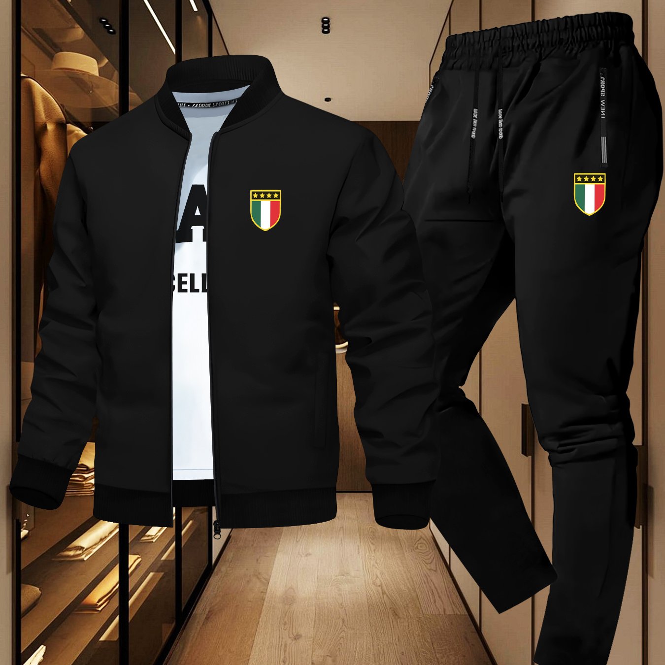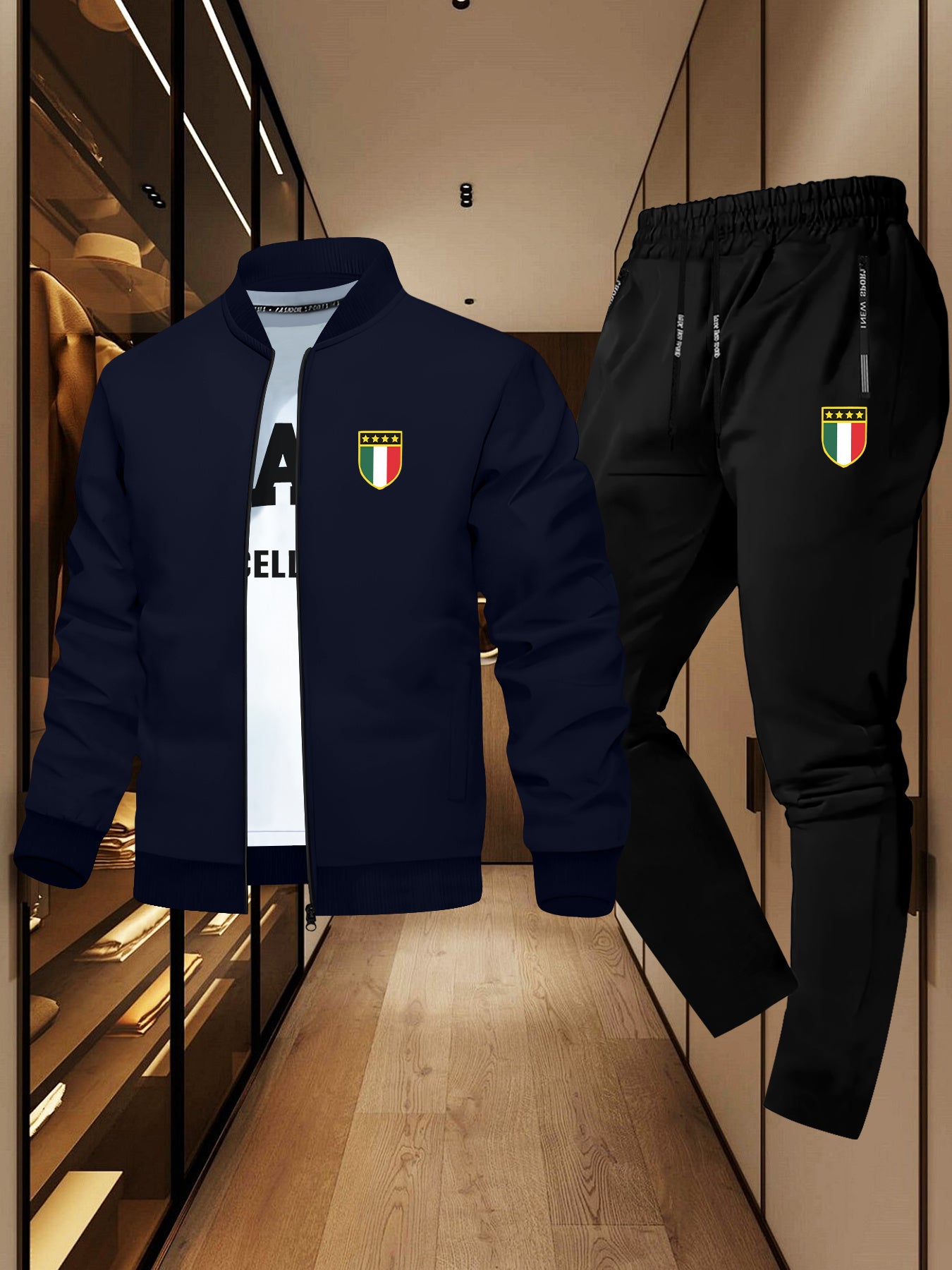 Men'S Trendy Design Jacket Two-Piece Suit with Five-Pointed Star Print, Casual Youth Casual Sports Jacket Suit