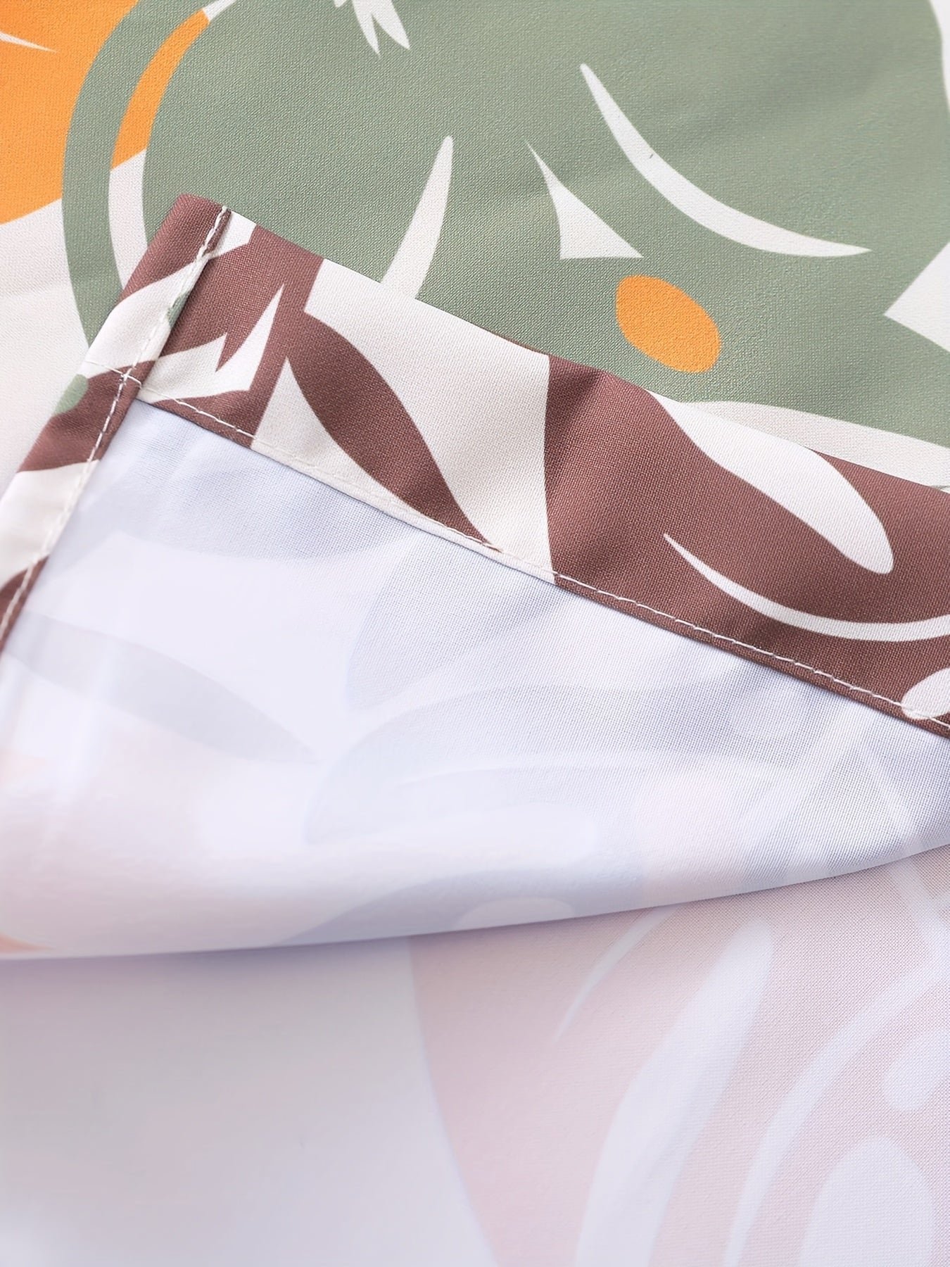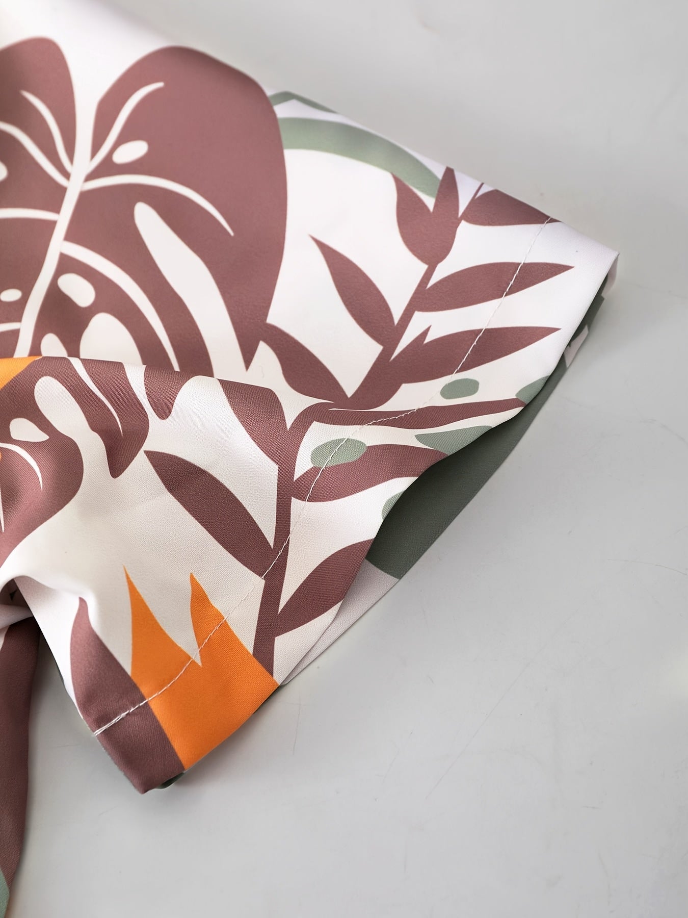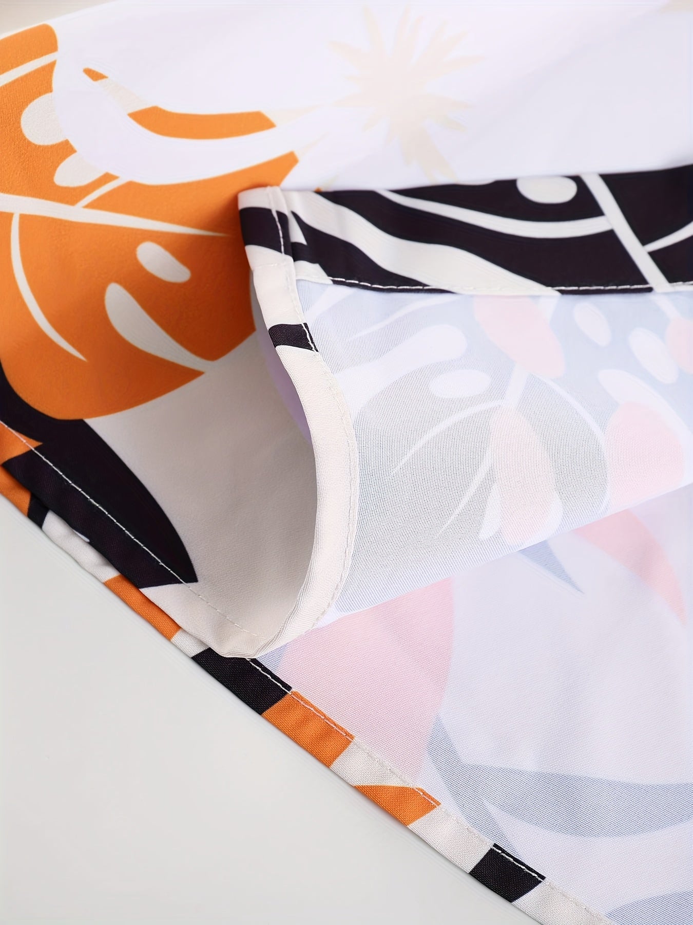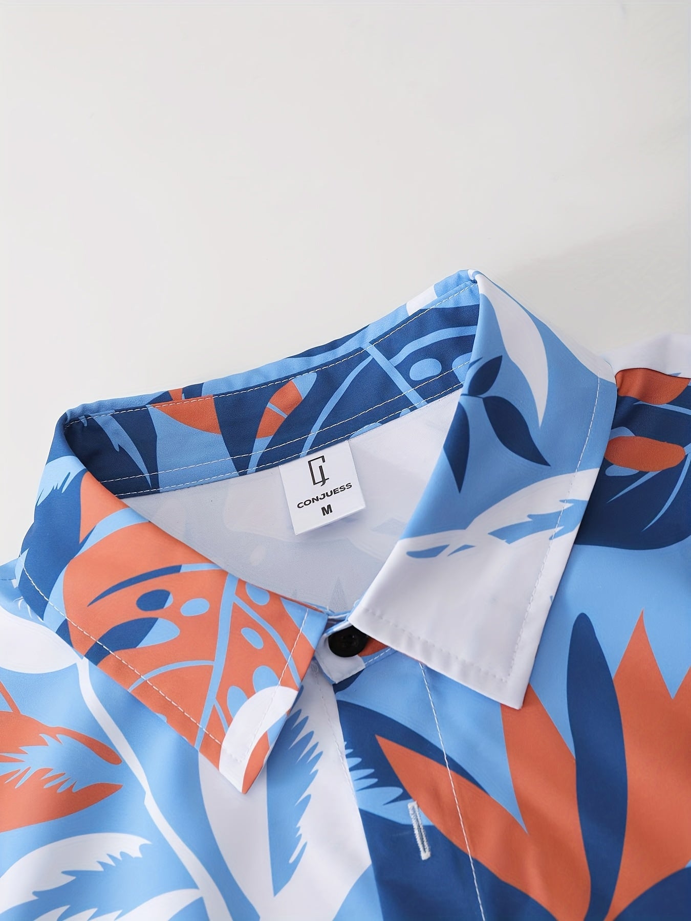 Men'S Tropical Palm Leaf Print Short Sleeve Shirt & Solid Black Shorts Set - Casual Summer Outfit with Drawstring Waist, Non-Stretch Fabric, Perfect for Beach or Vacation, Beach Attire | Tropical Print Shirt | Nonstretch Fabr