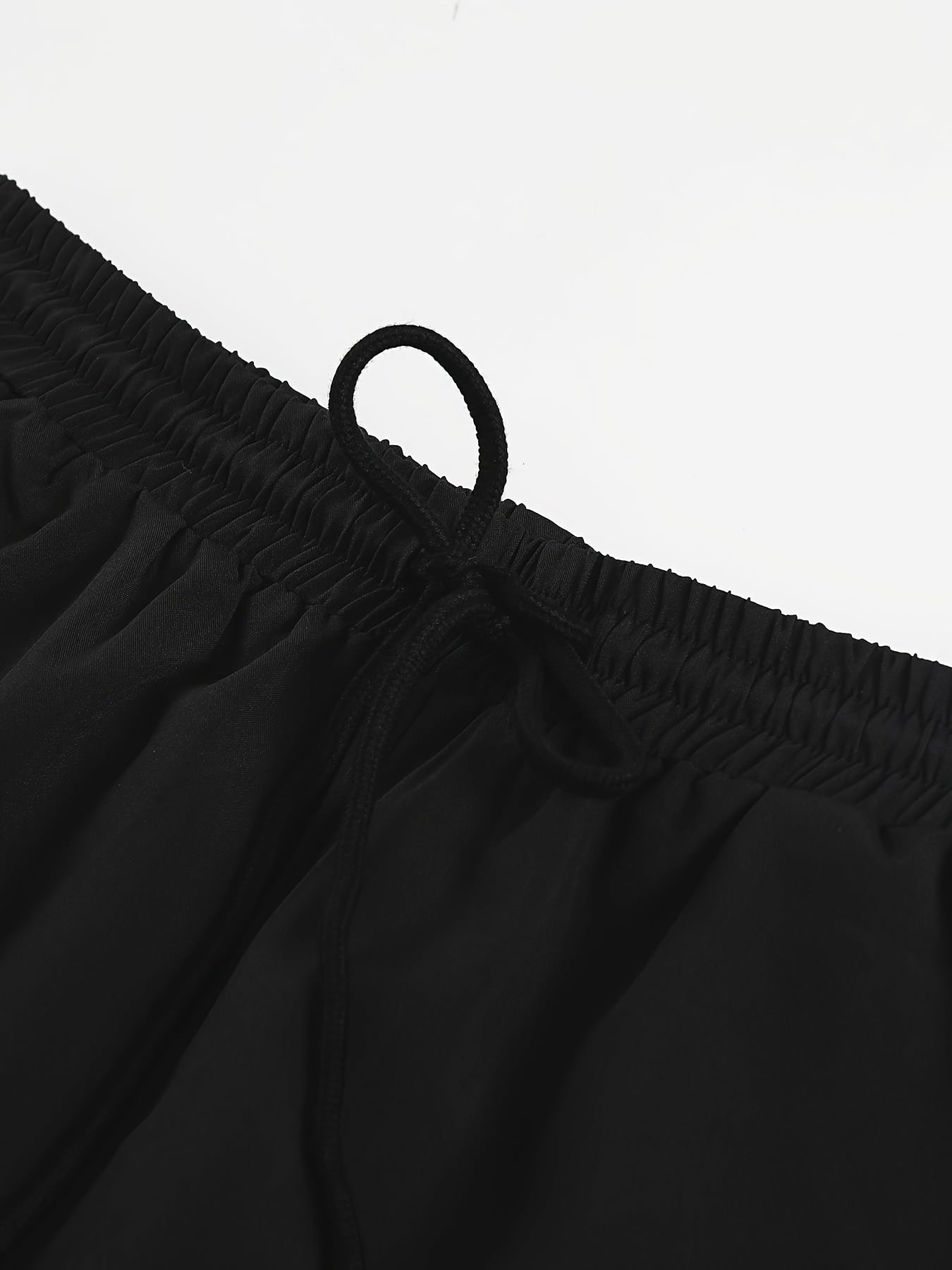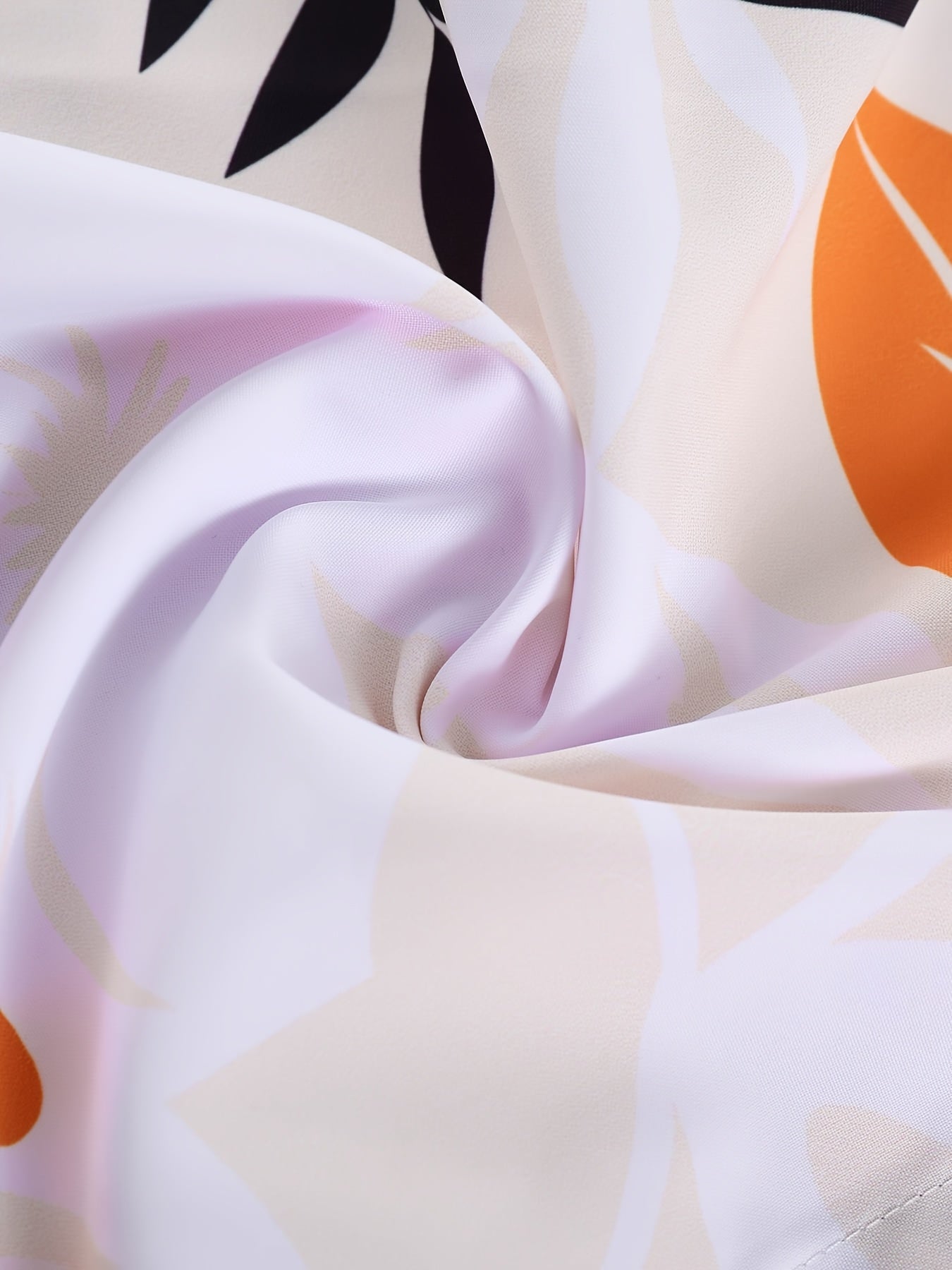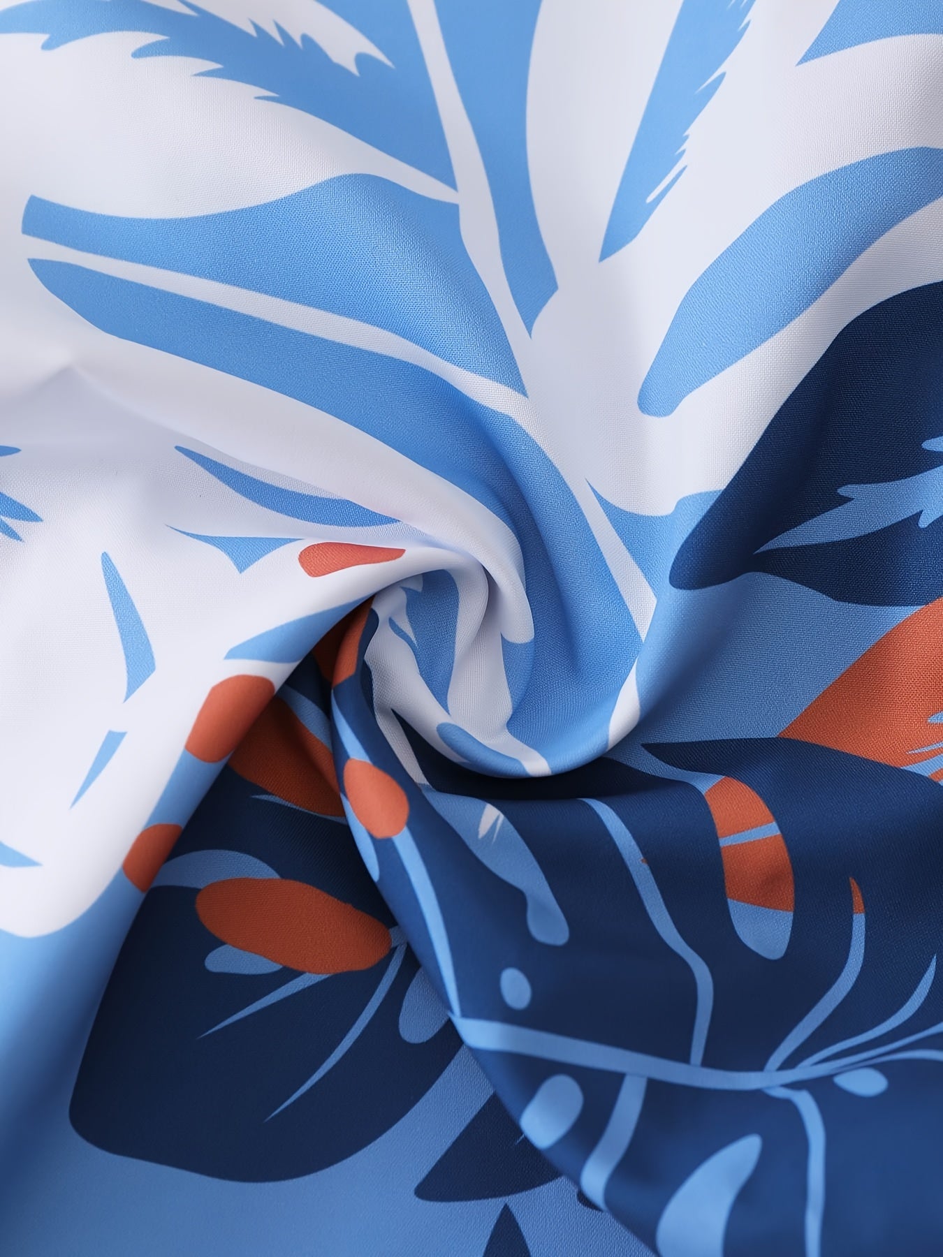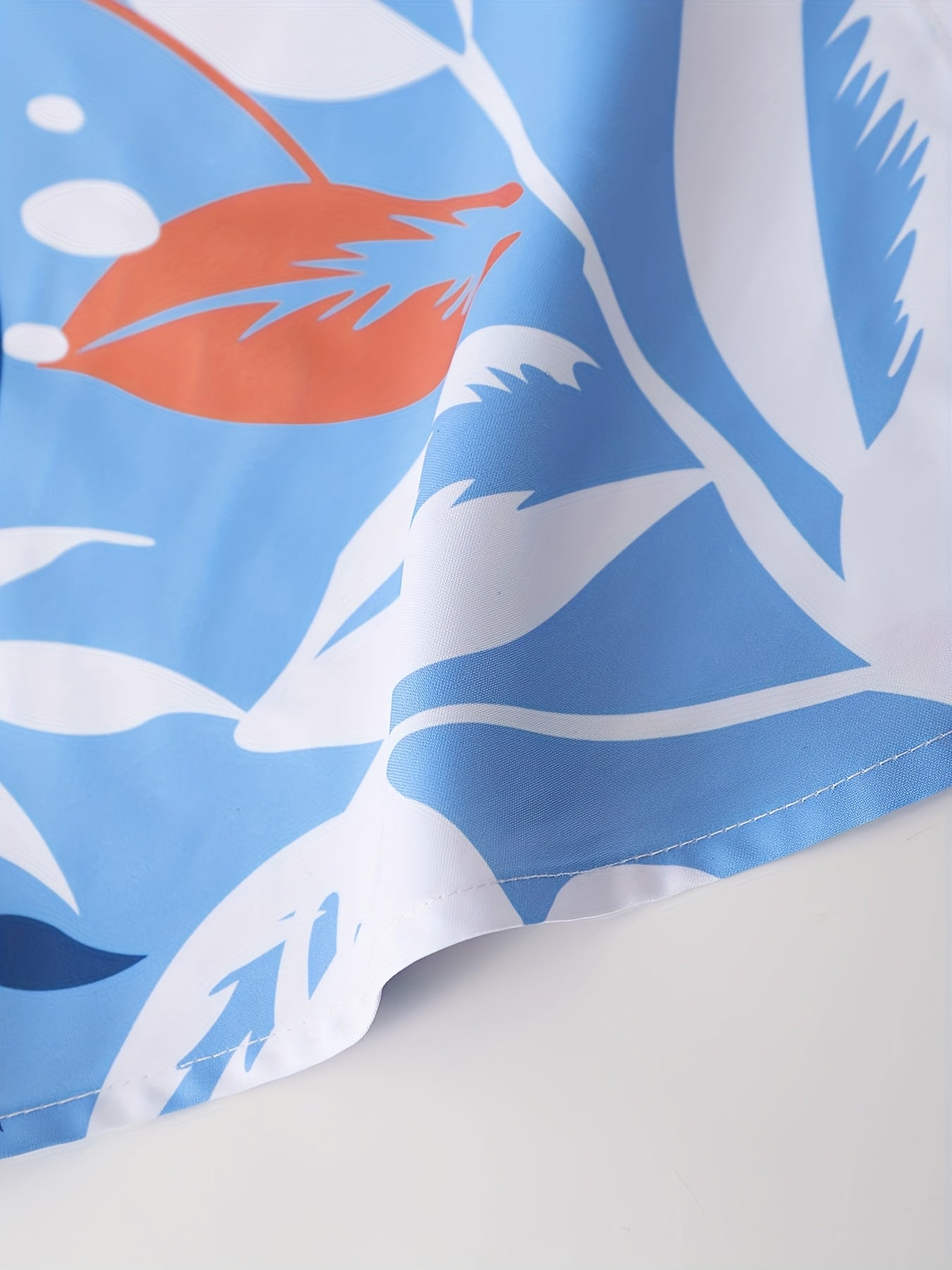 Men'S Tropical Palm Leaf Print Short Sleeve Shirt & Solid Black Shorts Set - Casual Summer Outfit with Drawstring Waist, Non-Stretch Fabric, Perfect for Beach or Vacation, Beach Attire | Tropical Print Shirt | Nonstretch Fabr