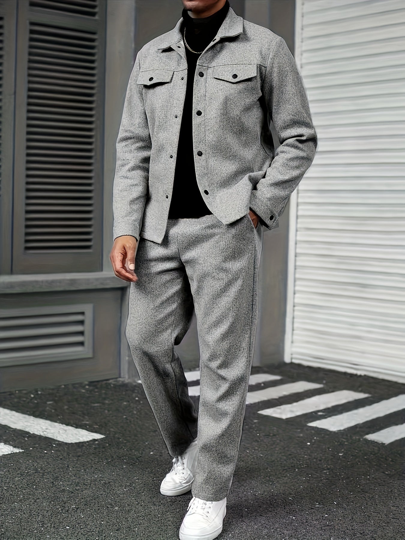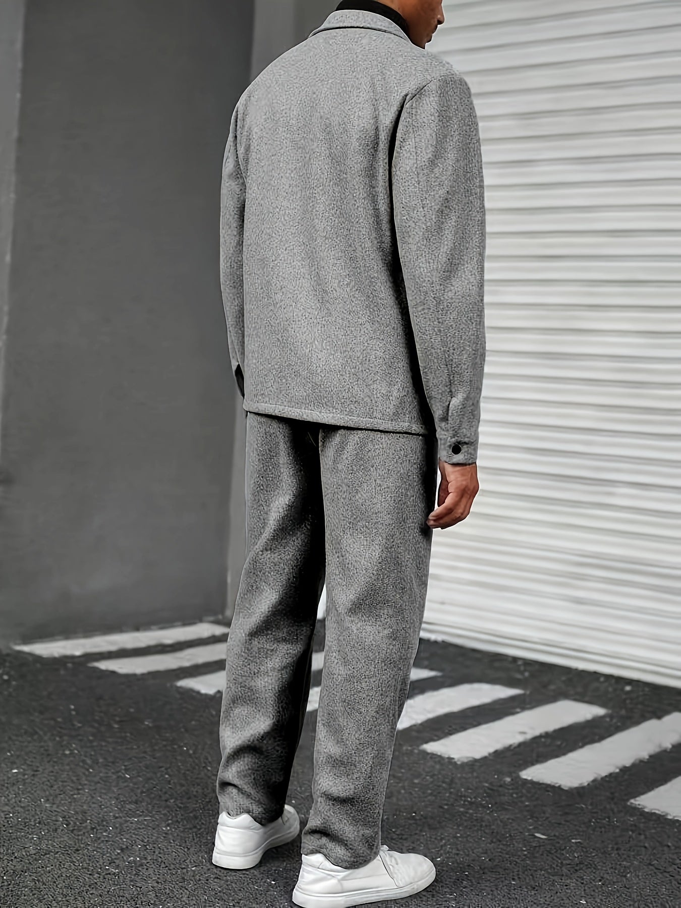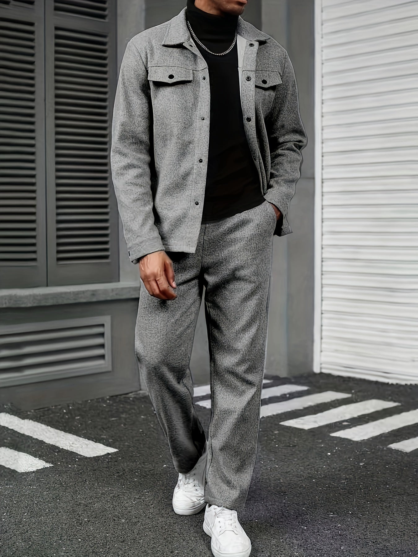 Men'S Two-Piece Casual Outfit - Black Button-Up Shirt & Pants, Long Sleeve, Loose Fit, Non-Stretch Fabric, Perfect for Spring/Fall, Casual Attire|Relaxed Fit|Buttonup Shirt