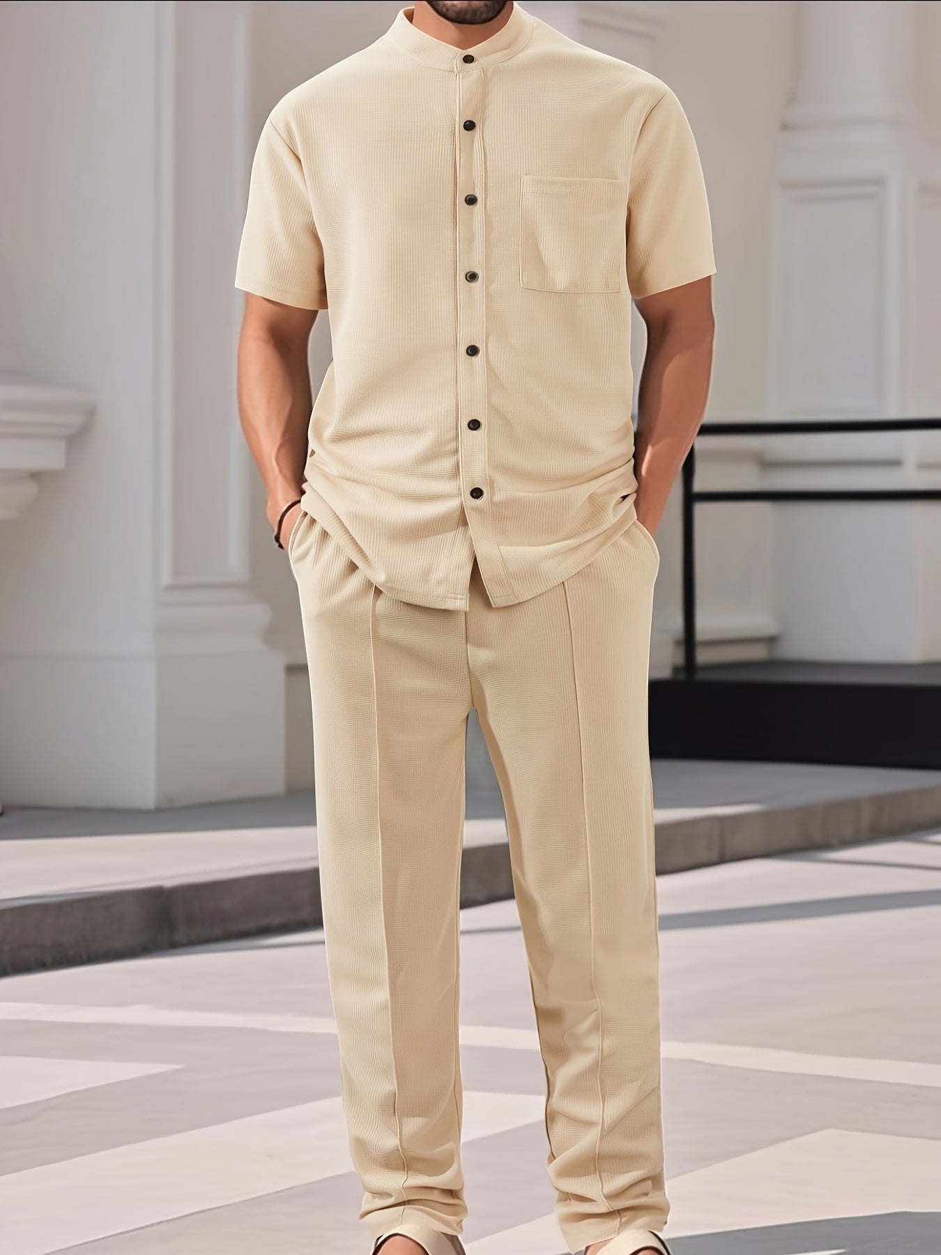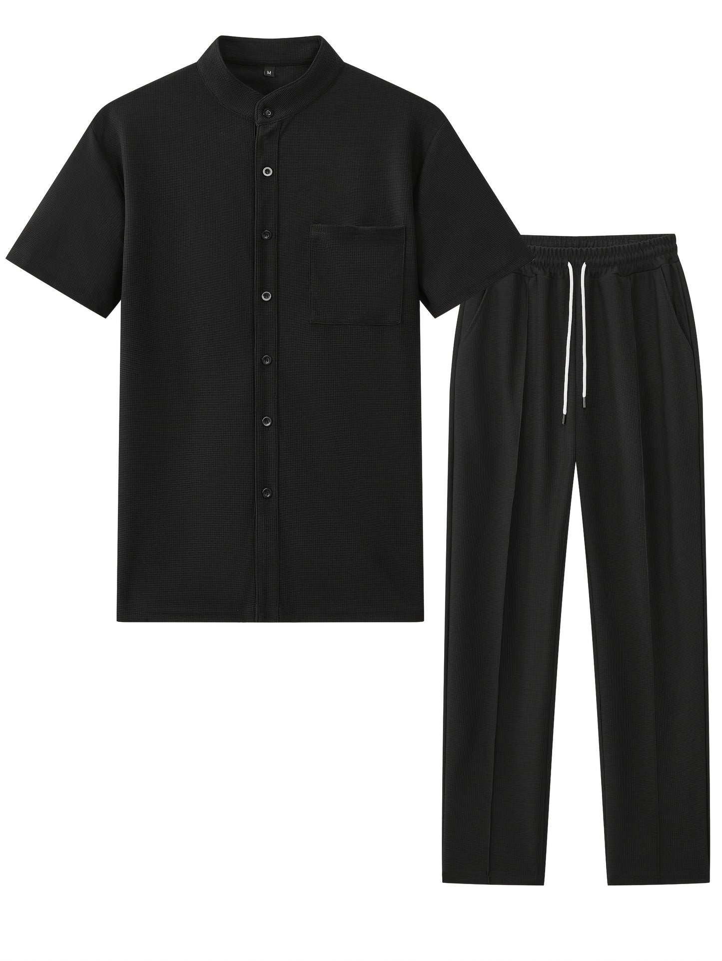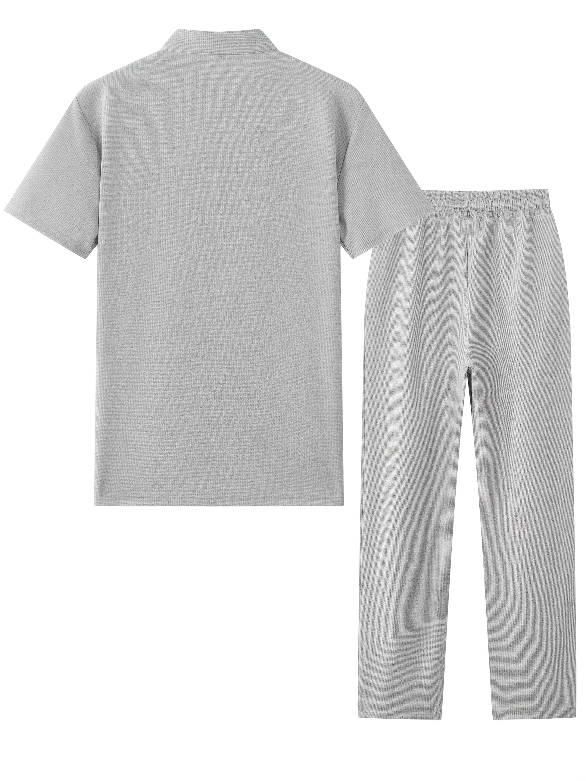 Men'S Two-Piece Set Featuring a Short-Sleeve Cardigan with Pockets And Drawstring Pocket Long Pants, Perfect for a Clean And Comfortable Summer.