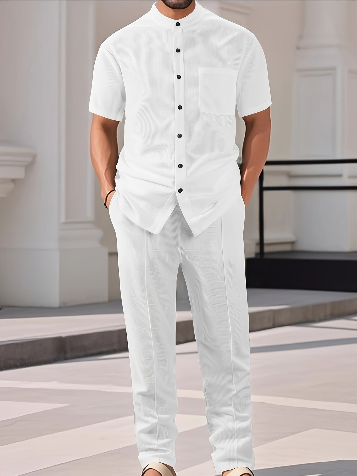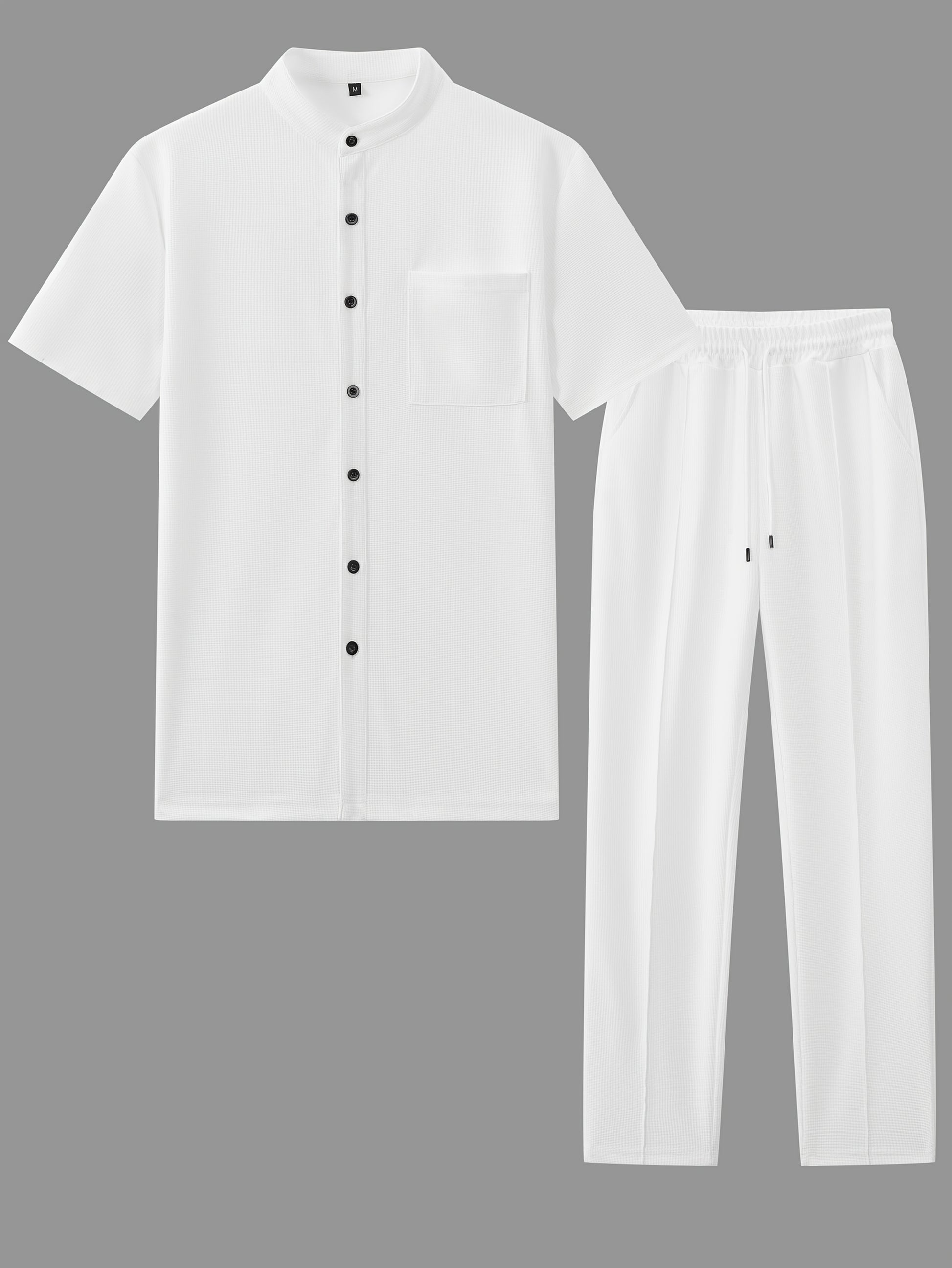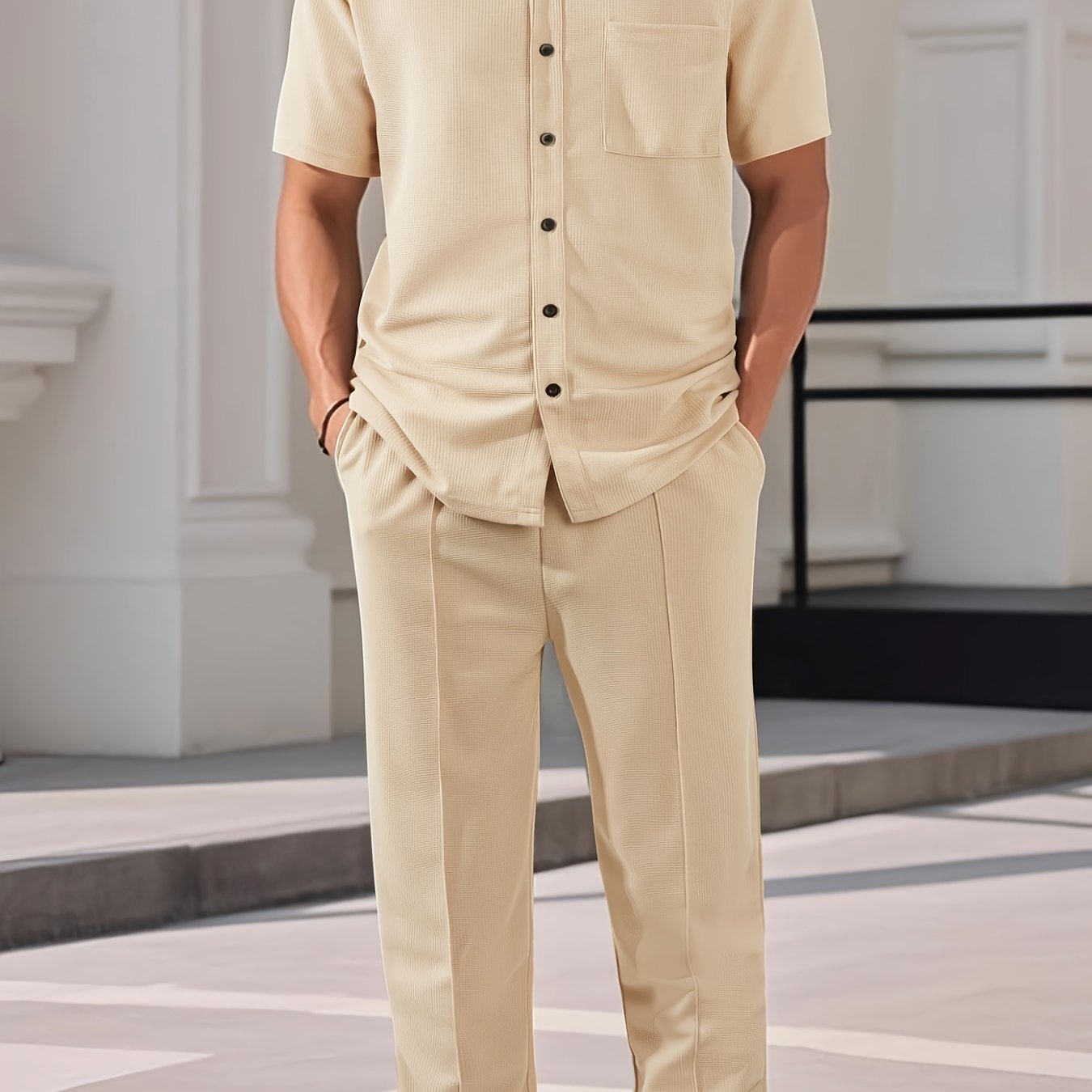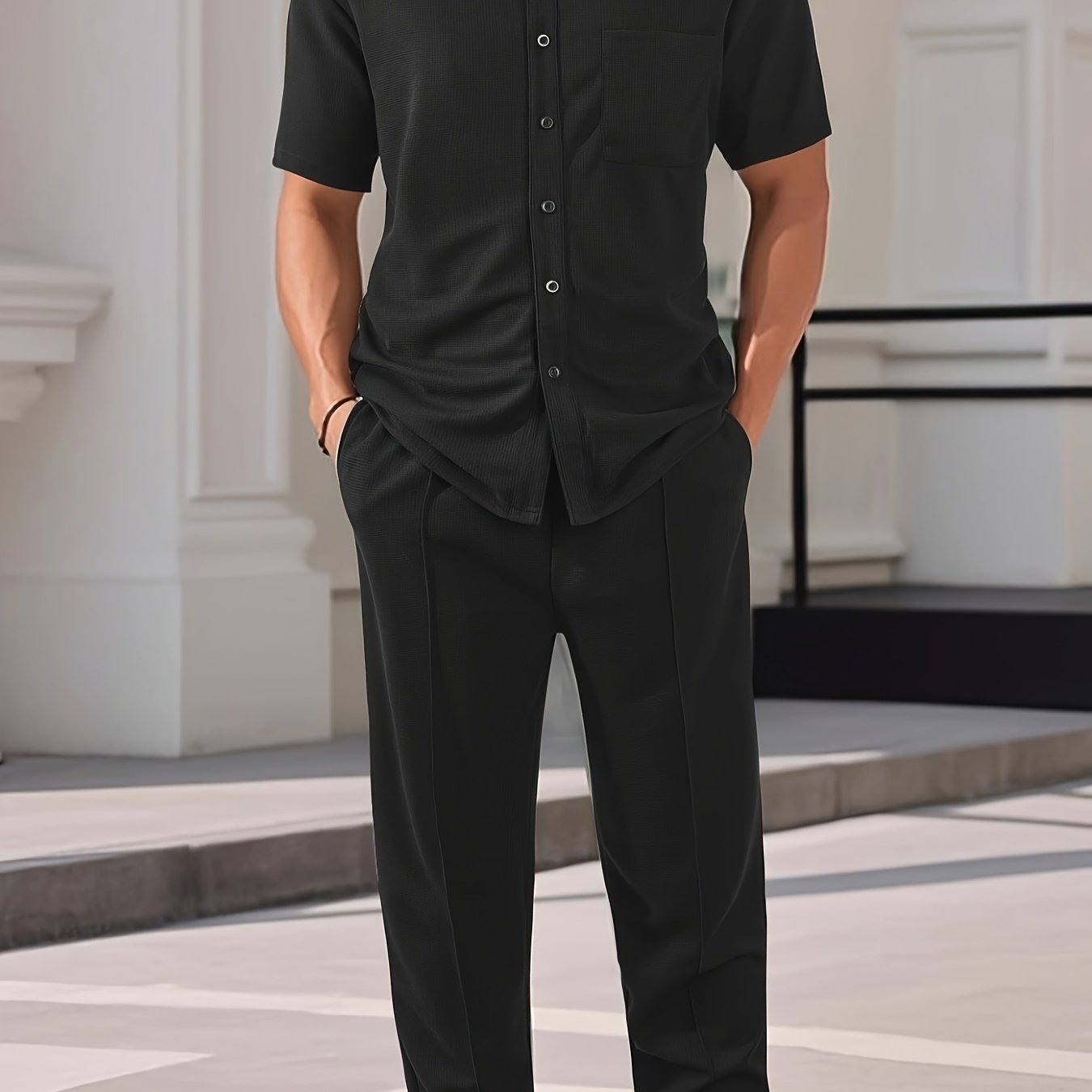 Men'S Two-Piece Set Featuring a Short-Sleeve Cardigan with Pockets And Drawstring Pocket Long Pants, Perfect for a Clean And Comfortable Summer.