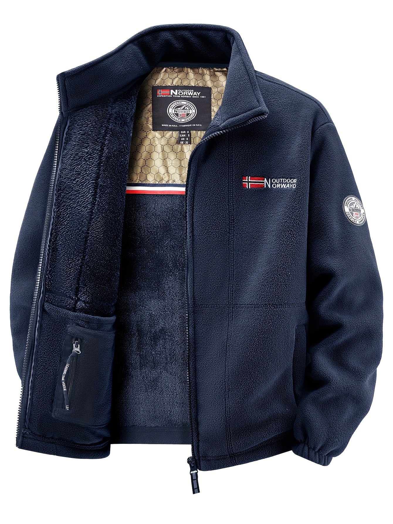 Men's Warm Stand Collar Cardigan Jacket, Honeycomb Heat-Retaining Graphite Lining, Thermal Insulation, Warmer Upper Body, Quality Men's Wear, Warm Lining, Carbon Fiber Technology - Full-Zip Winter Coat, Full-Length Zipper, Ma