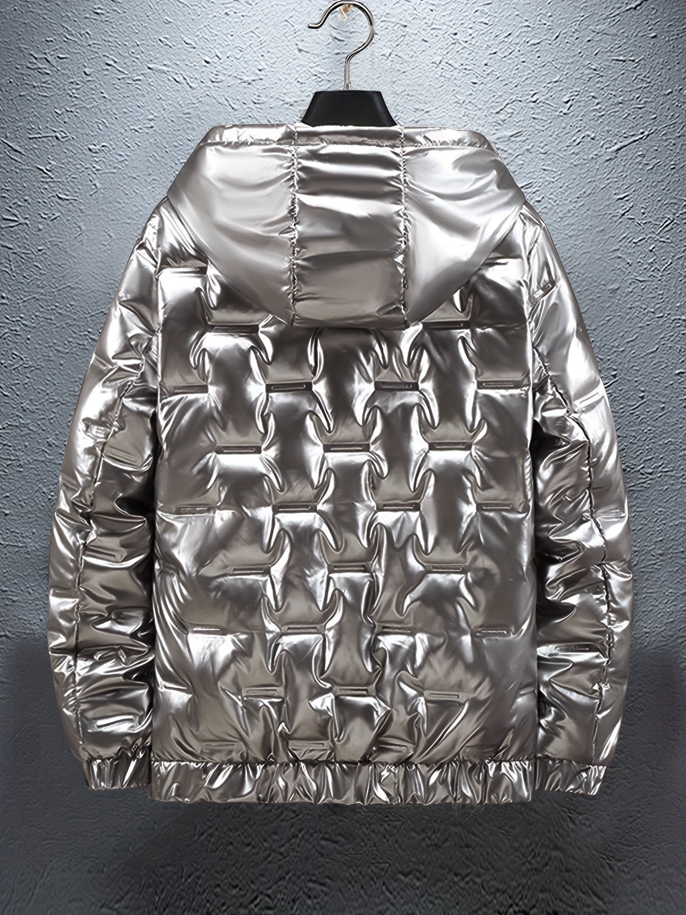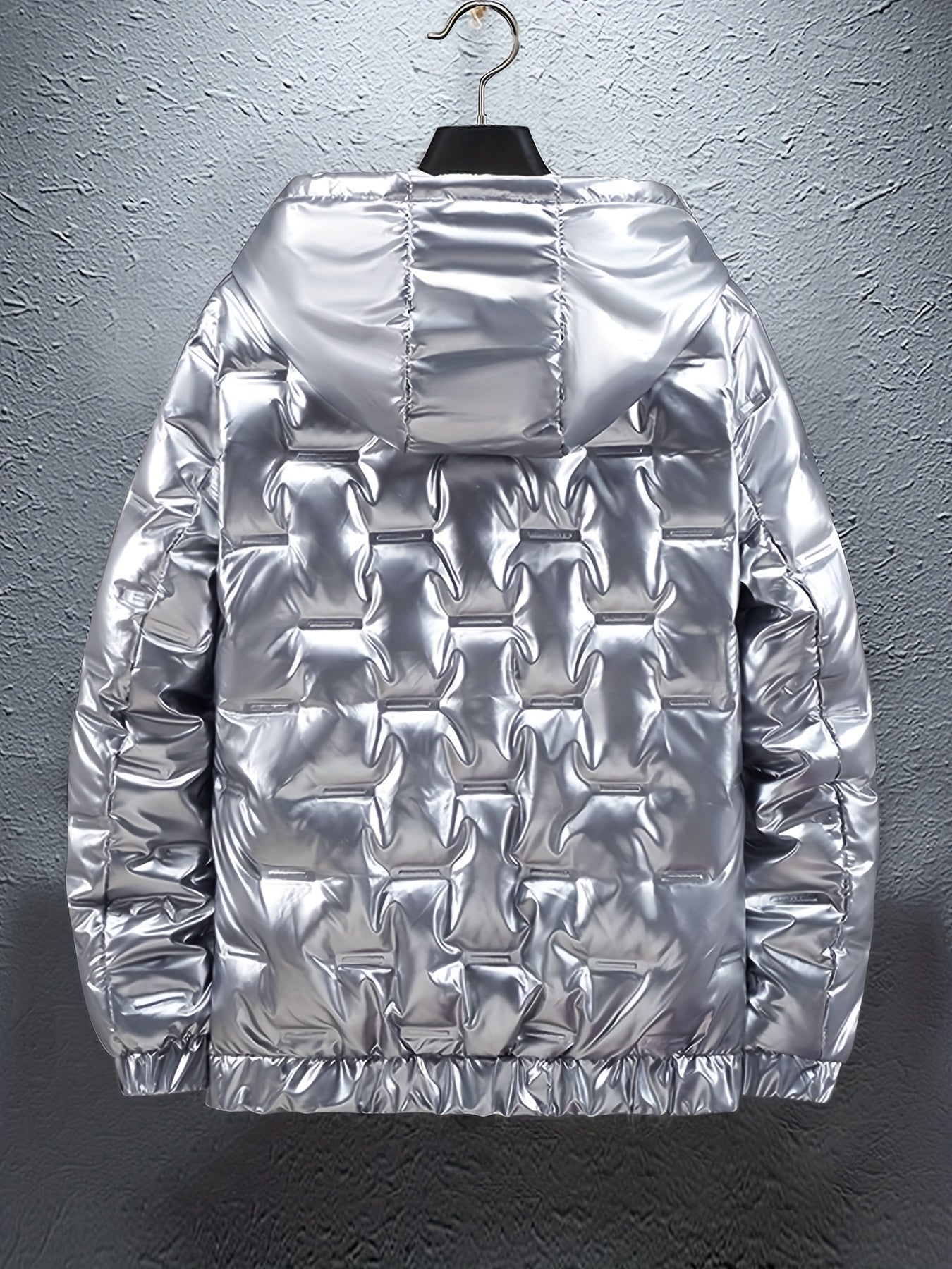 Men'S Winter Coat - Glossy Black Cold Weather Jacket, Non-Stretch Outer Shell, Zippered Pockets & Hooded Design for Formal & Everyday Use - Insulated Outerwear for Everyday & Special Occasions, Winter Jacket, Sleek Appearance