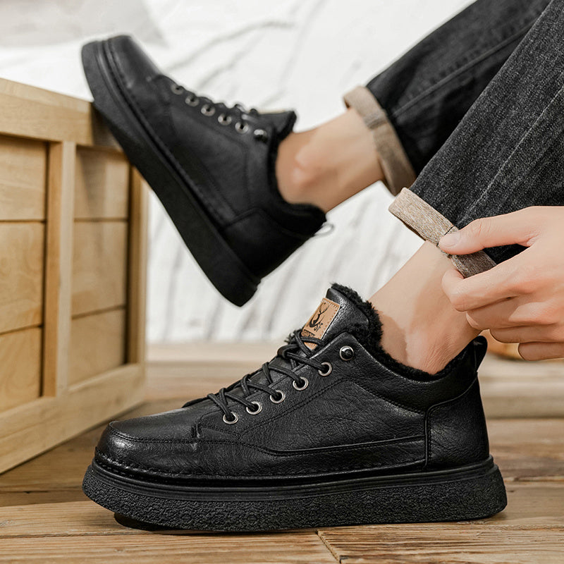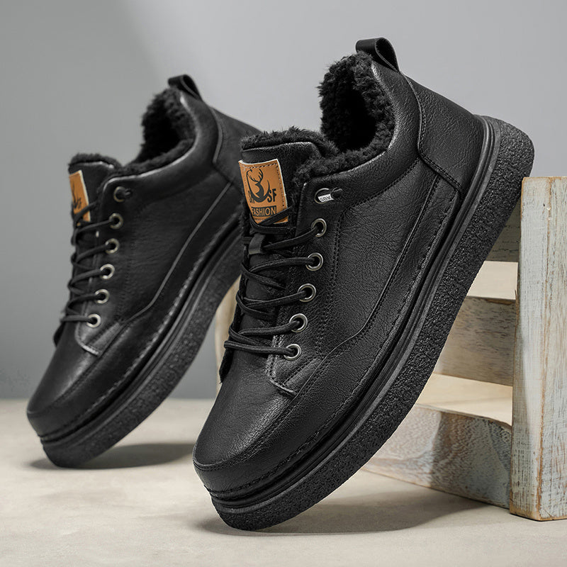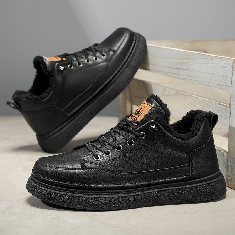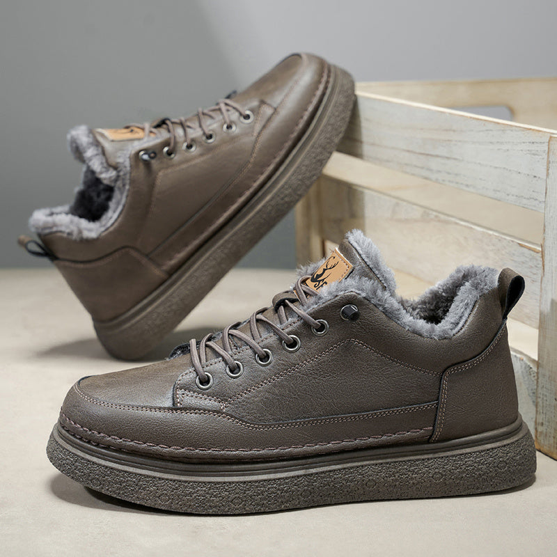 Men'S Winter Hiking Shoes - Cold Weather Traction Outdoors, Lace-Up Ankle Support, Cushioned EVA Insole - Synthetic Faux Upper - All-Terrain Traction for Snow, Ice, Mud - Low-Top Design - Black/Brown - Ideal for Hiking, Urban