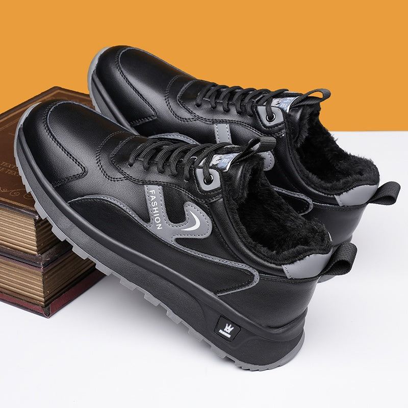 Men's Winter Non-Slip Sneakers - All-Season Traction Shoes with Thick Cushioned Rubber Sole, Slip-Resistant Grip, PU Upper & EVA Insole - Low-Top Sneakers for Hiking, Gym, Everyday - White & Gray Accents - Ideal Cold Weather