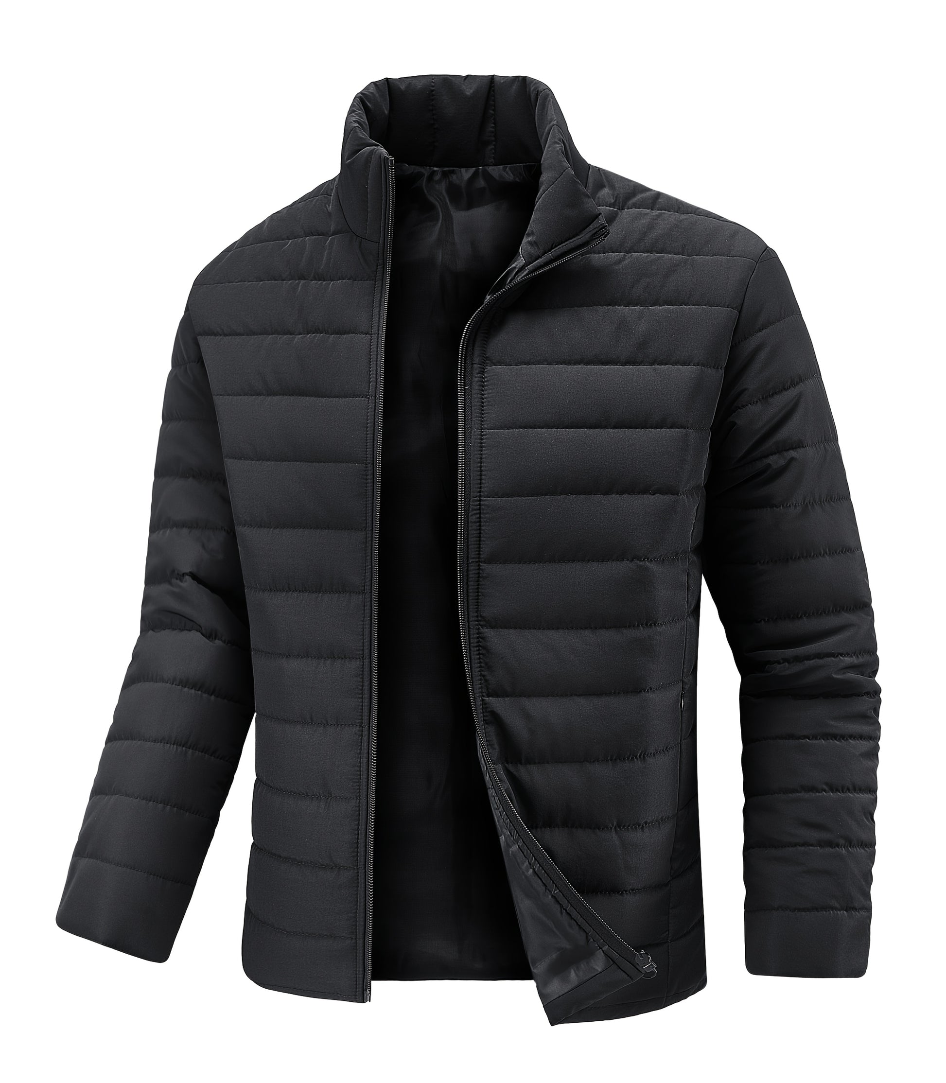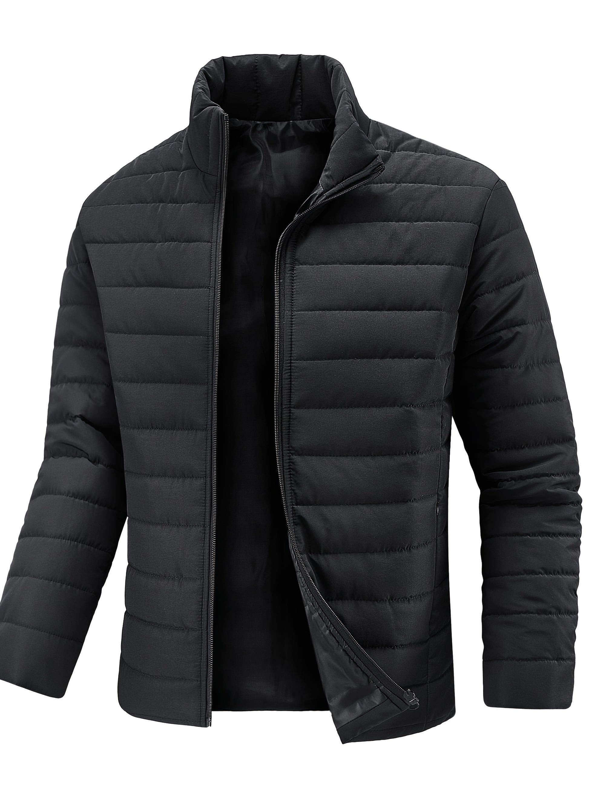 Men's Winter Stylish Padded Coat, Slim Fit Stand Collar Warm Jacket, Men's Plus Size -padded Padded Jacket